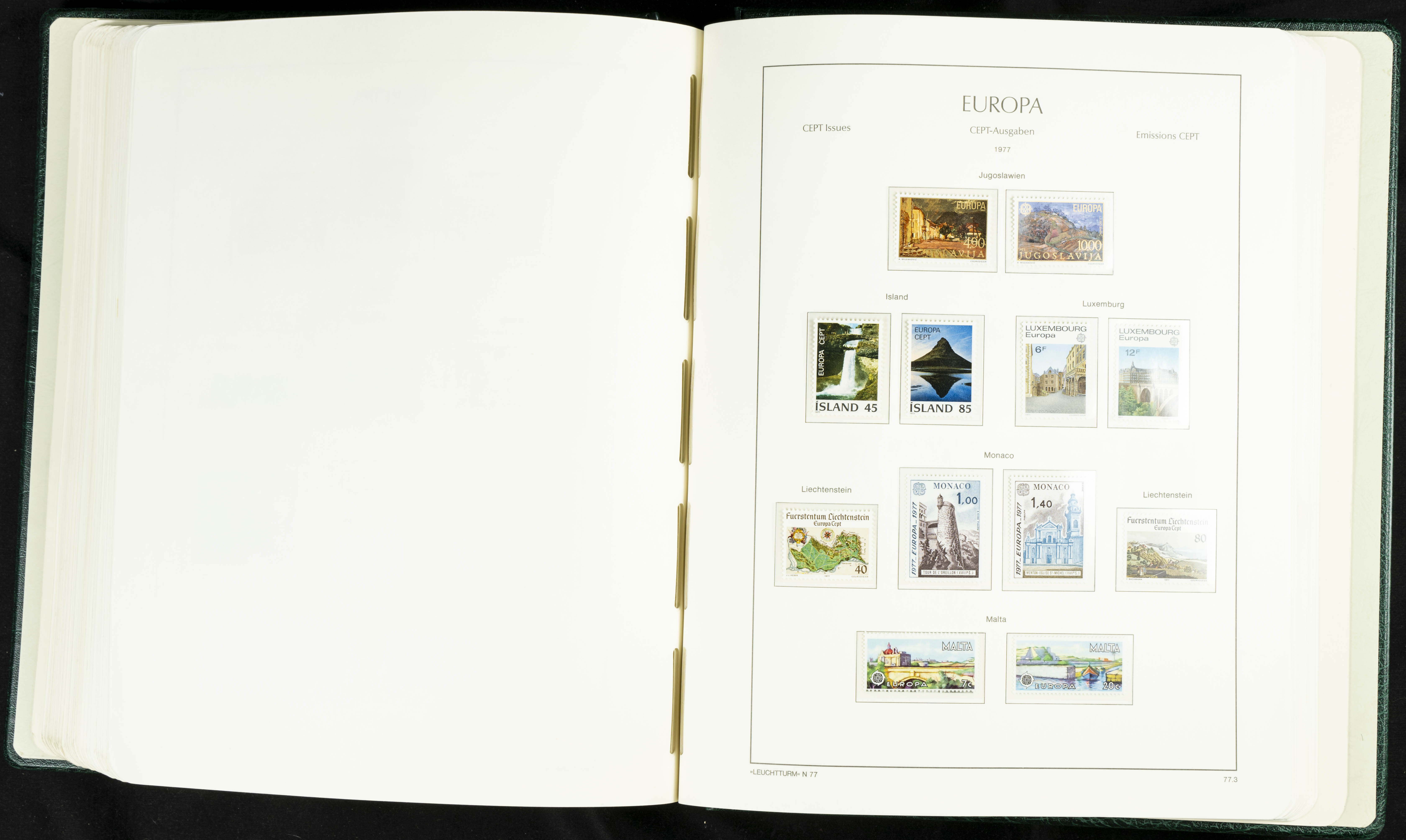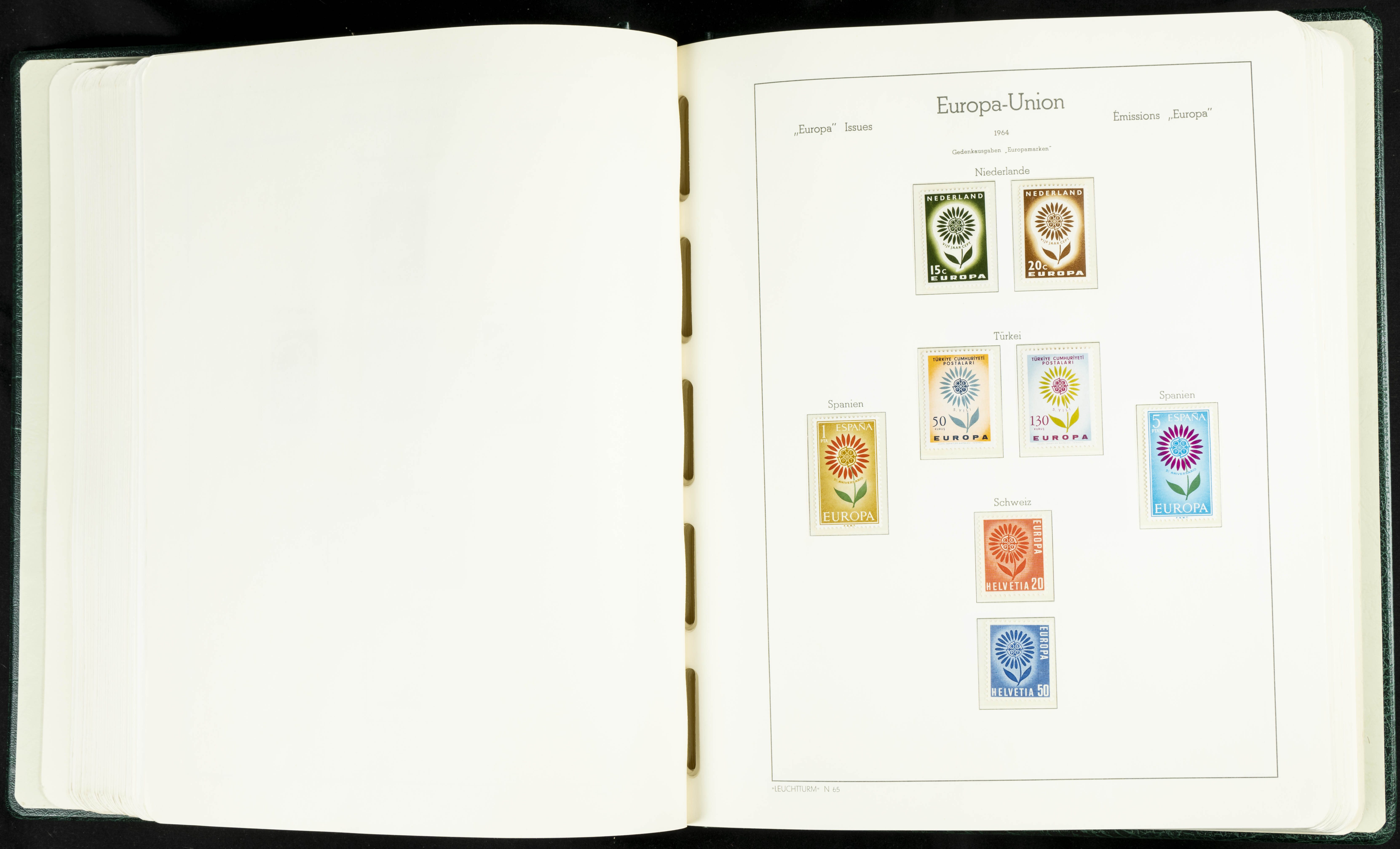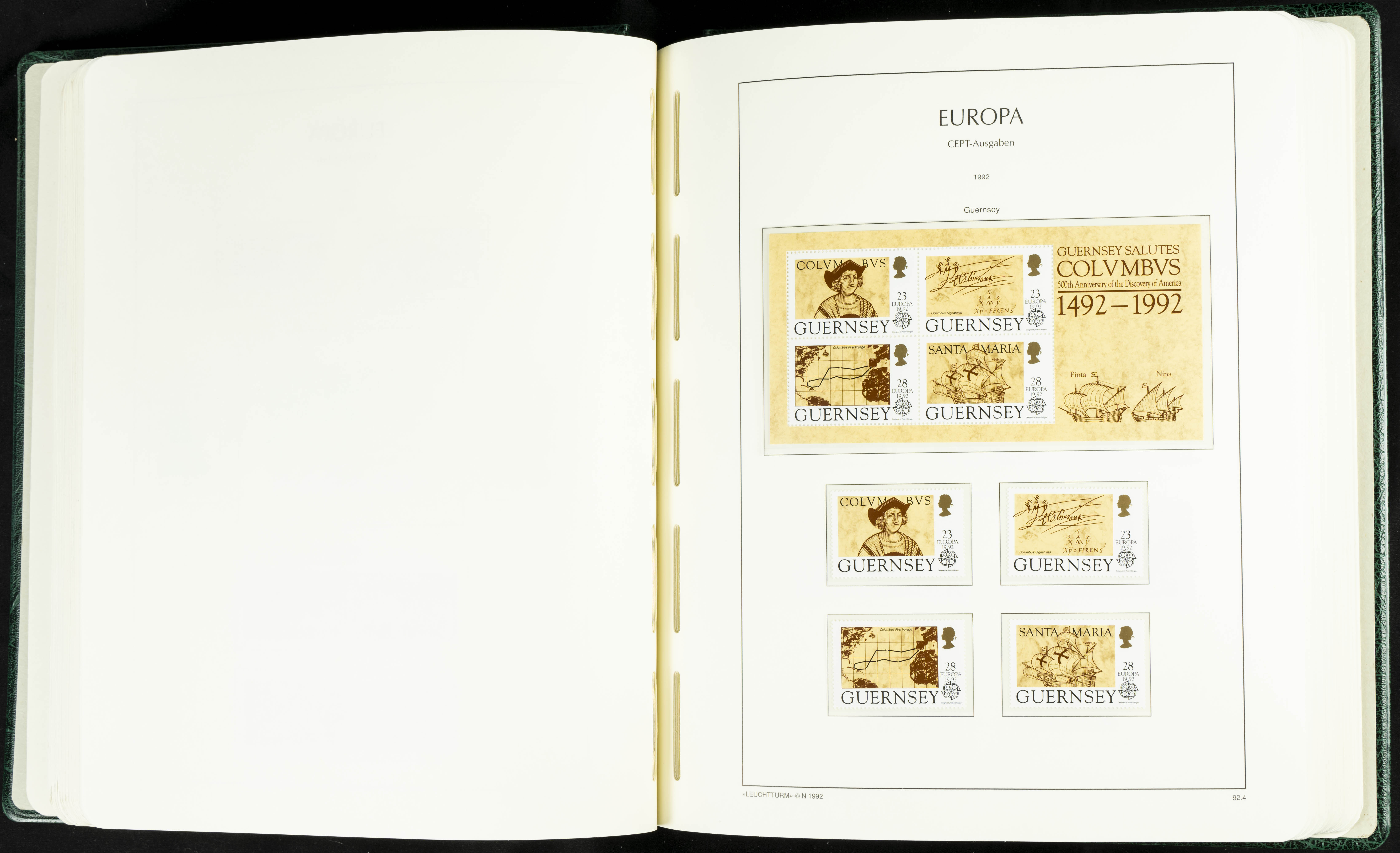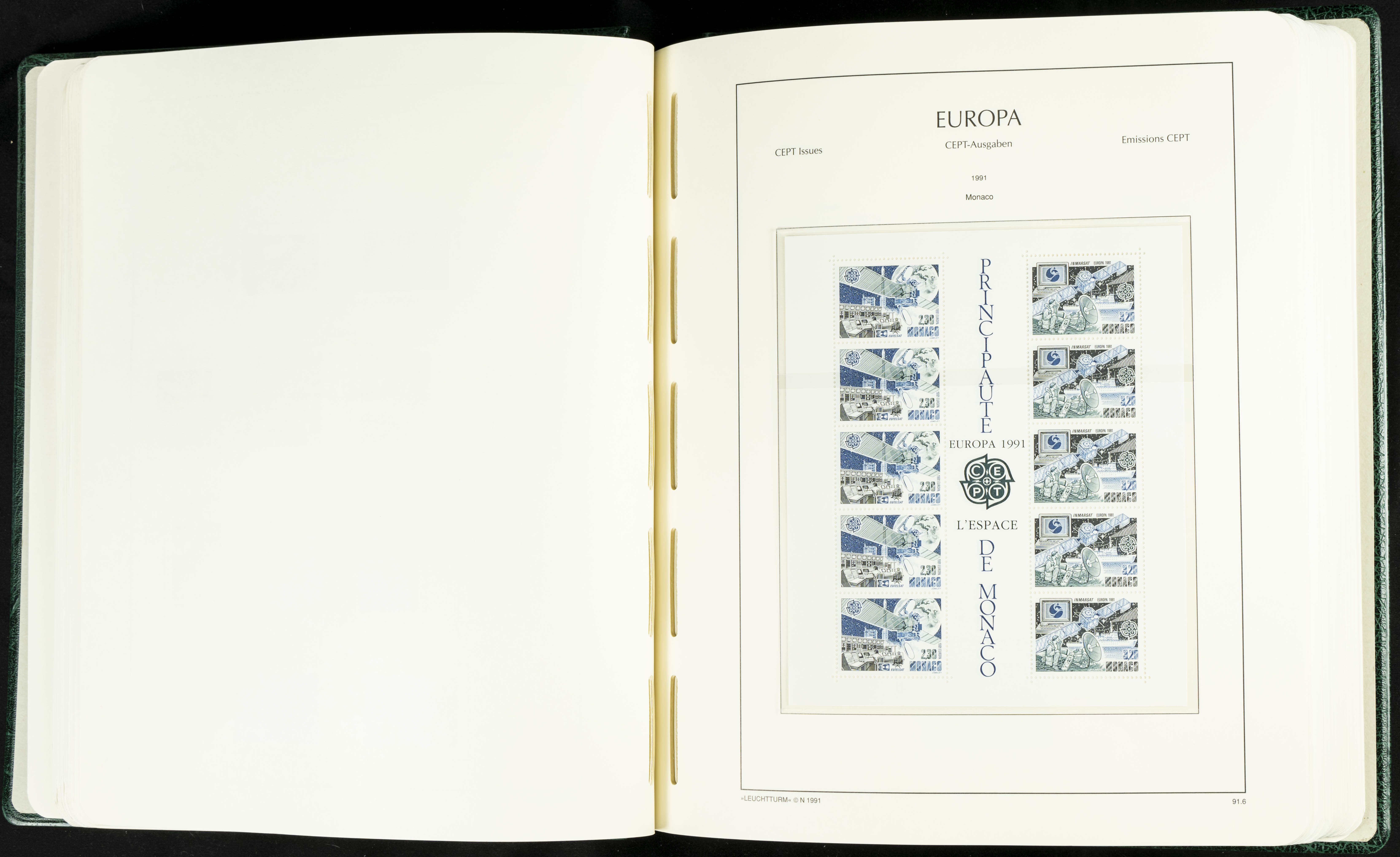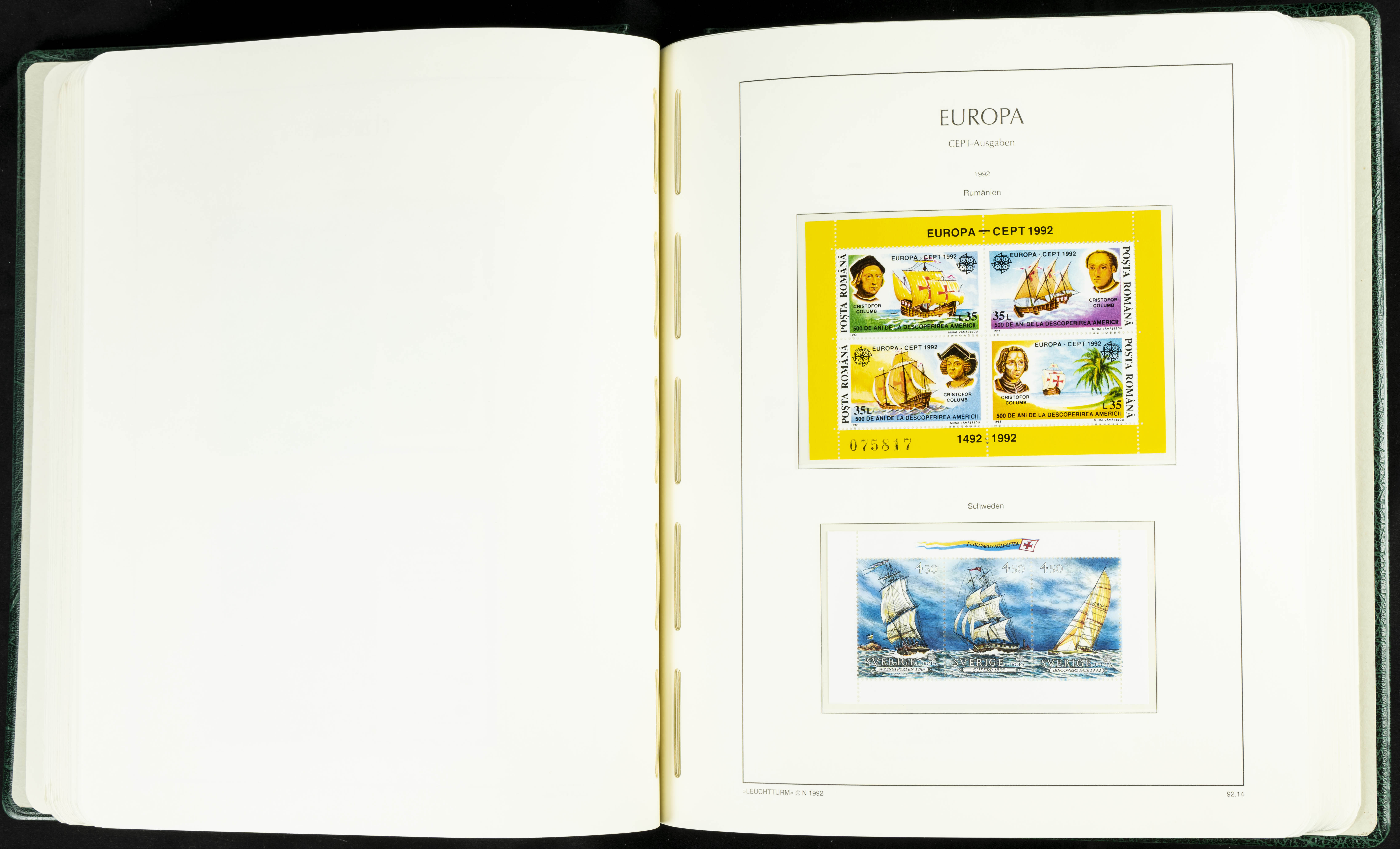 ★★/★(1949ca). Interesante y prácticamente completa colección del Tema Europa y Europeístico (excepto dos series de Italia y Trieste) entre 1949 y 1998, en nuevo sin fijasellos (montada en álbumes Faro). ALTISIMO VALOR DE CATALOGO. A EXAMINAR.