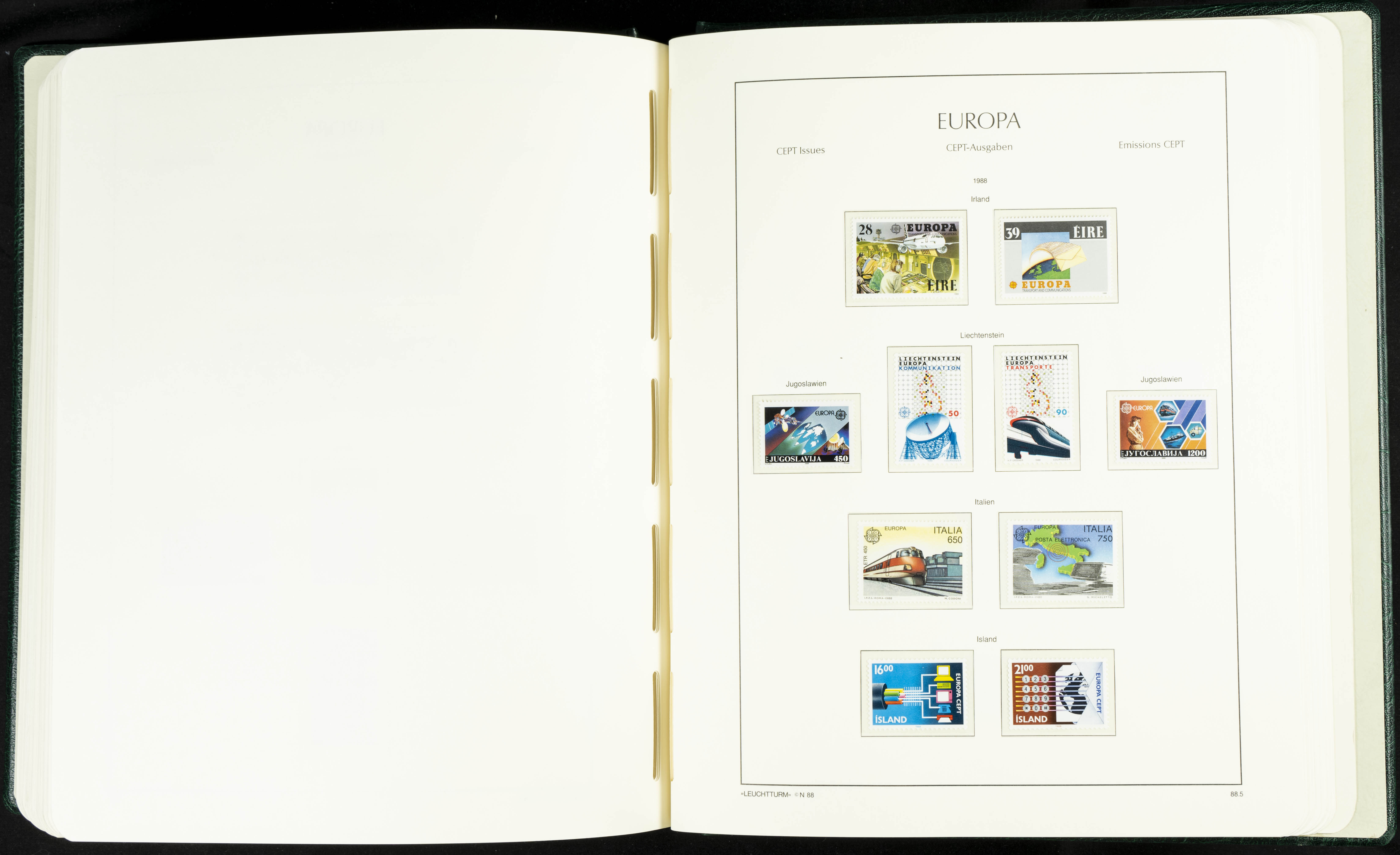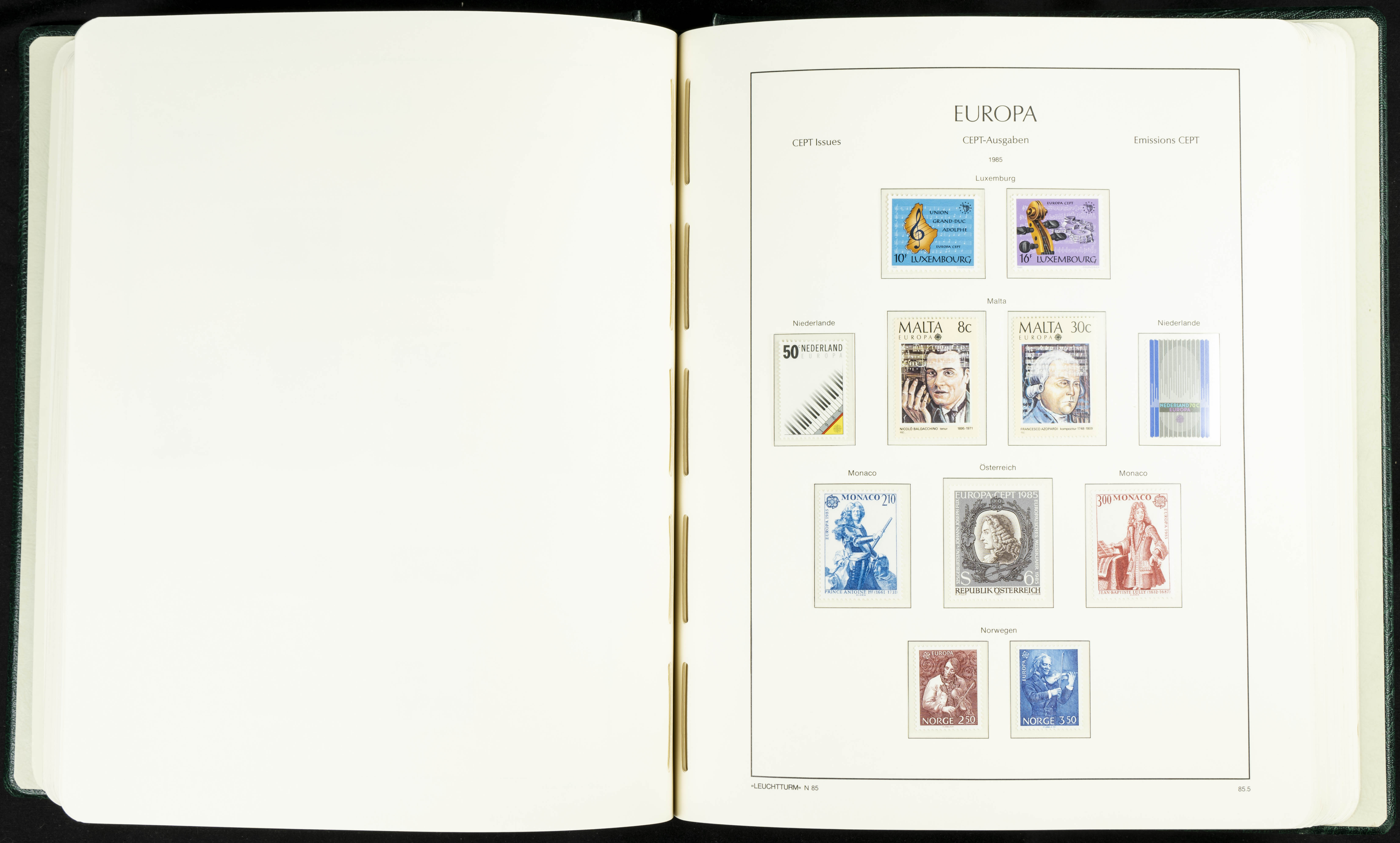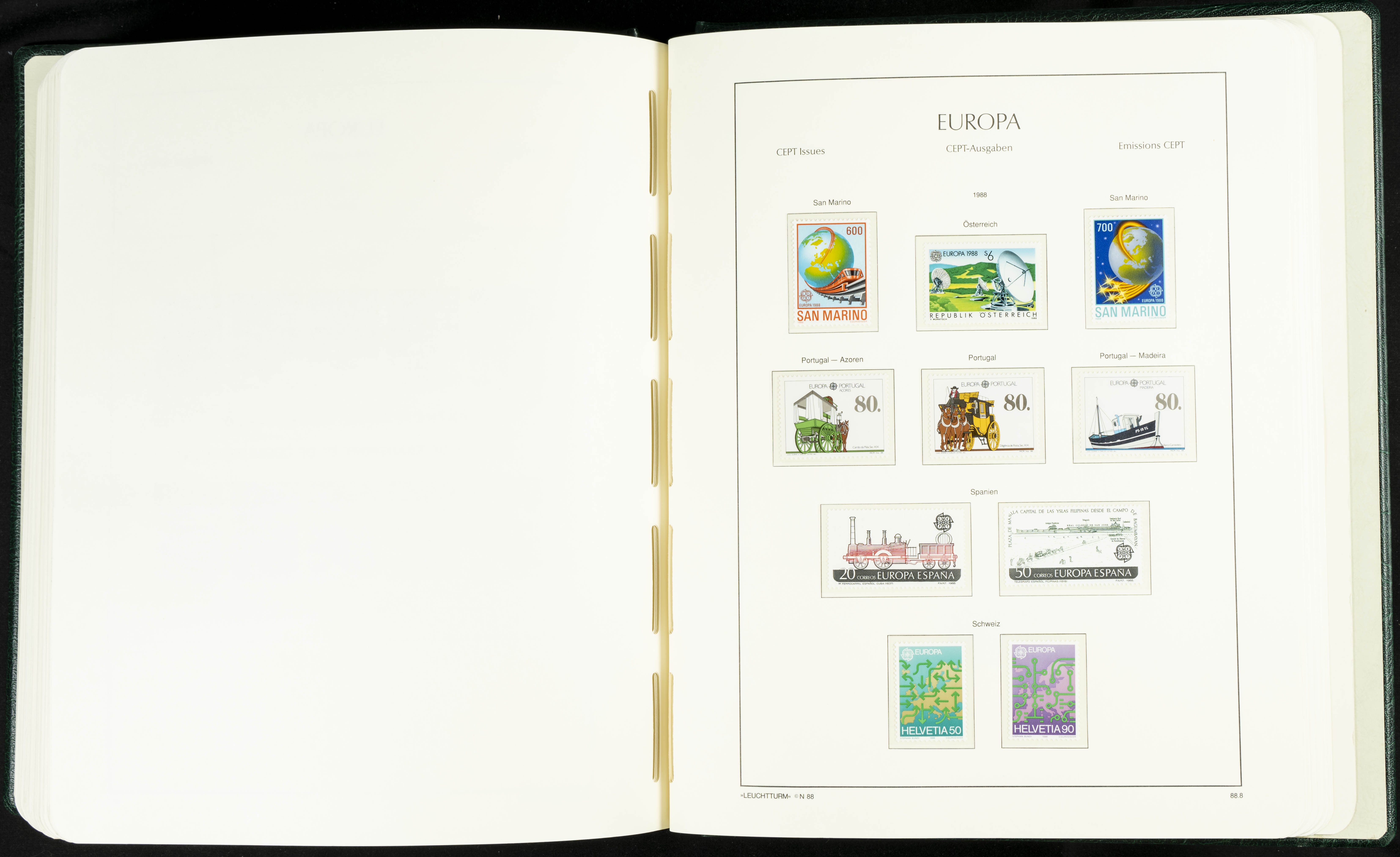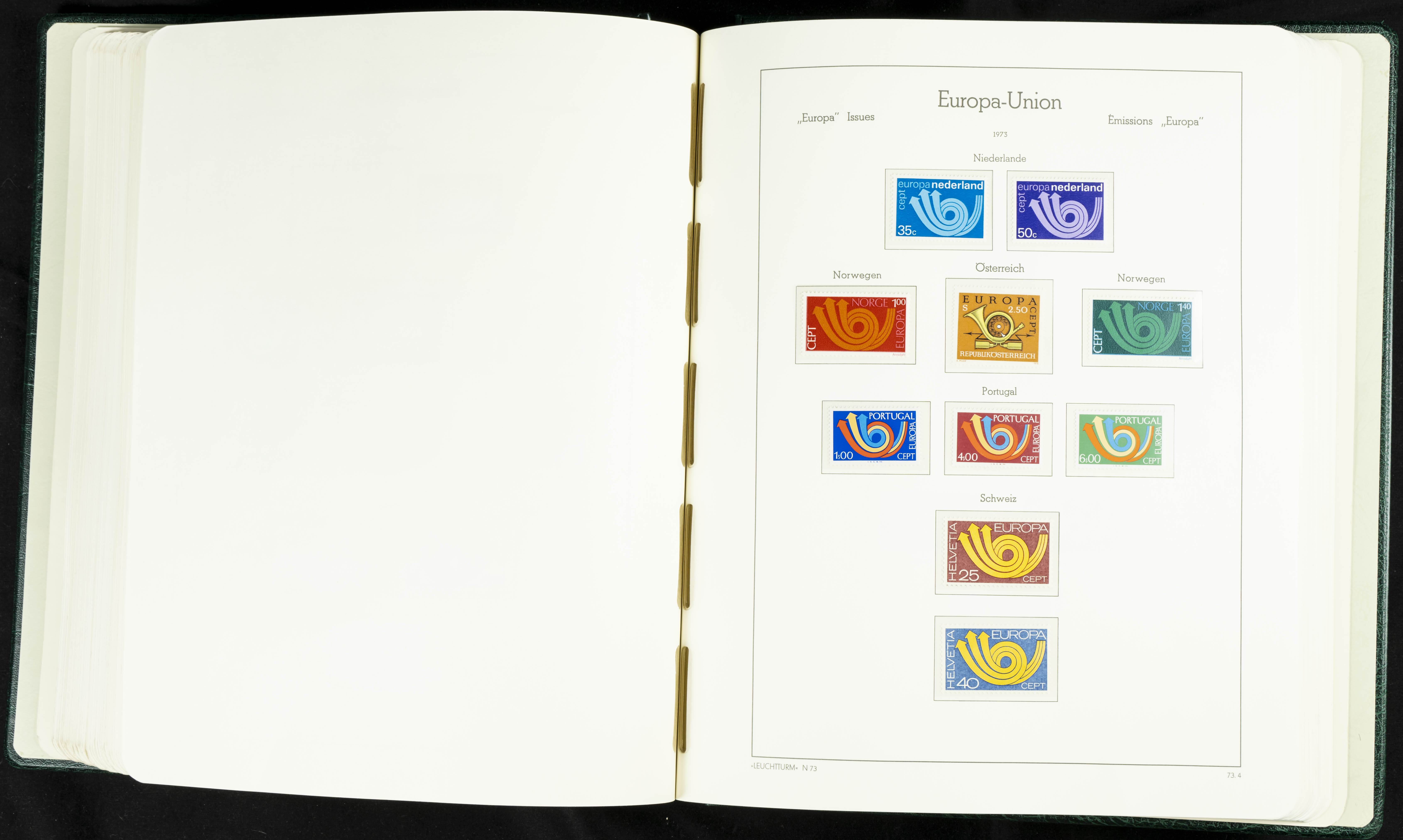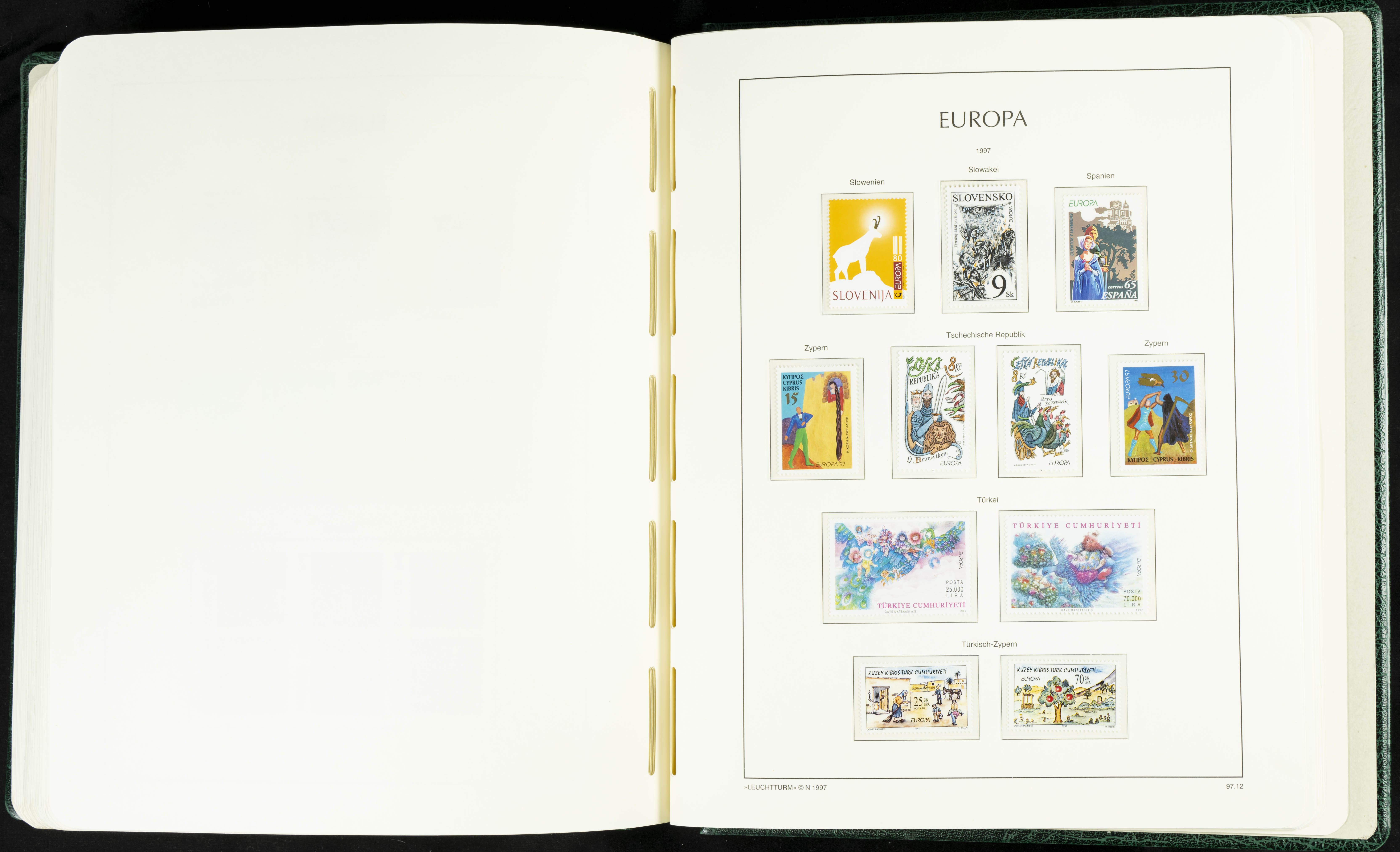 ★★/★(1949ca). Interesante y prácticamente completa colección del Tema Europa y Europeístico (excepto dos series de Italia y Trieste) entre 1949 y 1998, en nuevo sin fijasellos (montada en álbumes Faro). ALTISIMO VALOR DE CATALOGO. A EXAMINAR.
