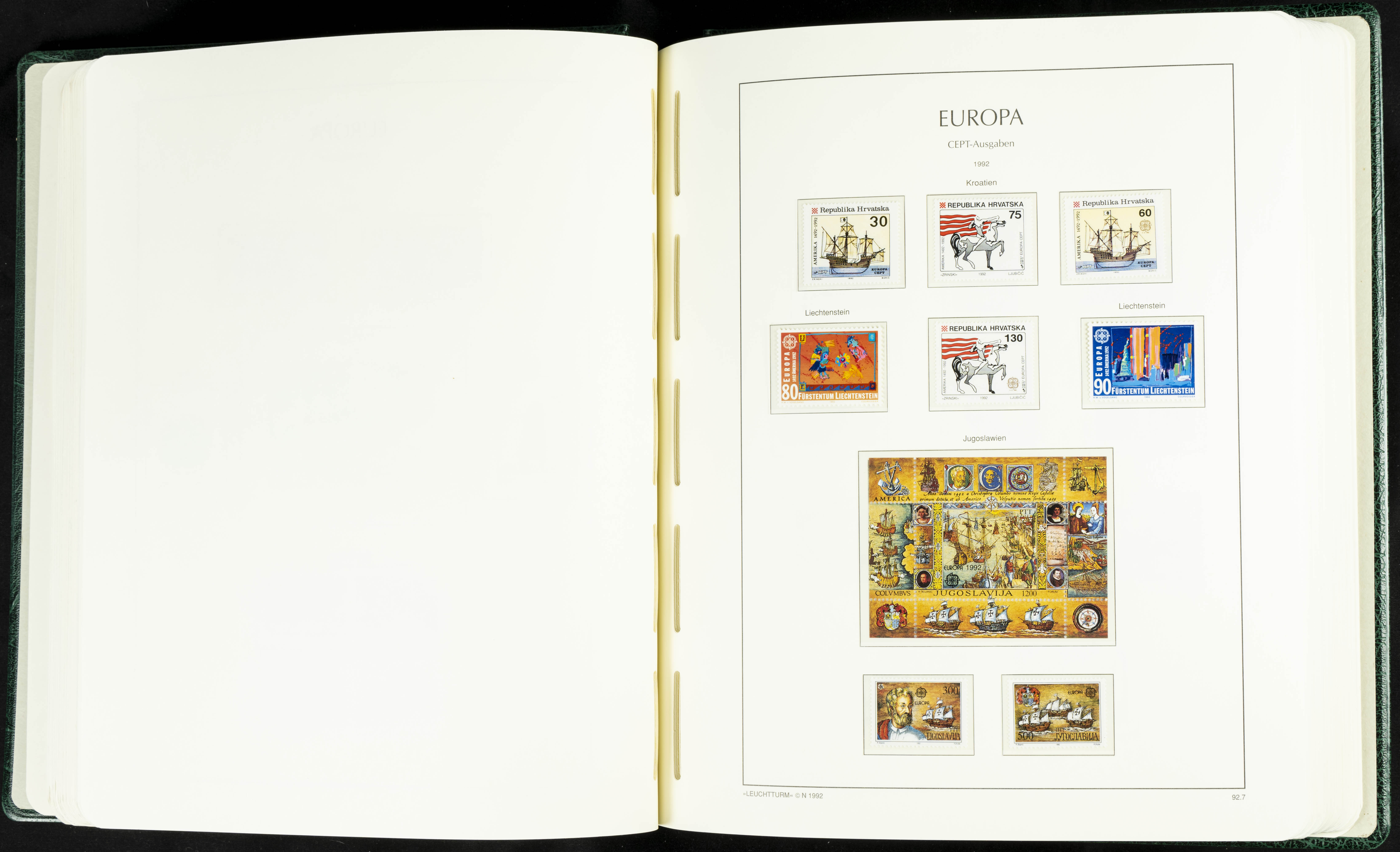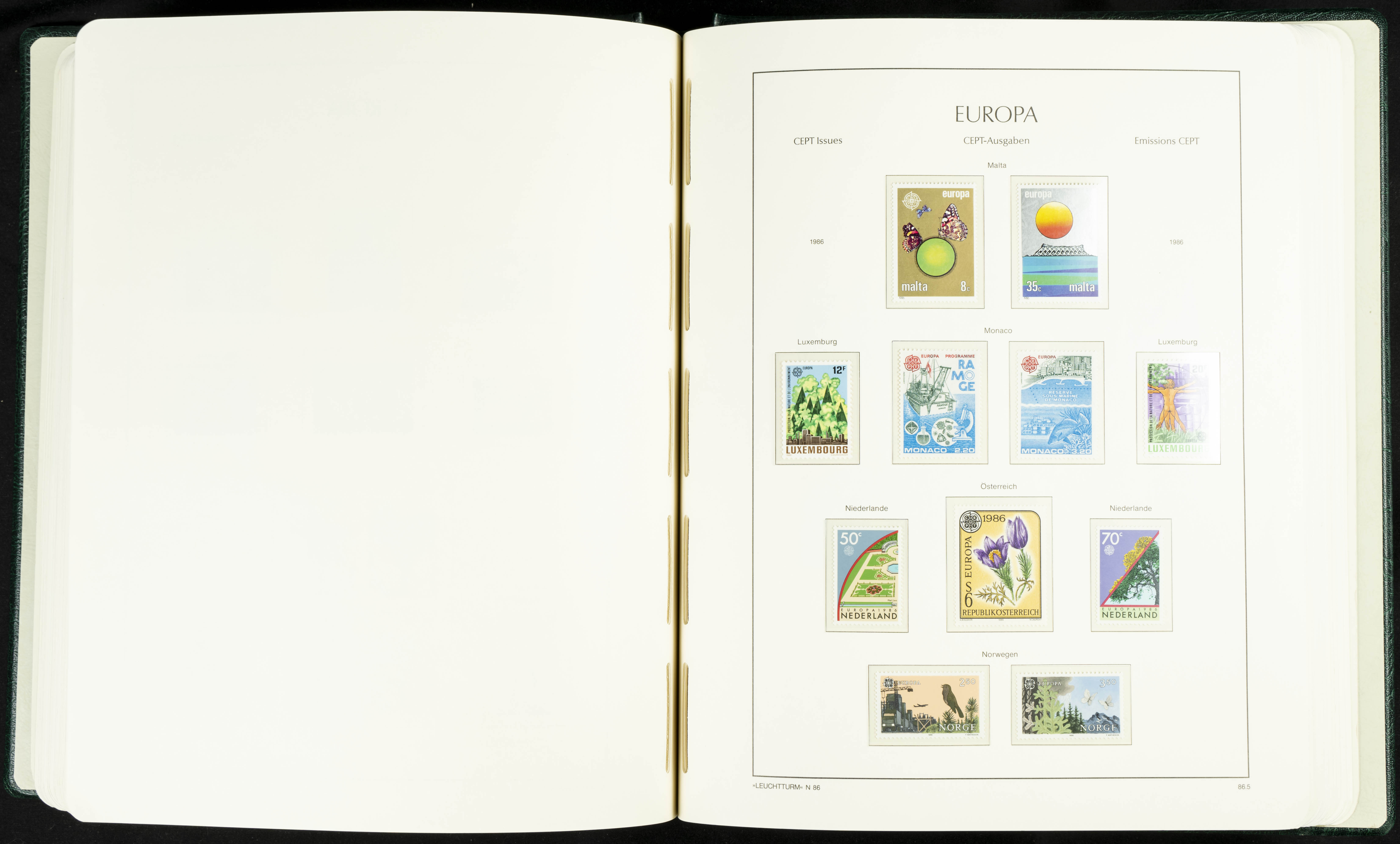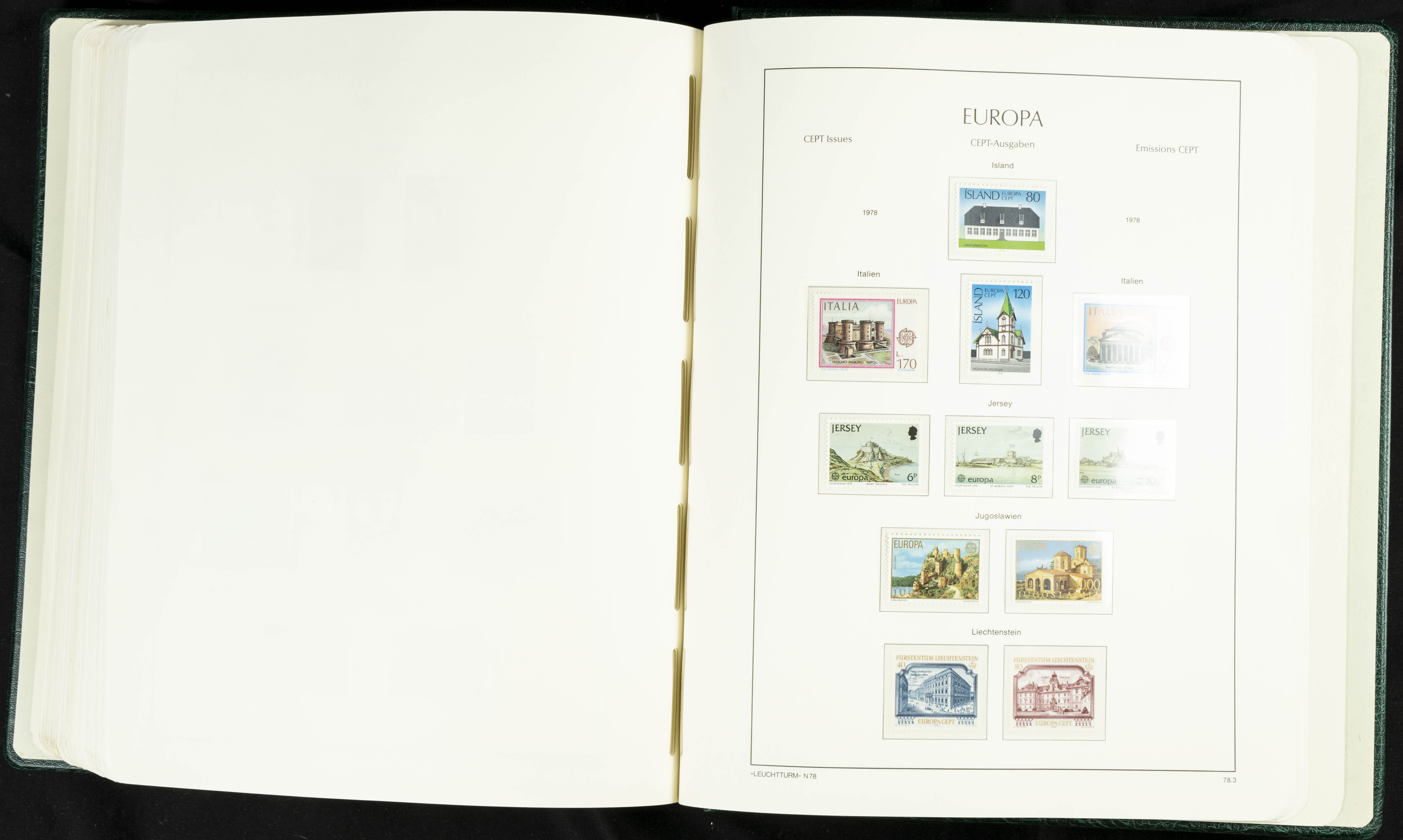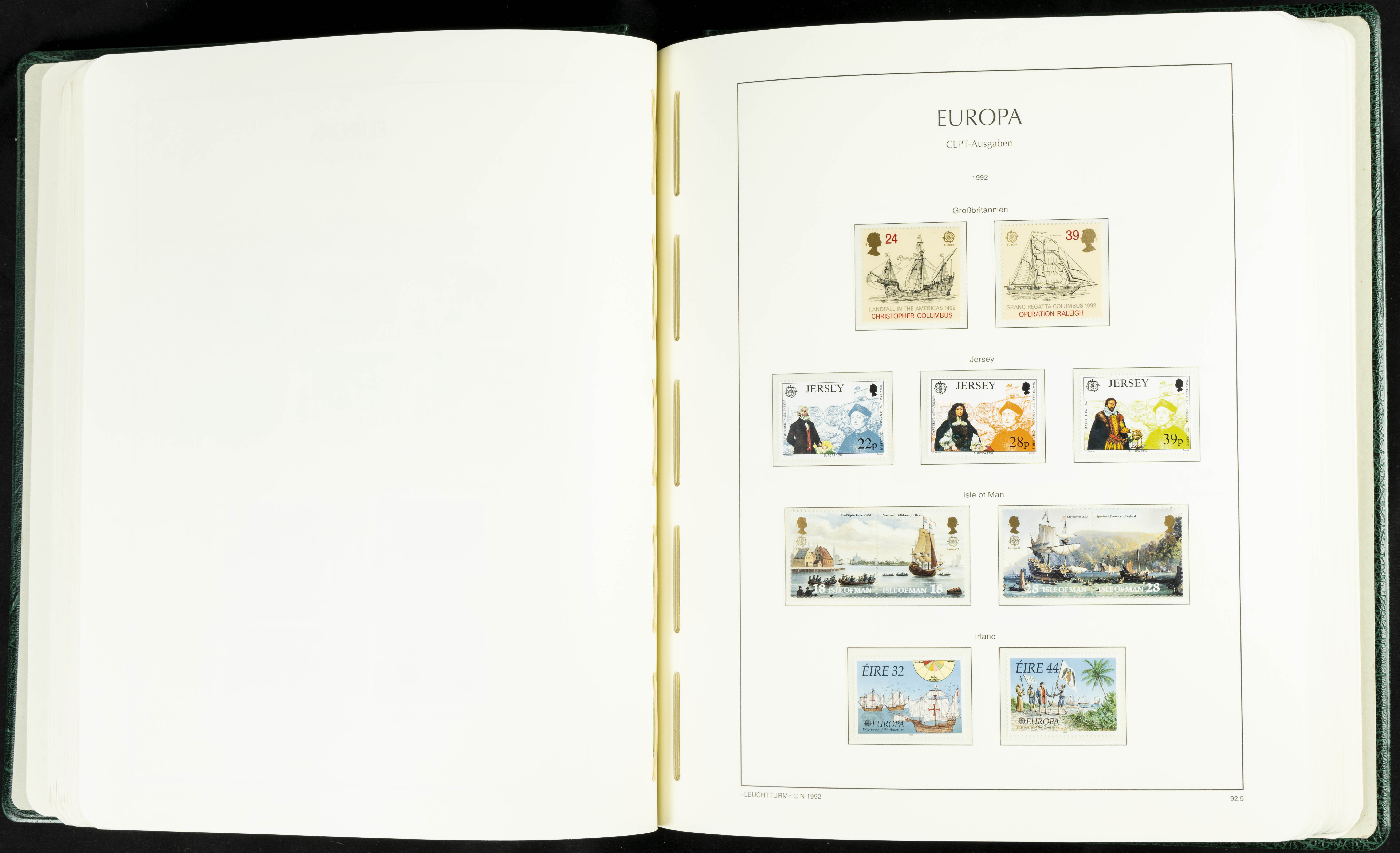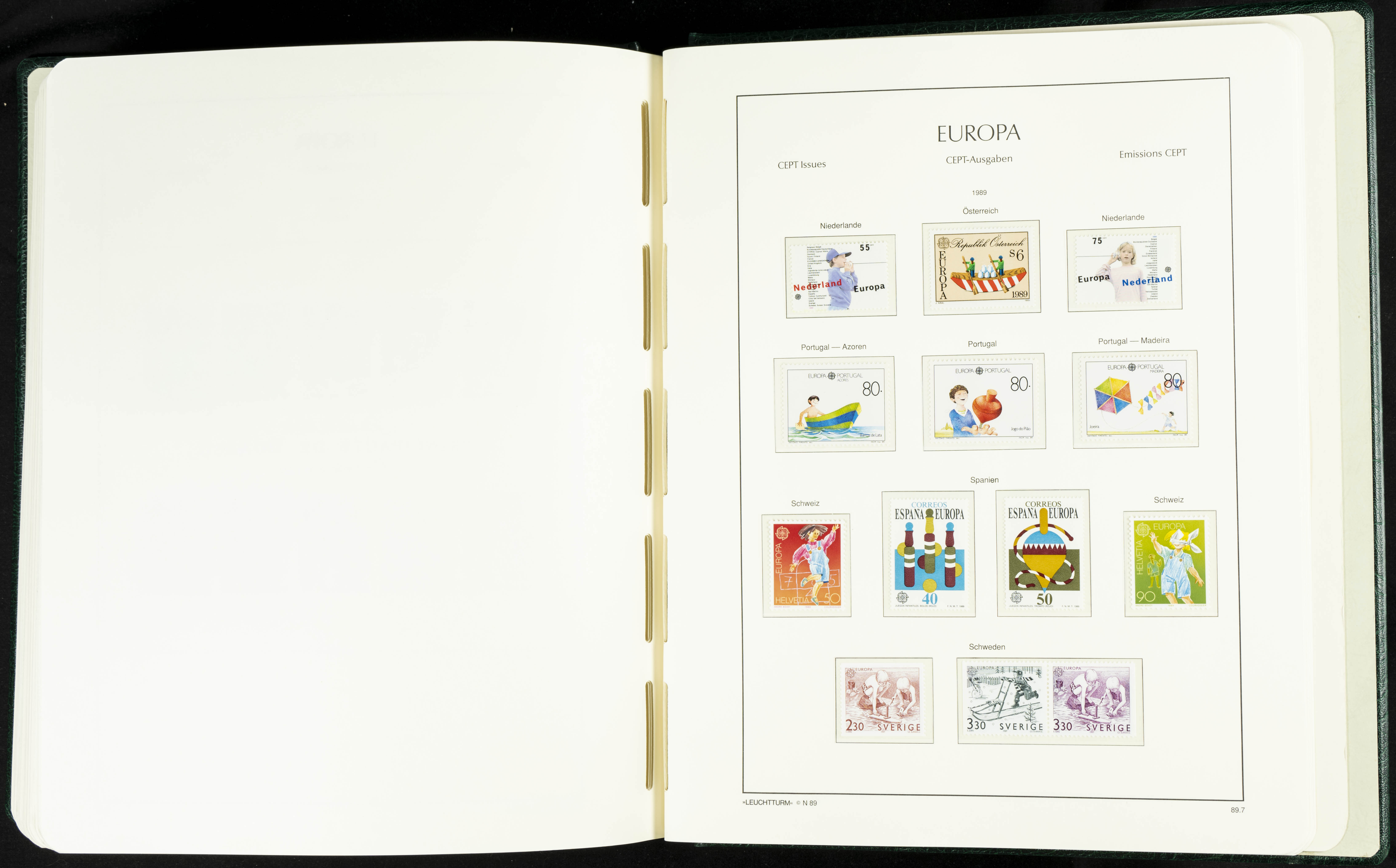 ★★/★(1949ca). Interesante y prácticamente completa colección del Tema Europa y Europeístico (excepto dos series de Italia y Trieste) entre 1949 y 1998, en nuevo sin fijasellos (montada en álbumes Faro). ALTISIMO VALOR DE CATALOGO. A EXAMINAR.