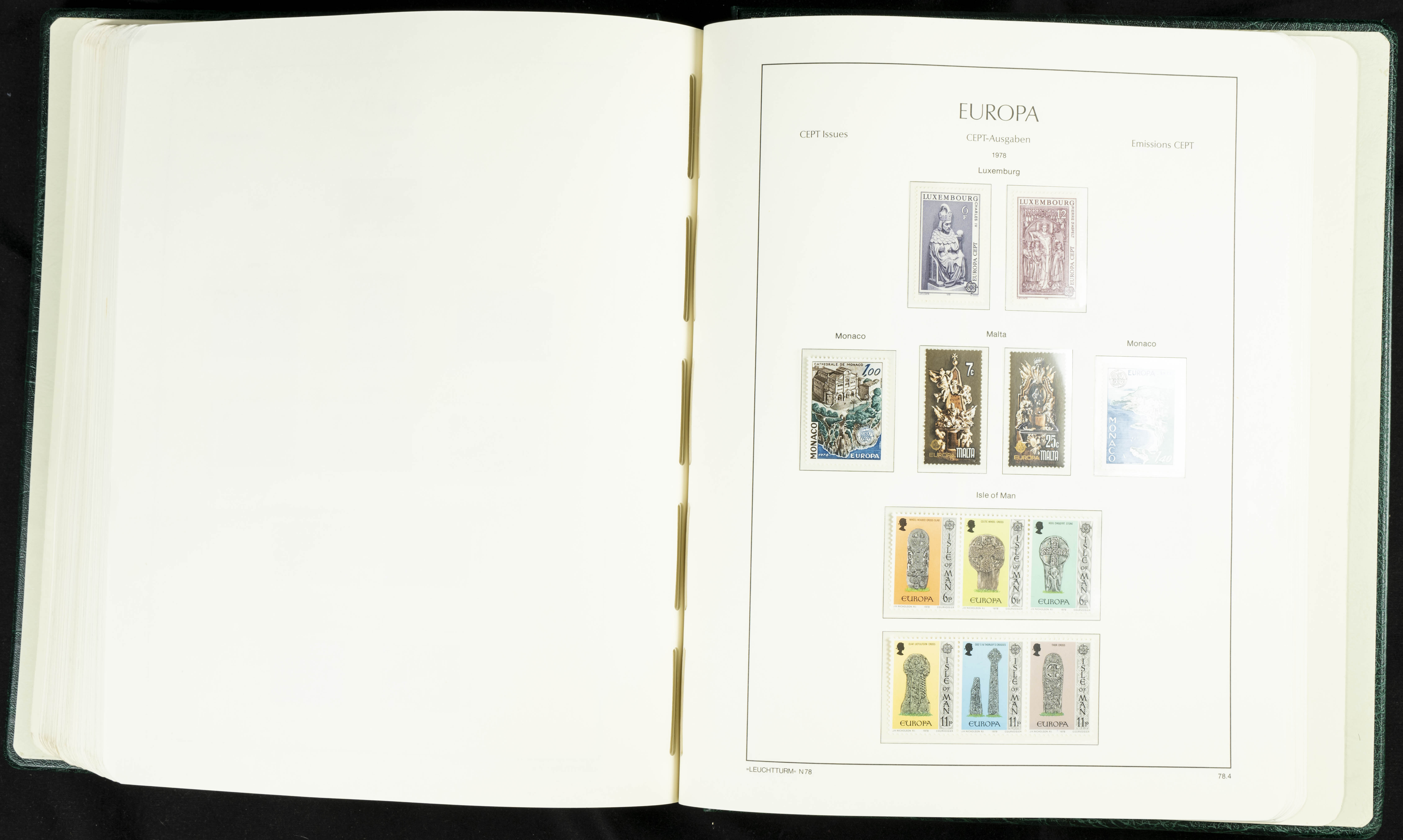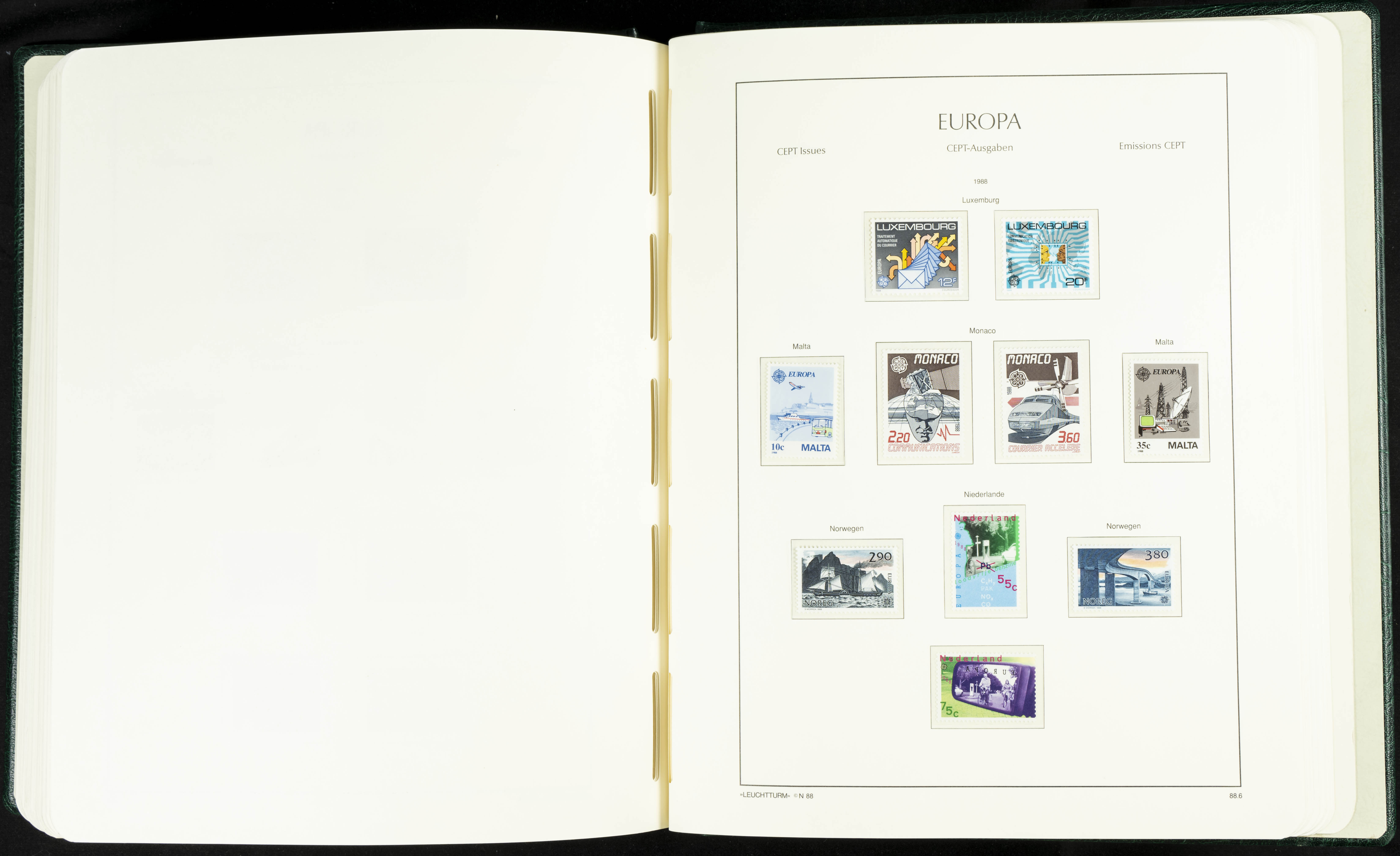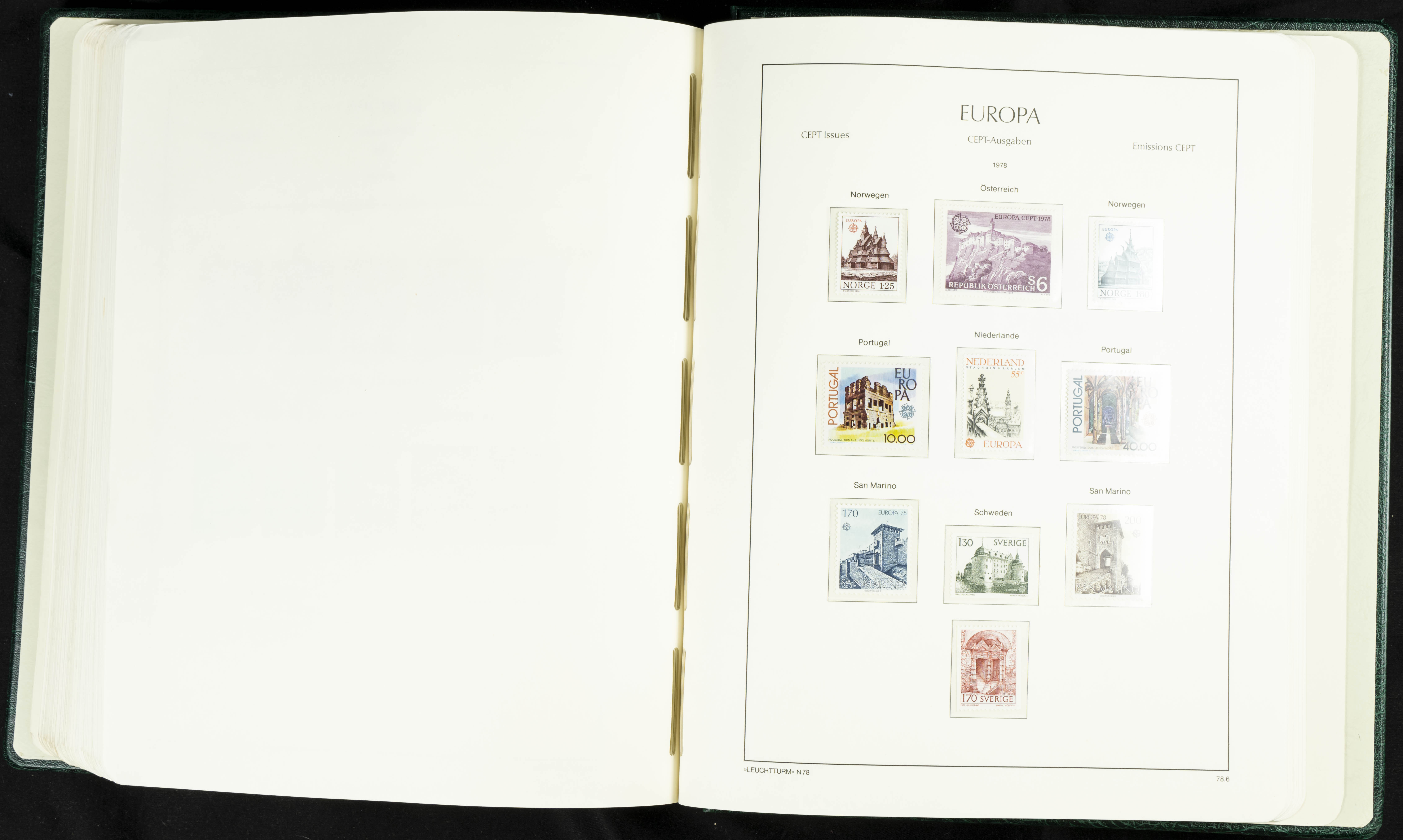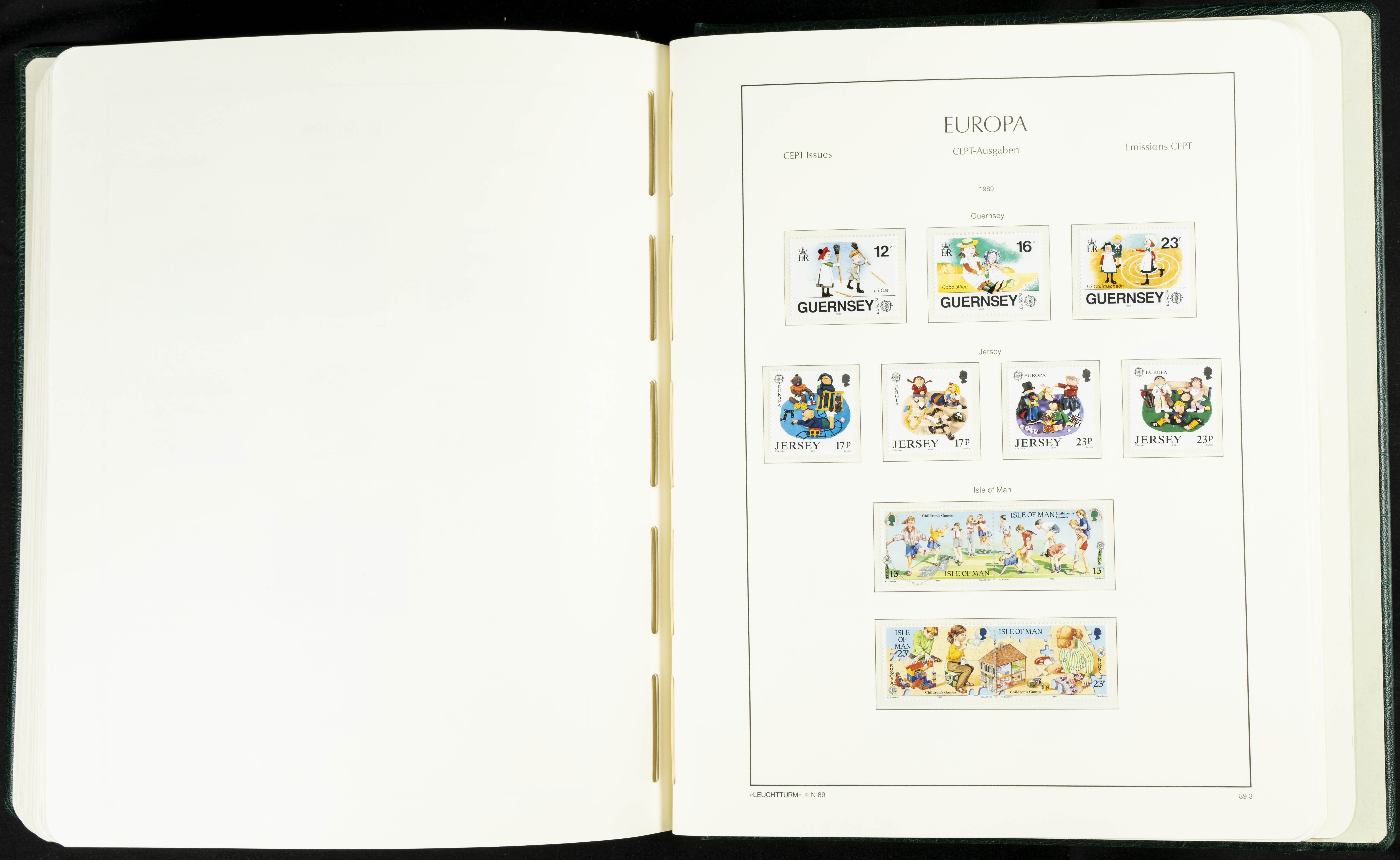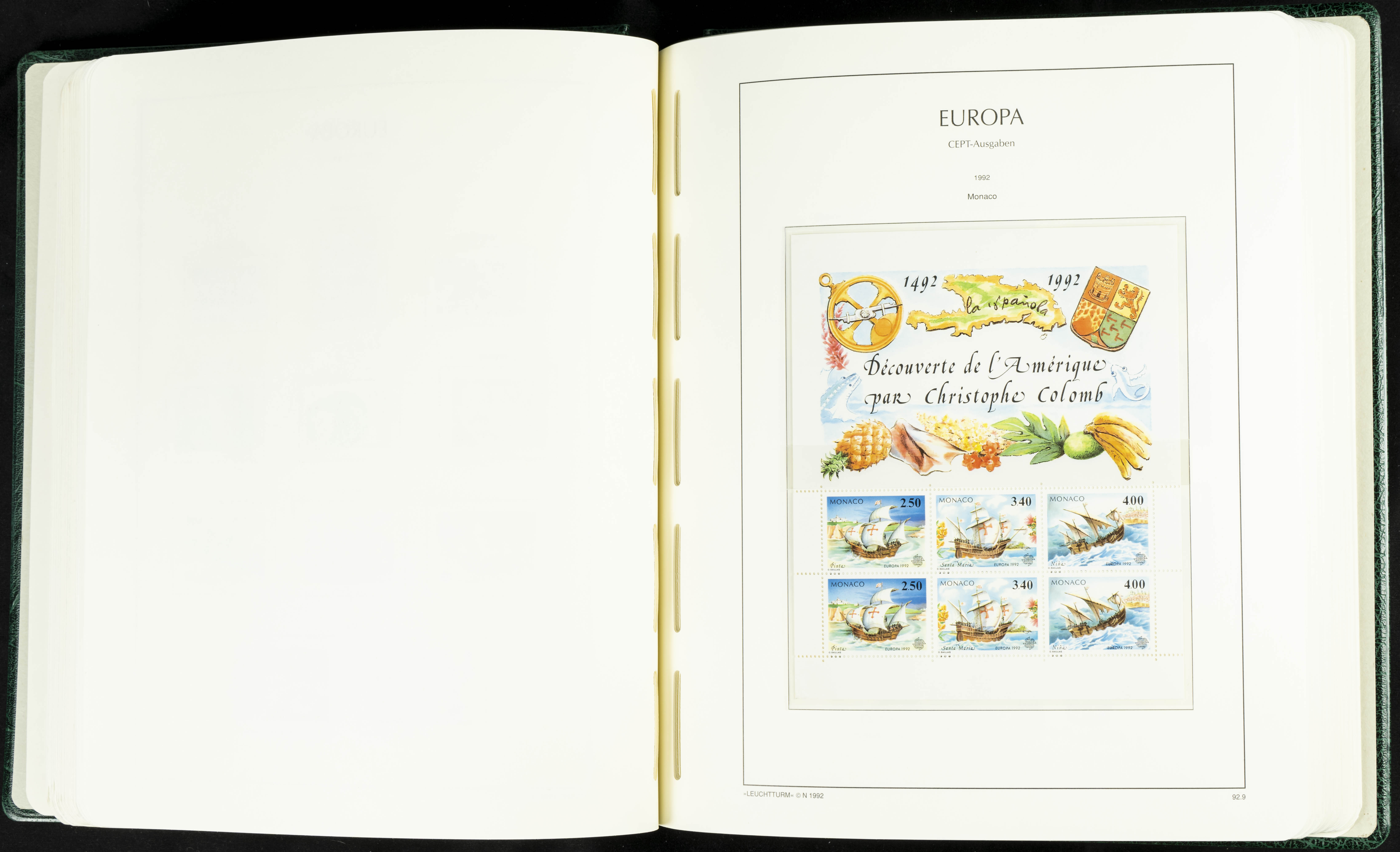 ★★/★(1949ca). Interesante y prácticamente completa colección del Tema Europa y Europeístico (excepto dos series de Italia y Trieste) entre 1949 y 1998, en nuevo sin fijasellos (montada en álbumes Faro). ALTISIMO VALOR DE CATALOGO. A EXAMINAR.