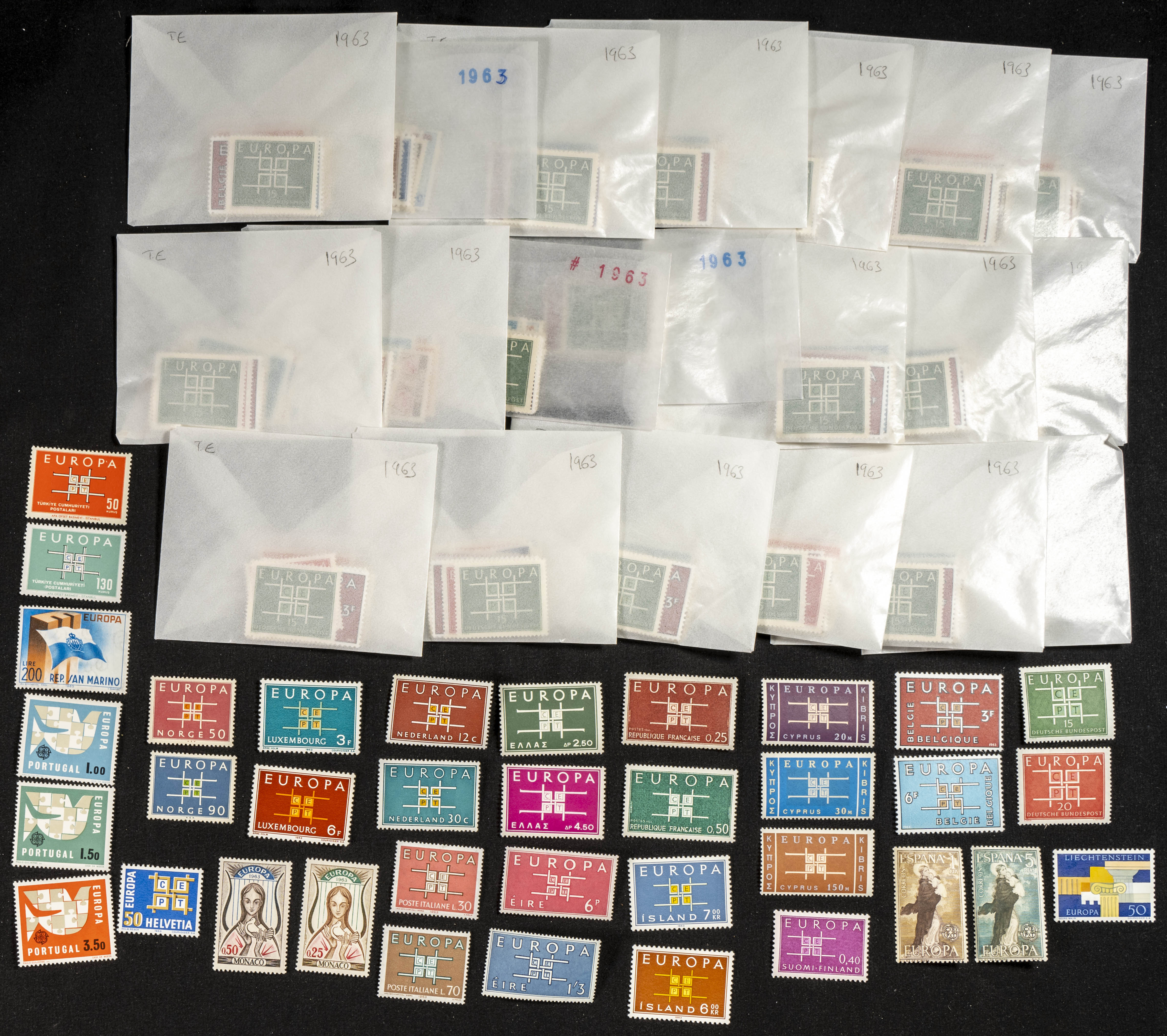 ★★1963. Conjunto de veintiún años completos del Tema Europa 1963 organizados en sobres de cristal, en nuevo. A EXAMINAR. Yvert 2016: 2.499 Euros
