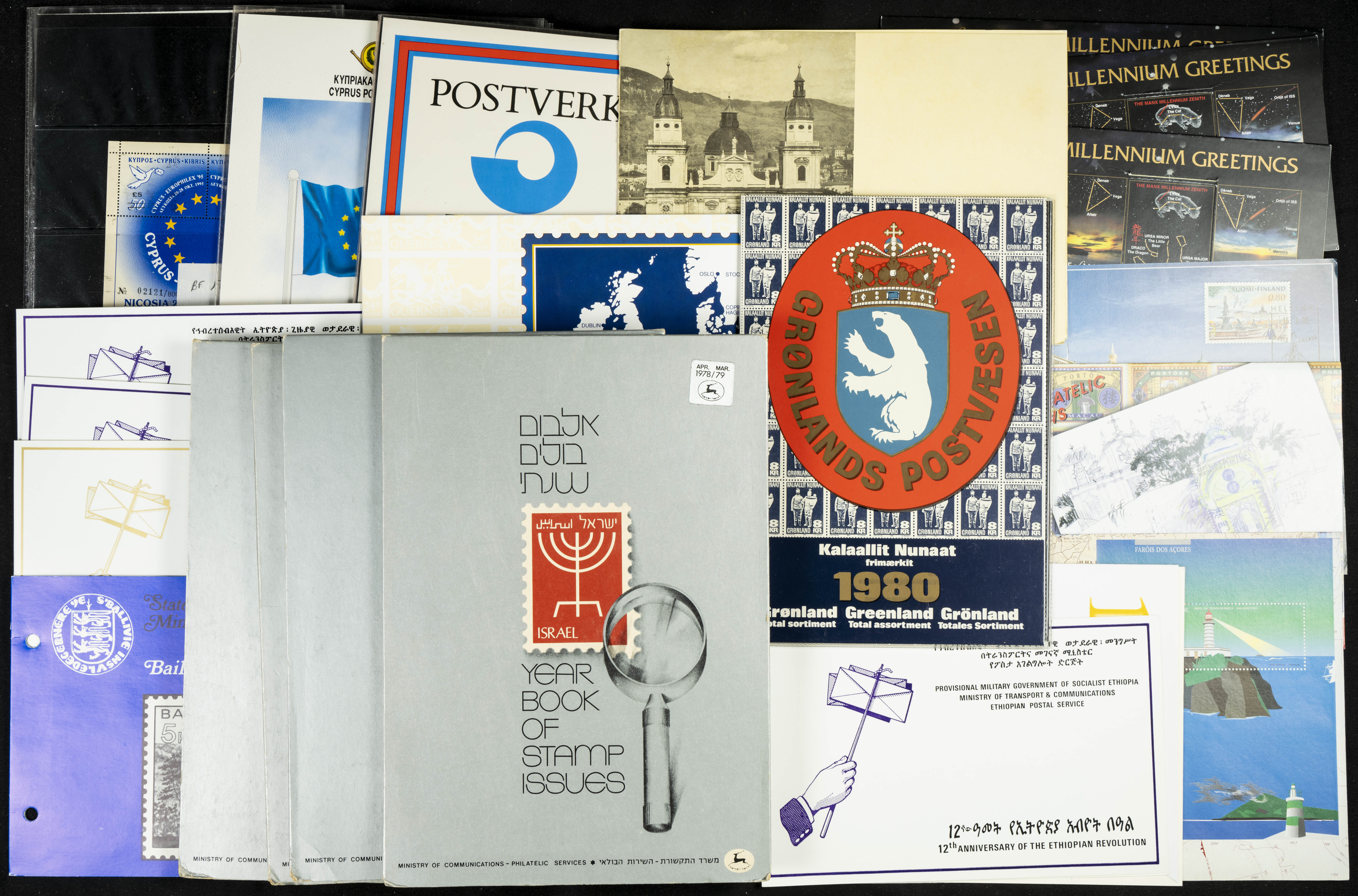 ★★/(1980ca). Conjunto de series completas de diversos países, en nuevo y usado, la mayoría modernas en carpetas o estuches conmemorativos, incluye felicitaciones y algún Sobre de Primer Día. A EXAMINAR.