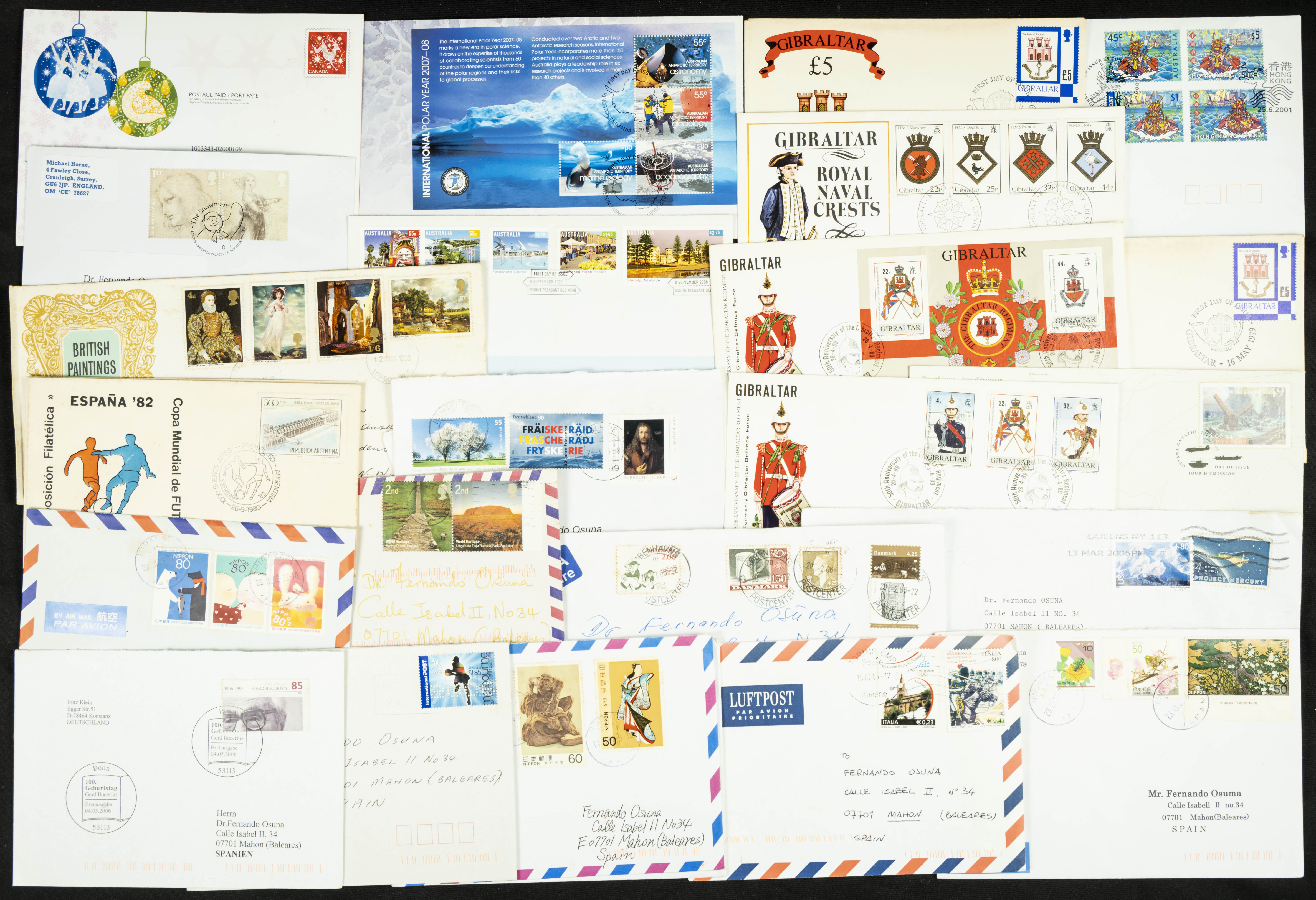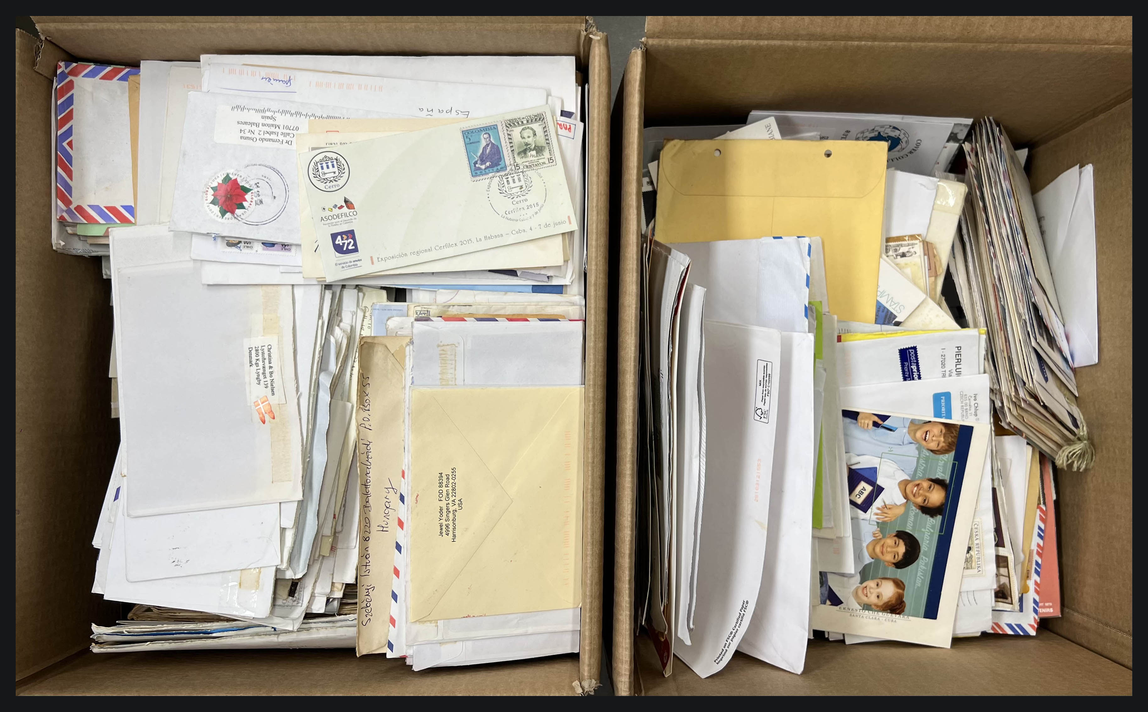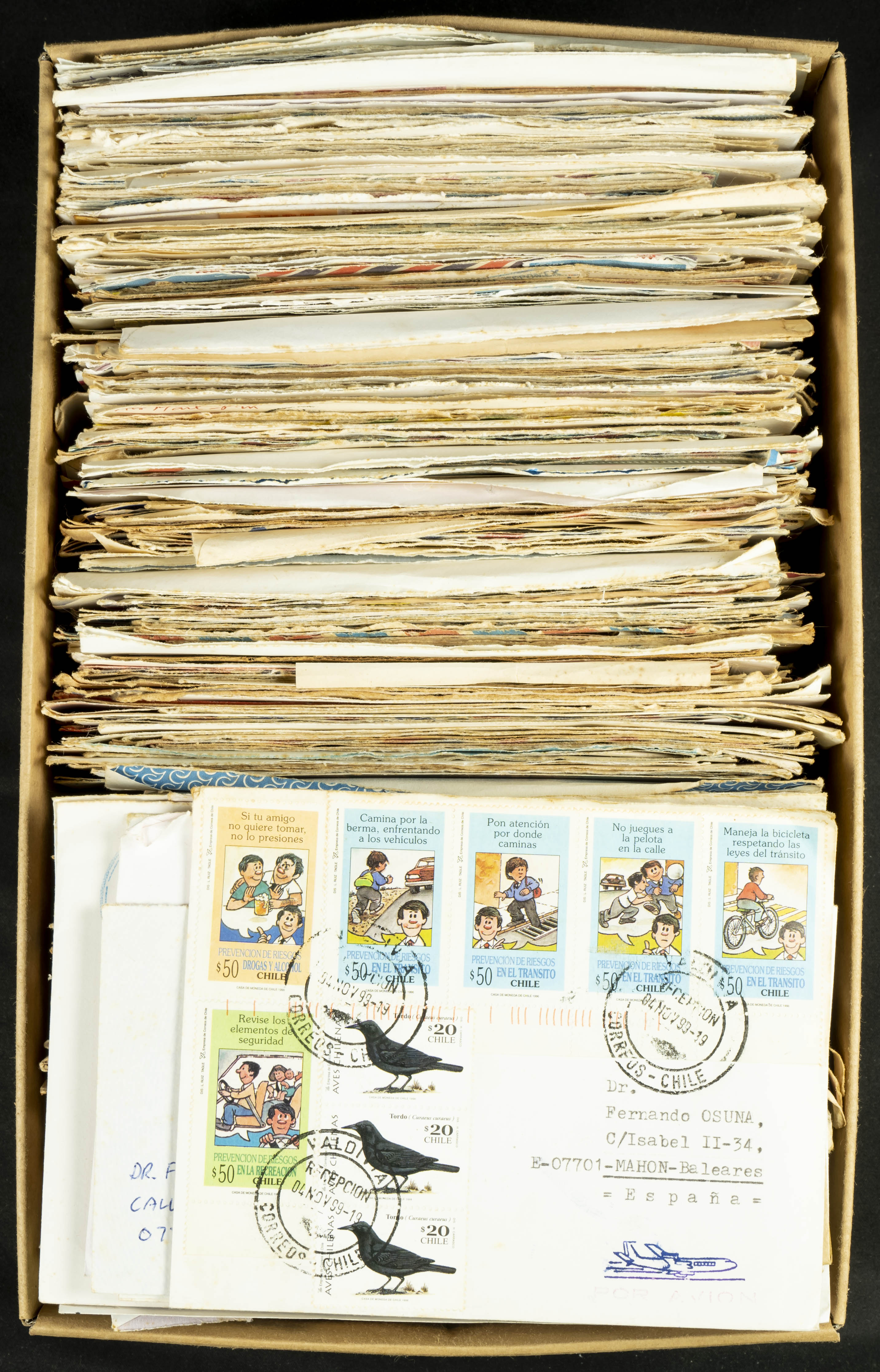 (1970ca). Conjunto de cientos de sobres circulados (es fácil que supere los mil doscientos) de diversos países, la mayoría dirigidos a España entre los años setenta y dos mil (archivo de un filatélico). A EXAMINAR.