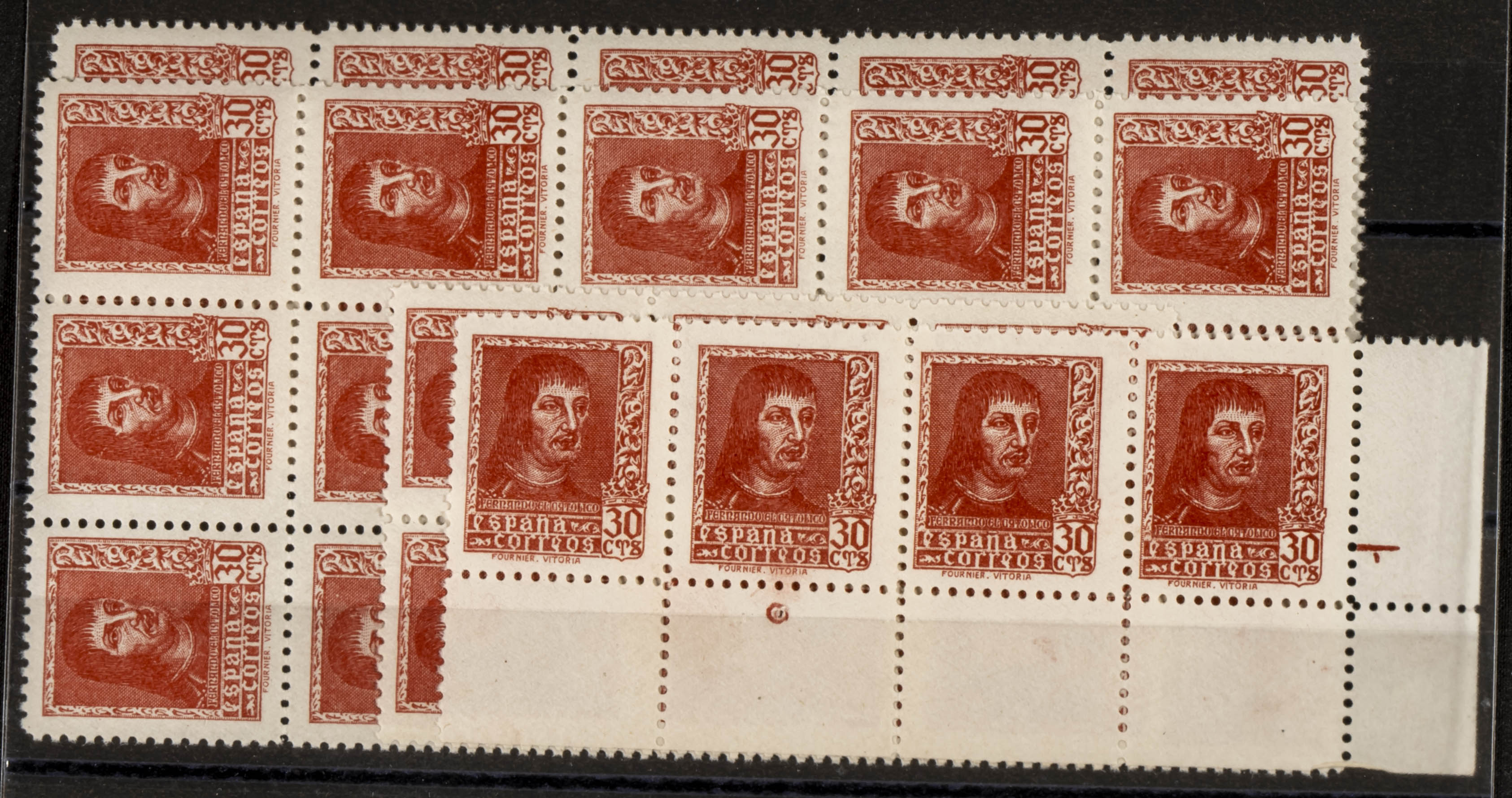 ★★ 844(35). 1938. 30 cts rojo, treinta y cinco sellos. FERNANDO (buena calidad en general). A EXAMINAR. Edifil 2026: 1.260 Euros