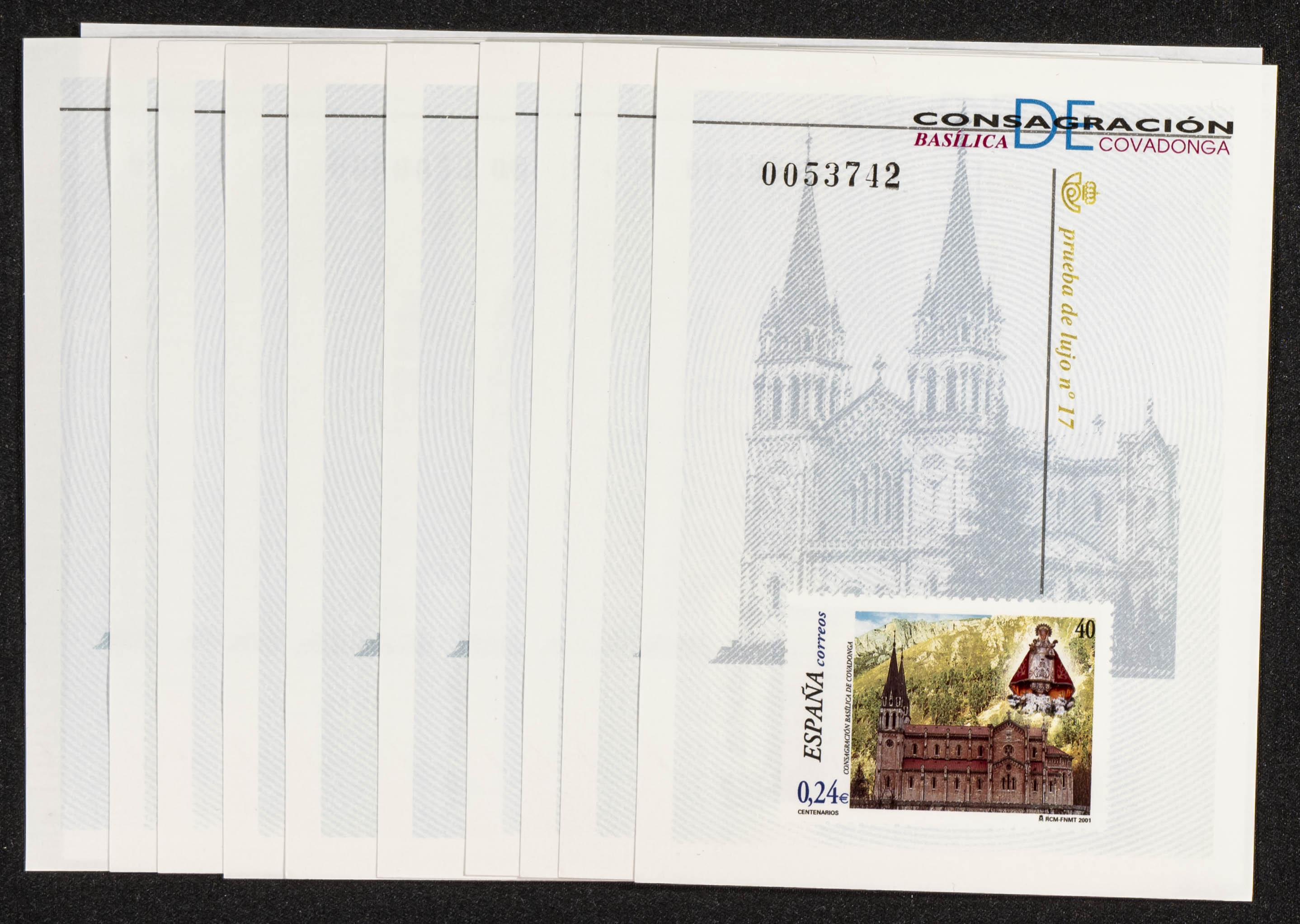 ★★ 74P(10). 2001. Diez Pruebas de Lujo. BASILICA DE COVADONGA. A EXAMINAR. Edifil 2026: 120 Euros