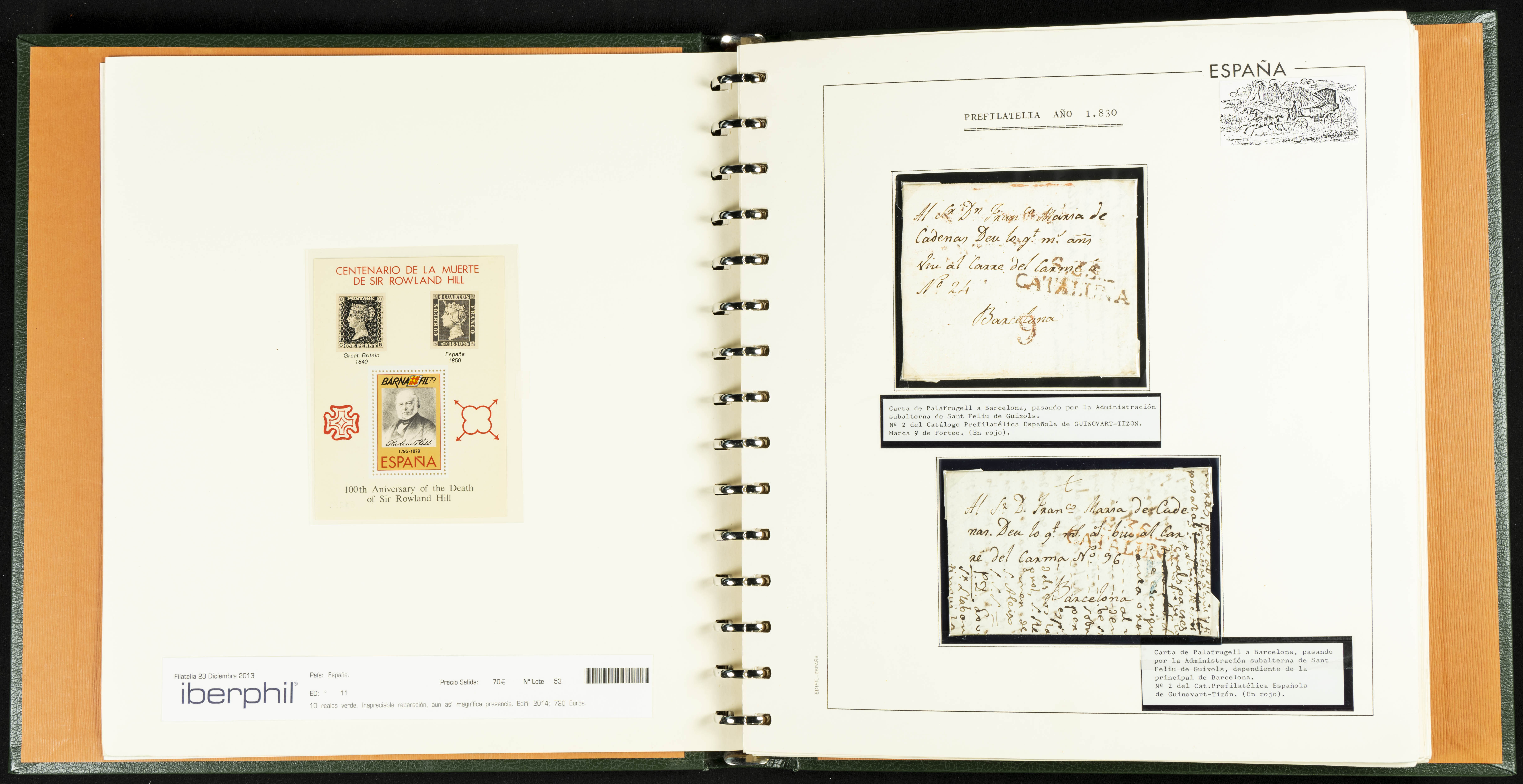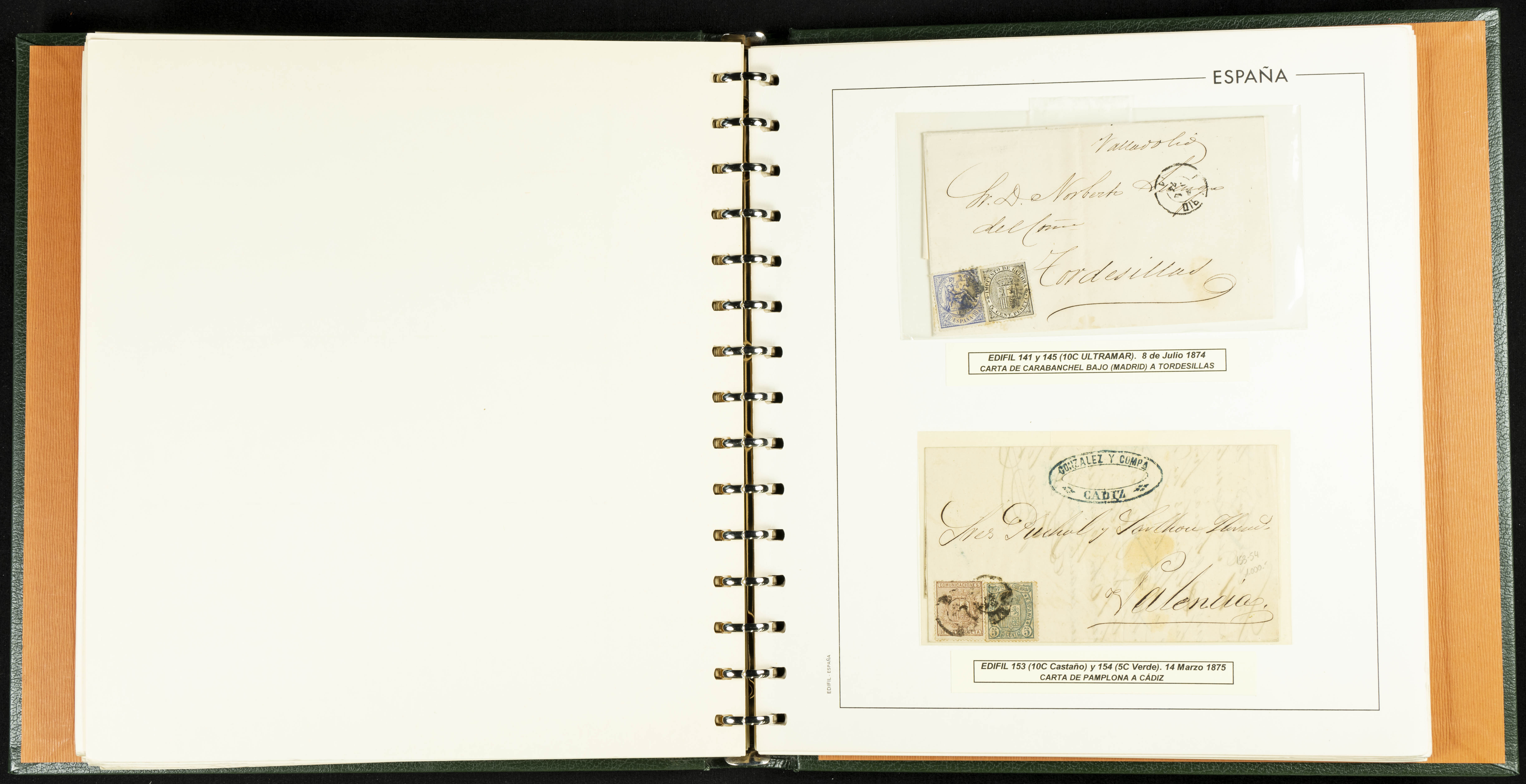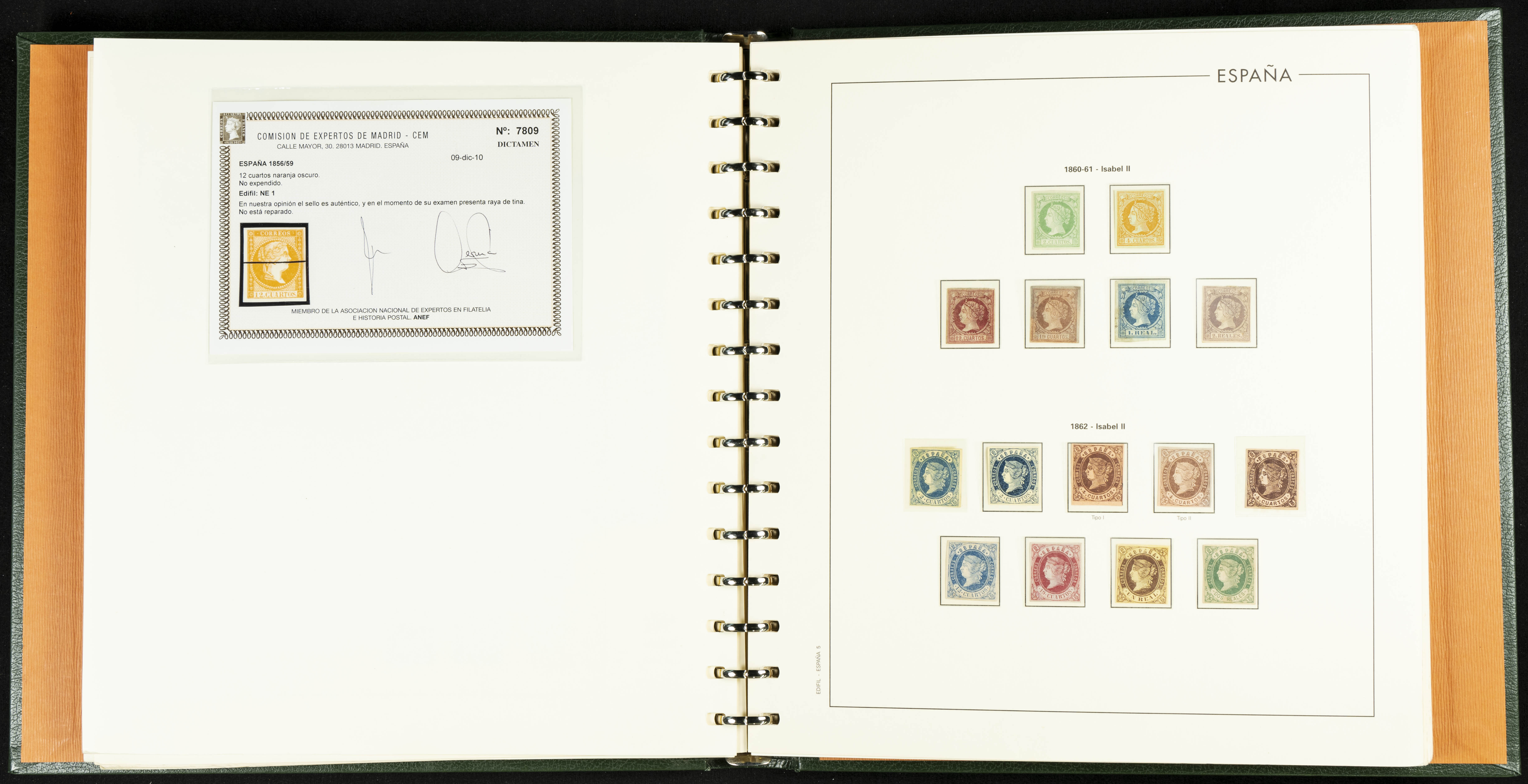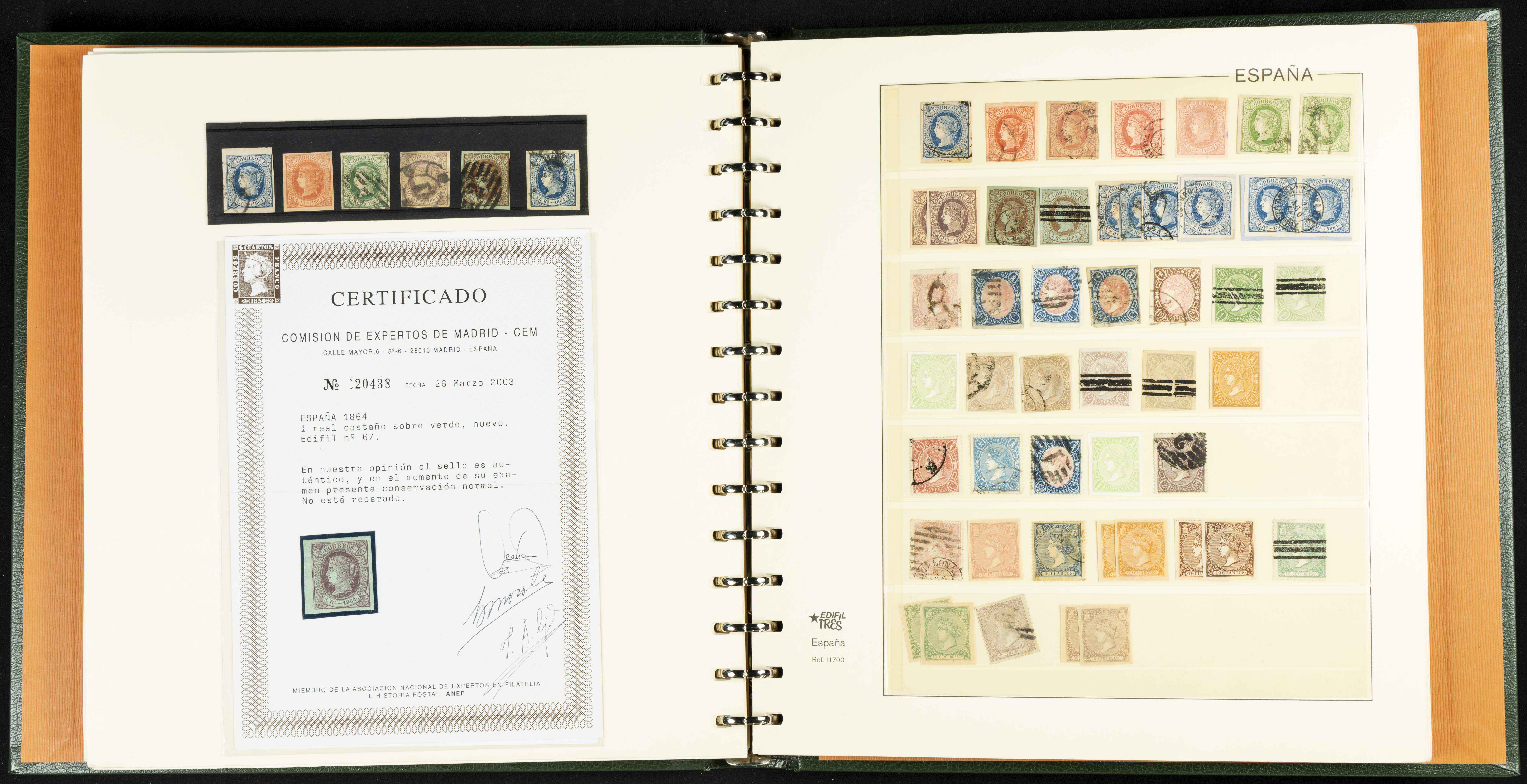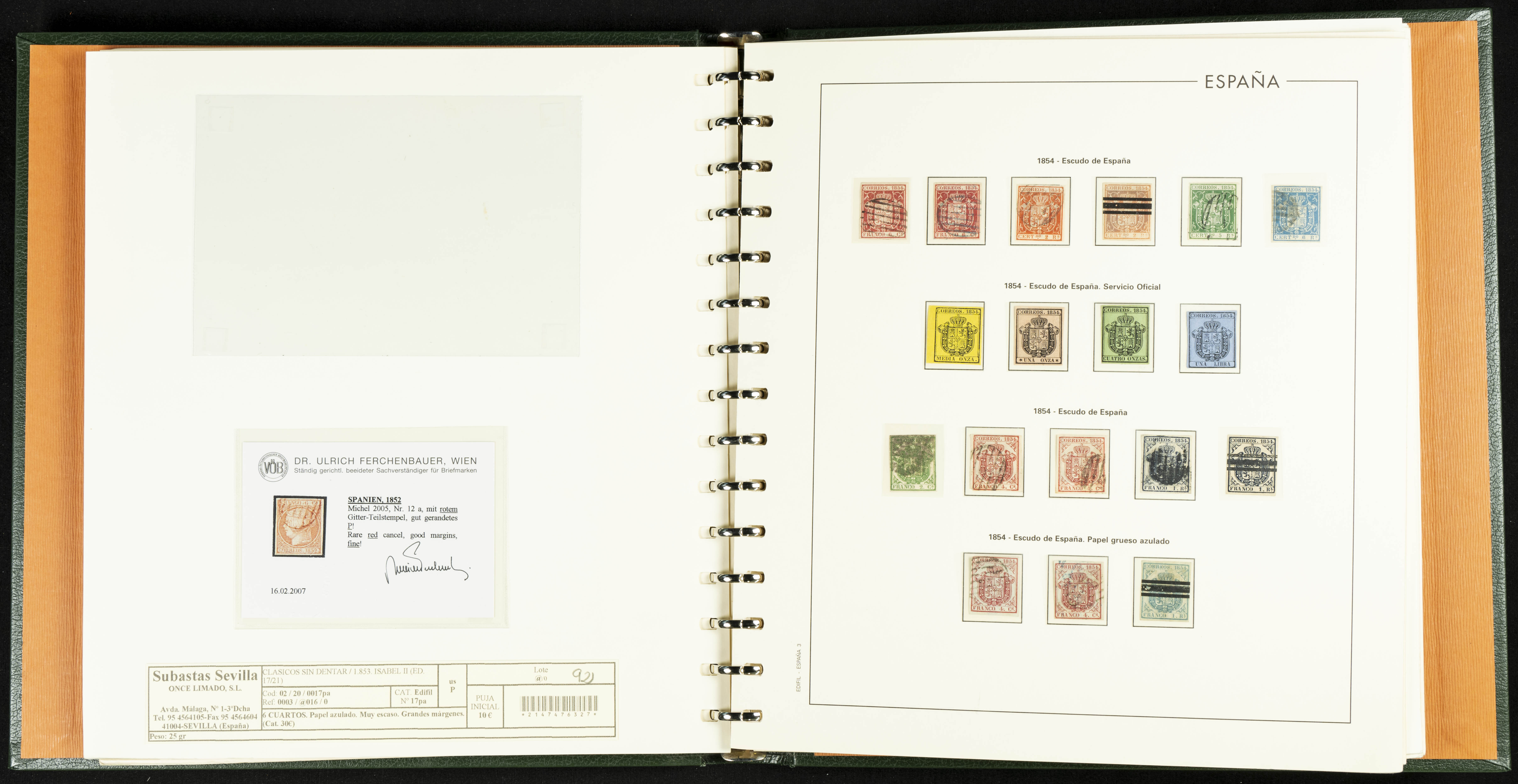 (★)/(1850ca). Espectacular conjunto de sellos clásicos entre 1850 y 1898, en nuevo y usado e incluyendo numerosos matasellos especiales, fragmentos, cartas, bloques, variedades, etc, además de algún sello falso para estudio, destacando el 6 reales de 1850 con matasello "11" limado, 5 reales de 1851, pareja del 6 reales de 1854 (Escudo), bloque de seis de Correo Oficial en nuevo, varios 19 cuartos nuevos y usados entre 1860 y 1868, series completas de 1862 y 1864 nuevas, series completas de 1865 usadas, serie completa de Pelón nueva, etc. ALTISIMO VALOR DE CATALOGO. IMPRESCINDIBLE EXAMINAR.