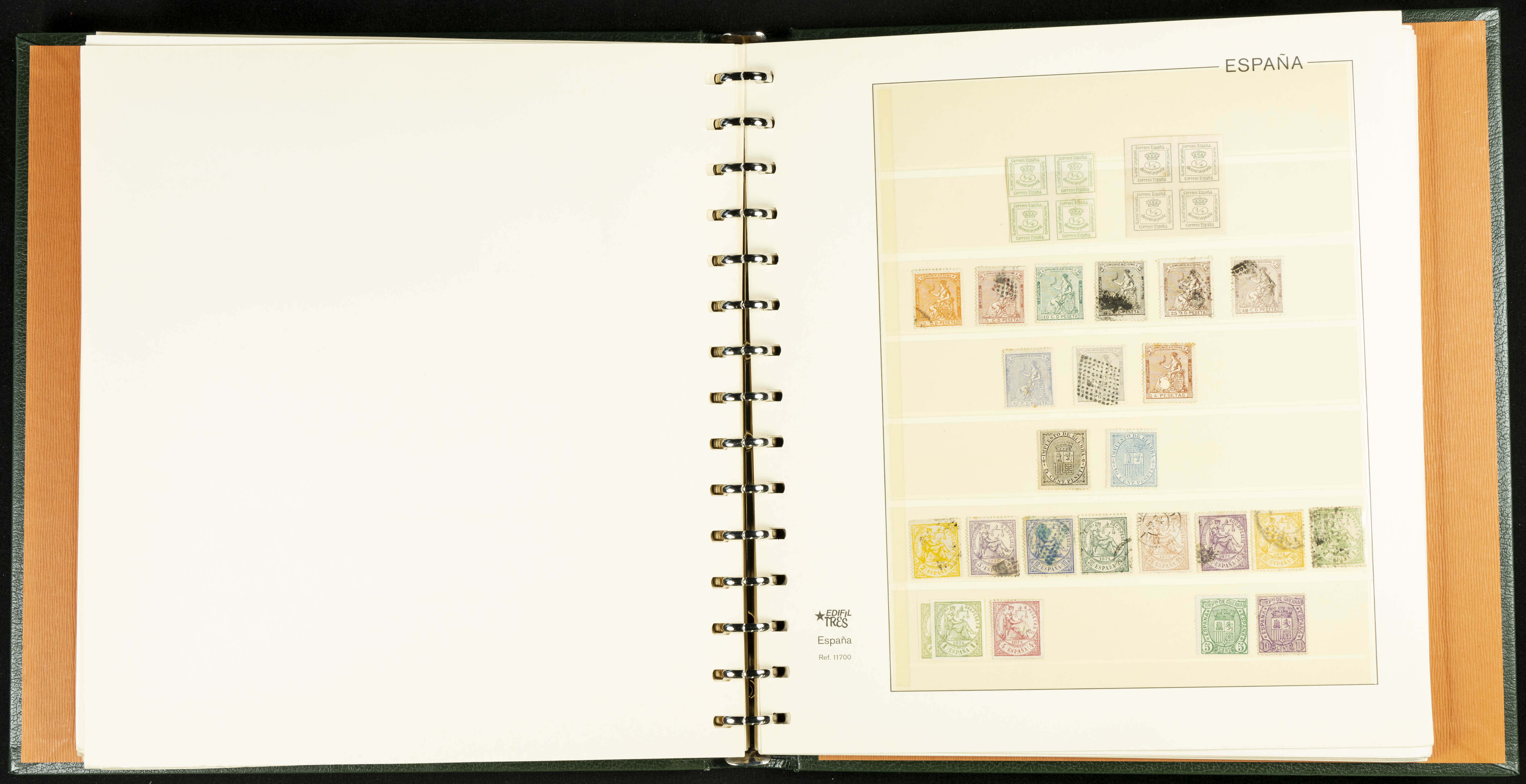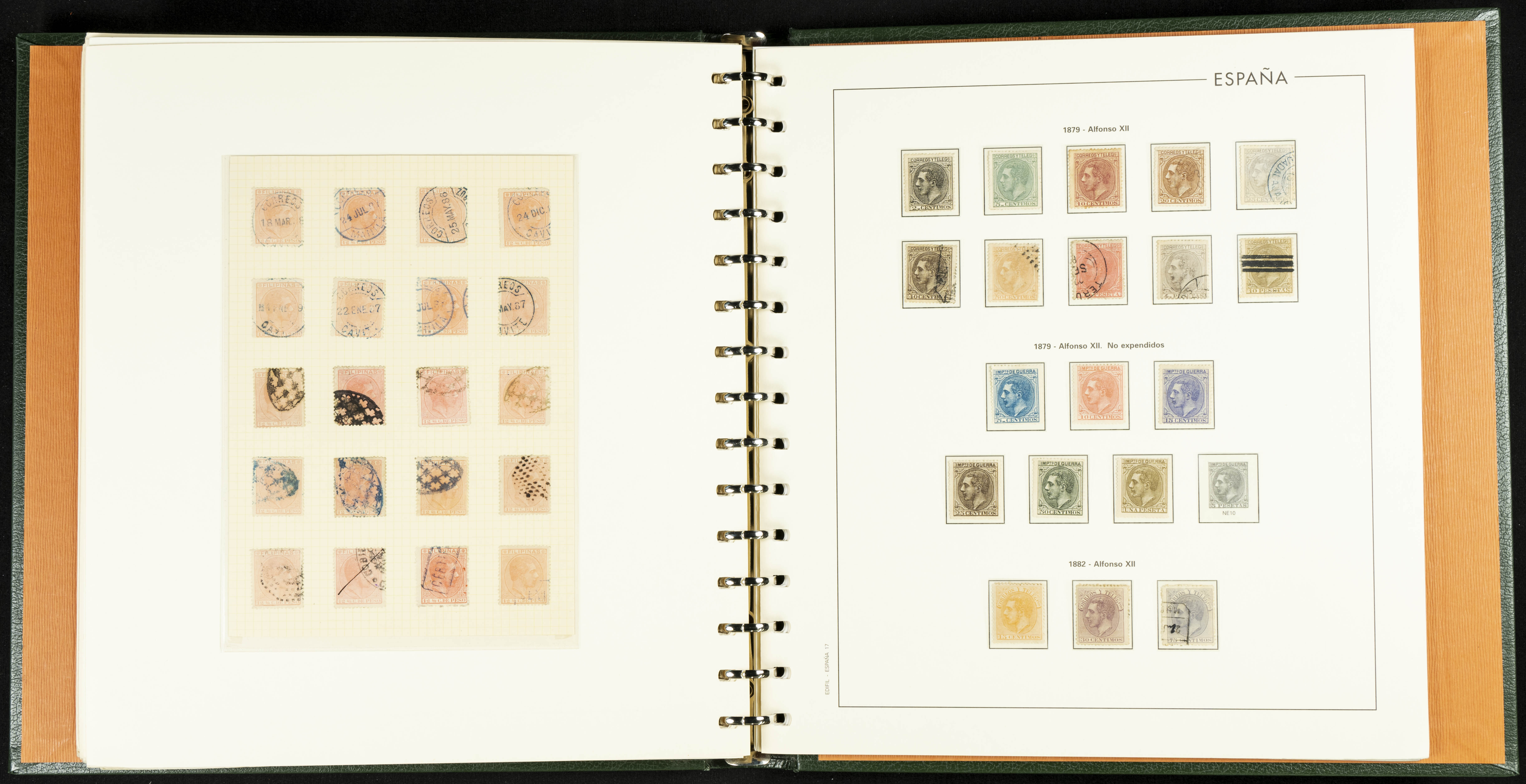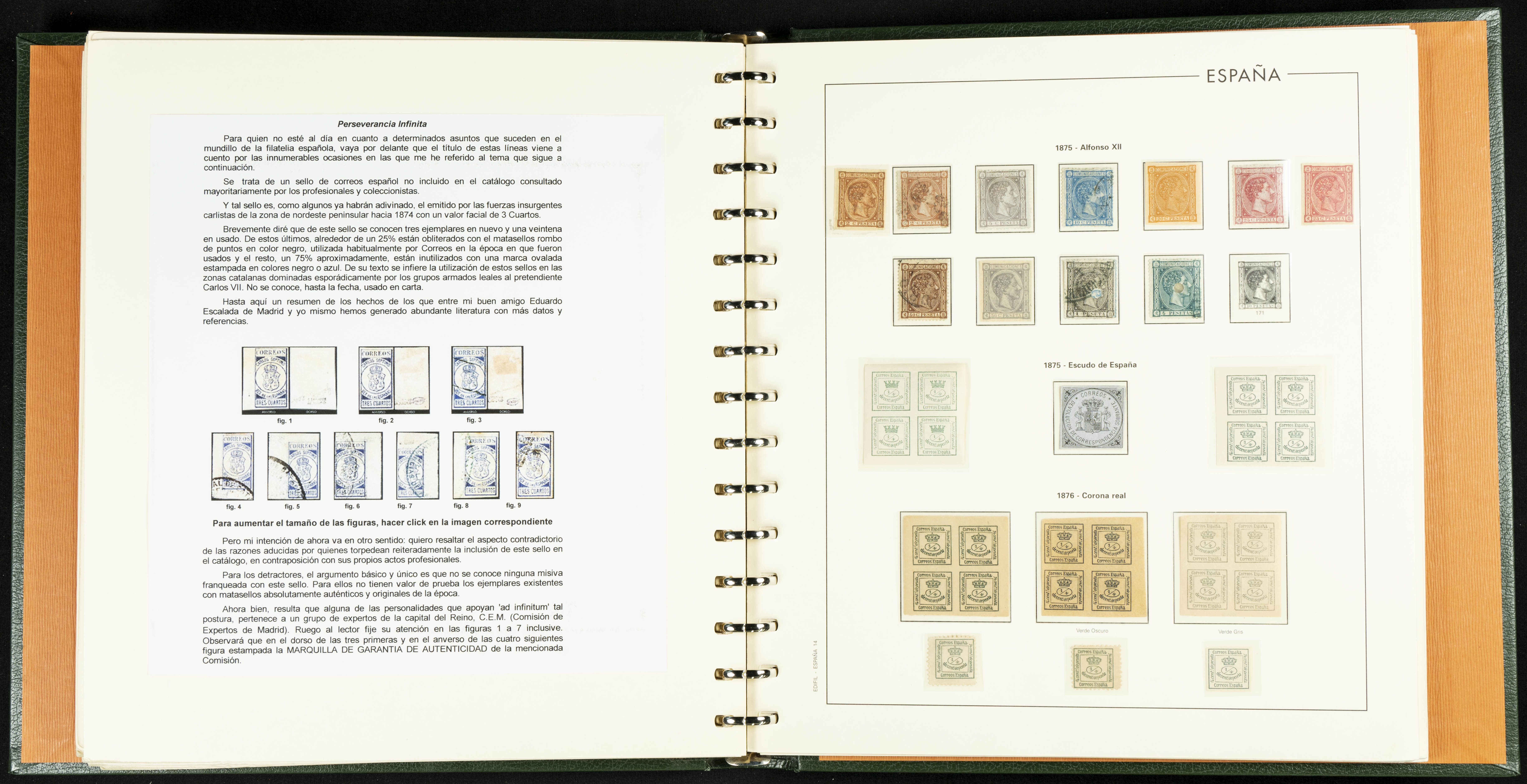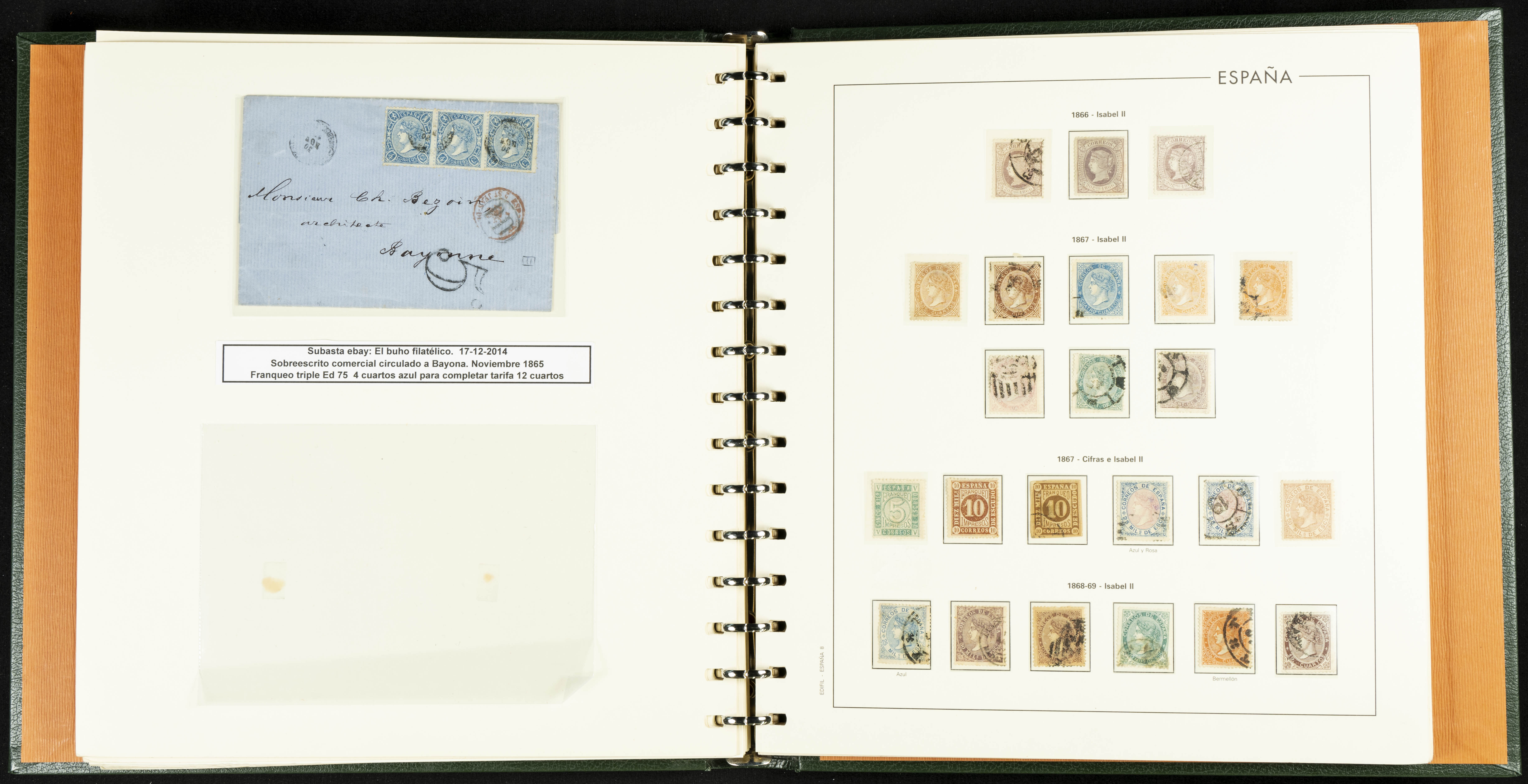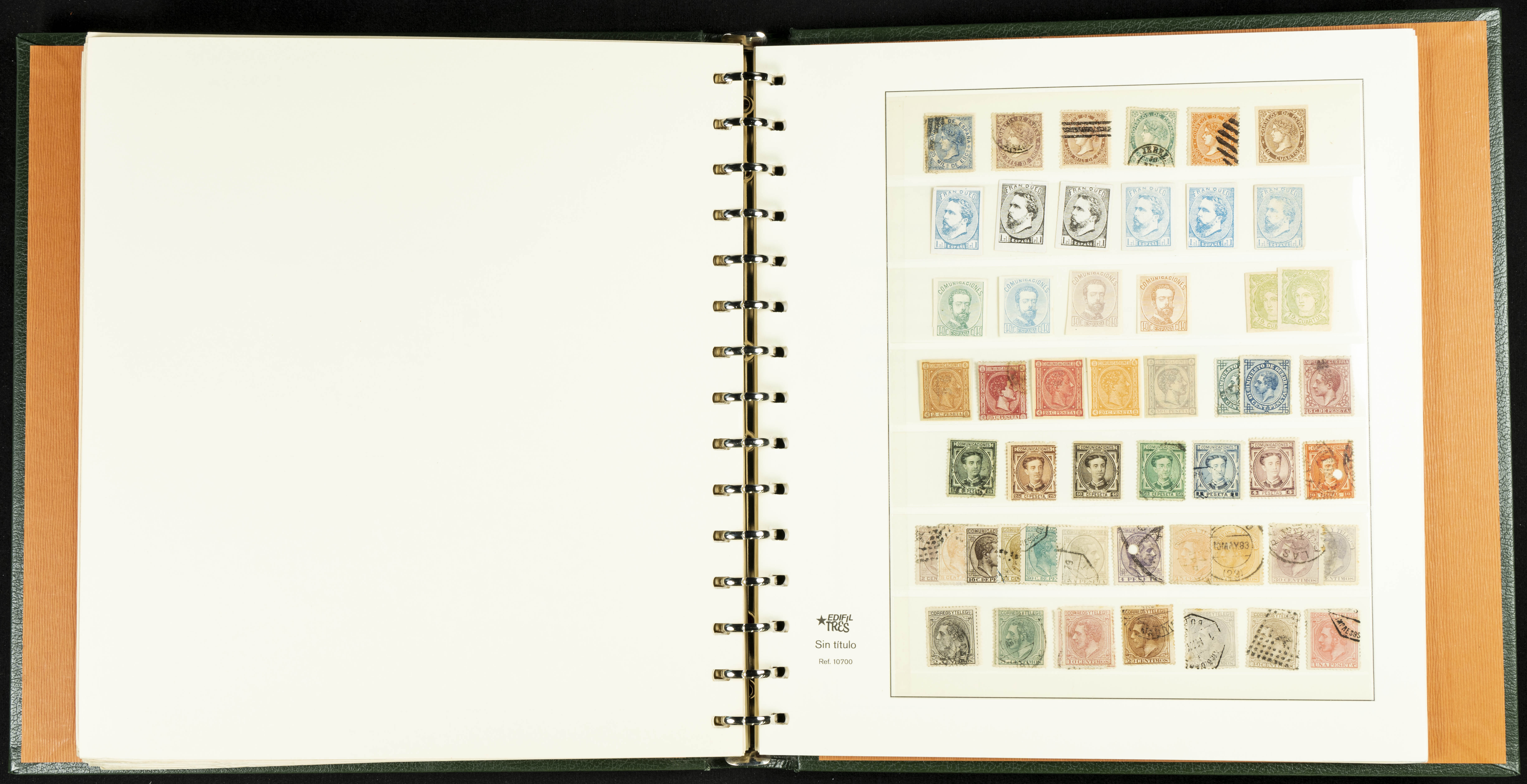 (★)/(1850ca). Espectacular conjunto de sellos clásicos entre 1850 y 1898, en nuevo y usado e incluyendo numerosos matasellos especiales, fragmentos, cartas, bloques, variedades, etc, además de algún sello falso para estudio, destacando el 6 reales de 1850 con matasello "11" limado, 5 reales de 1851, pareja del 6 reales de 1854 (Escudo), bloque de seis de Correo Oficial en nuevo, varios 19 cuartos nuevos y usados entre 1860 y 1868, series completas de 1862 y 1864 nuevas, series completas de 1865 usadas, serie completa de Pelón nueva, etc. ALTISIMO VALOR DE CATALOGO. IMPRESCINDIBLE EXAMINAR.