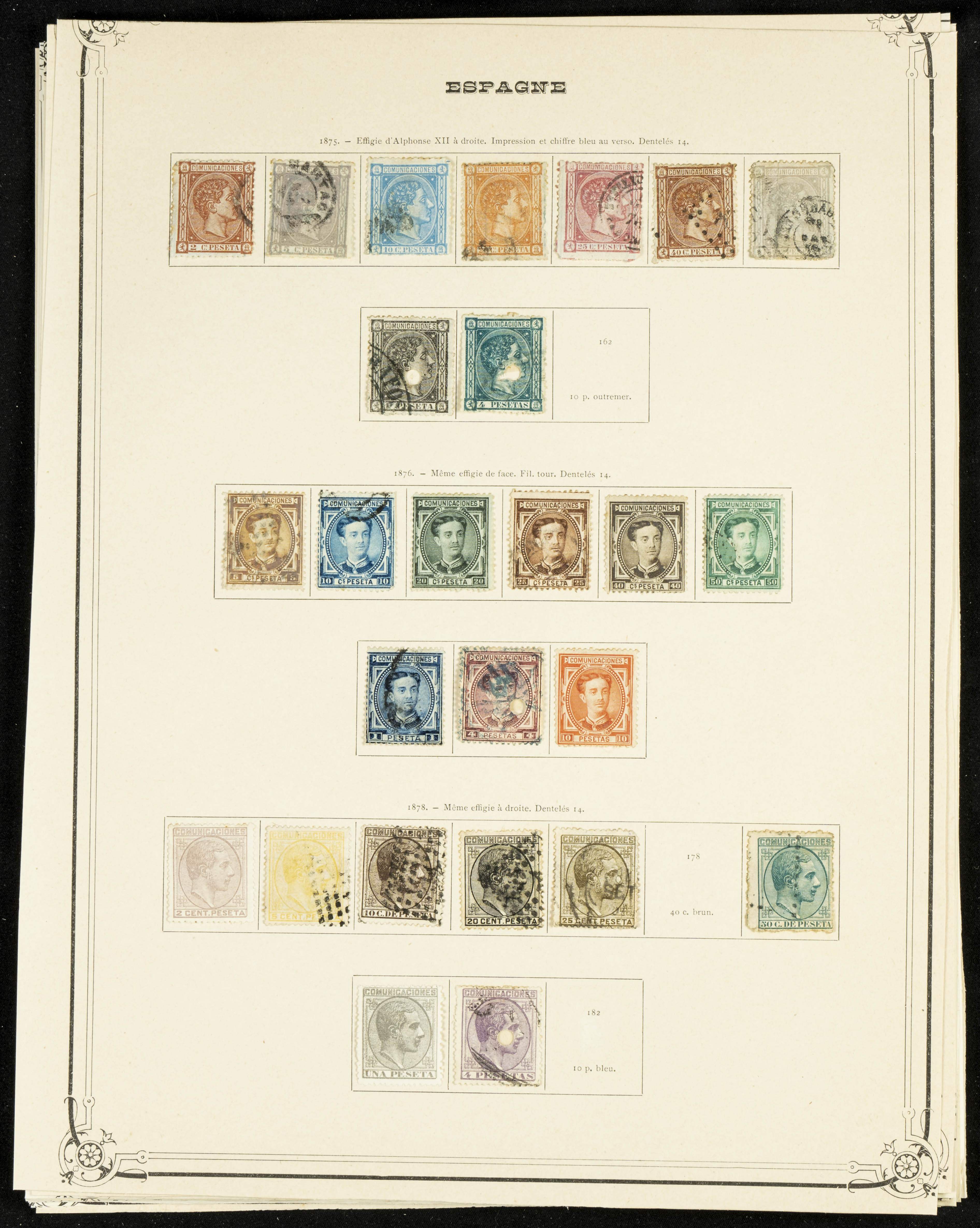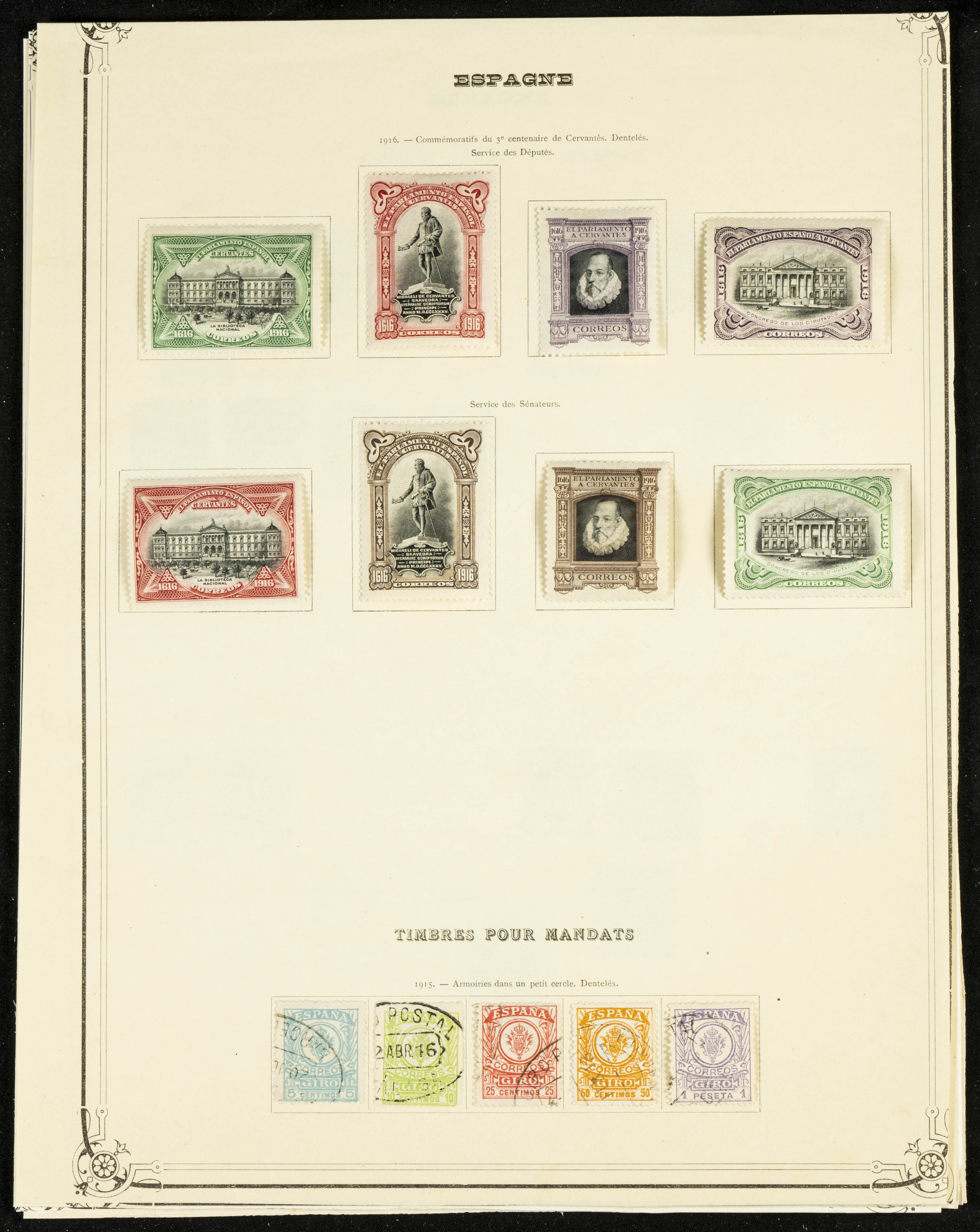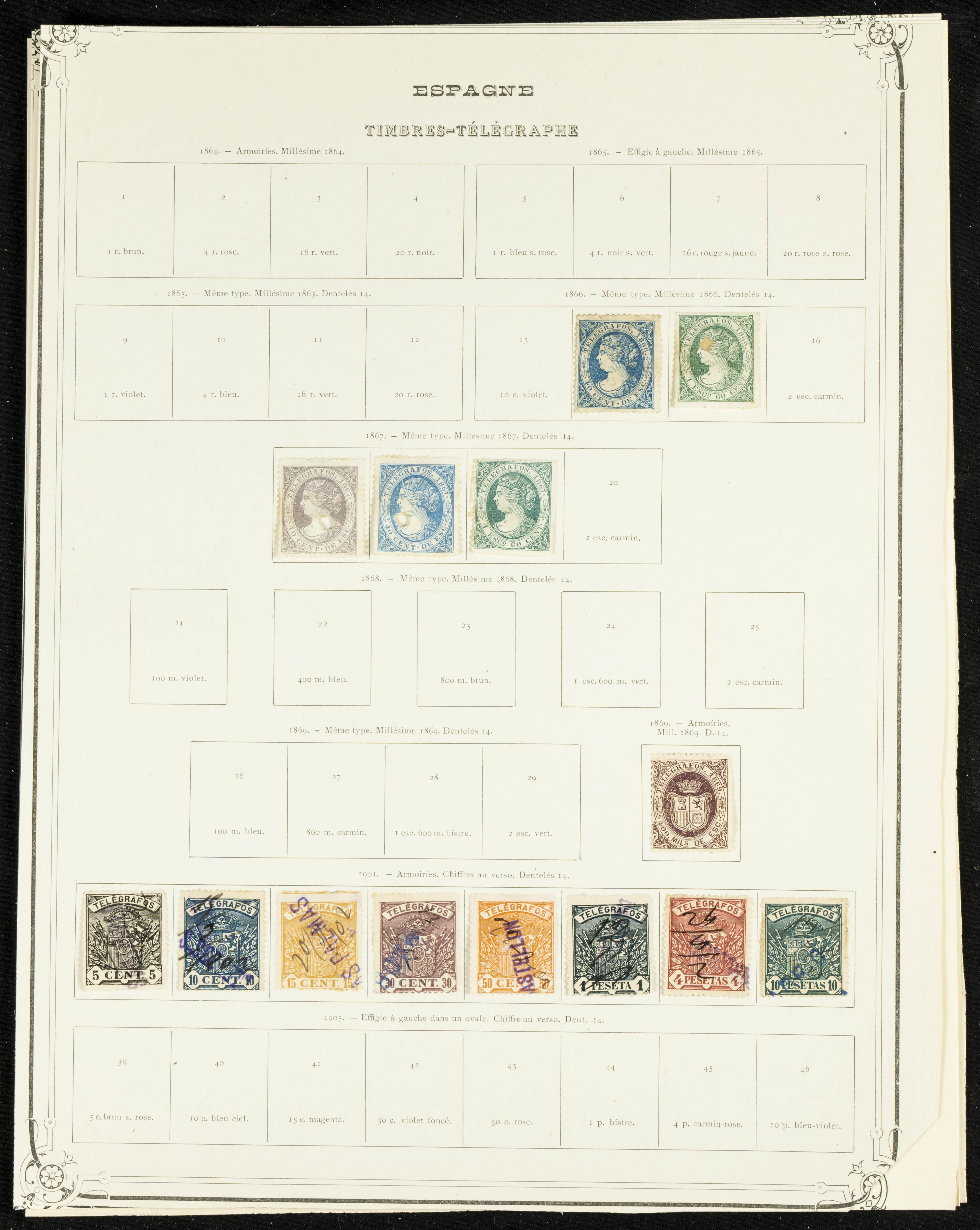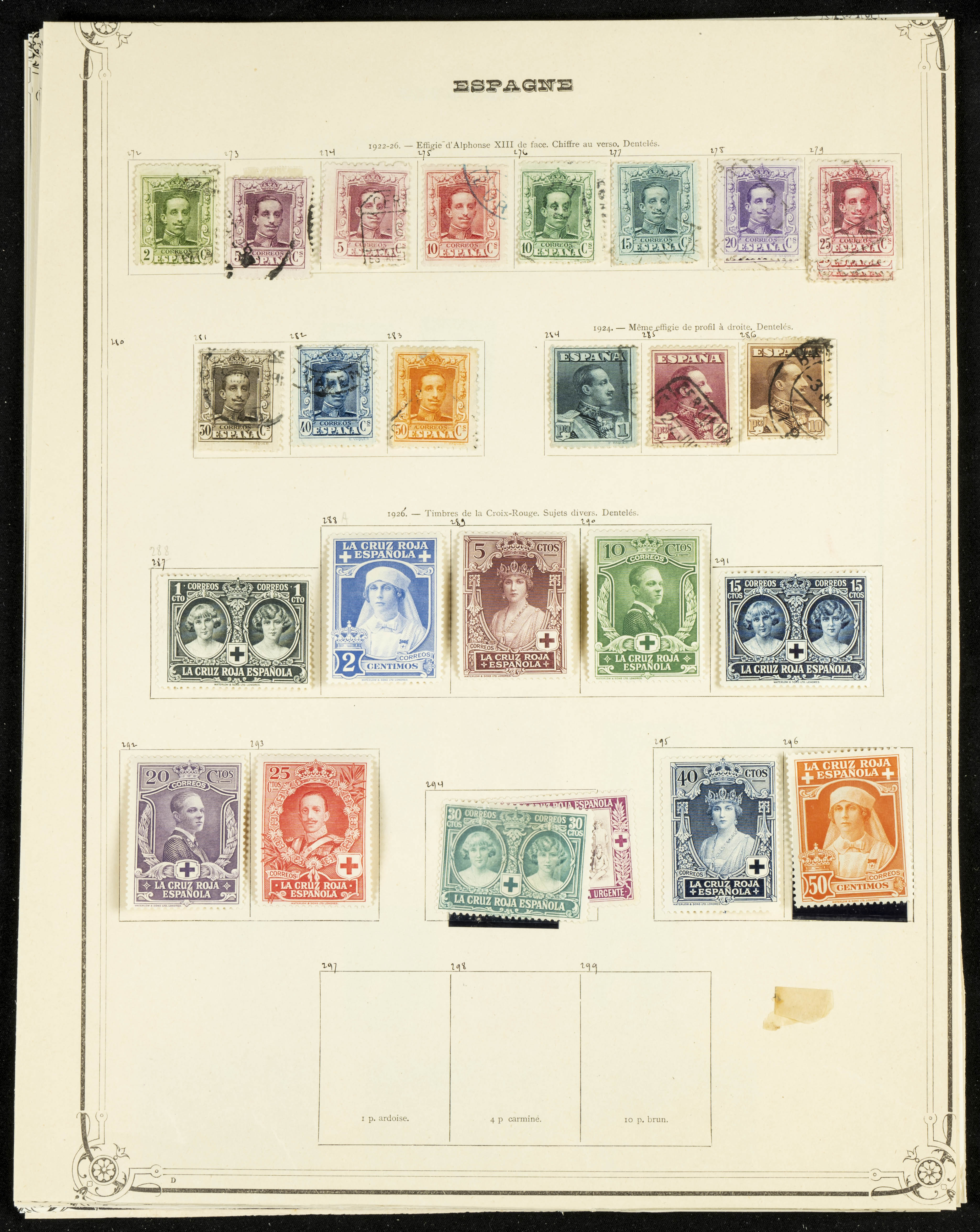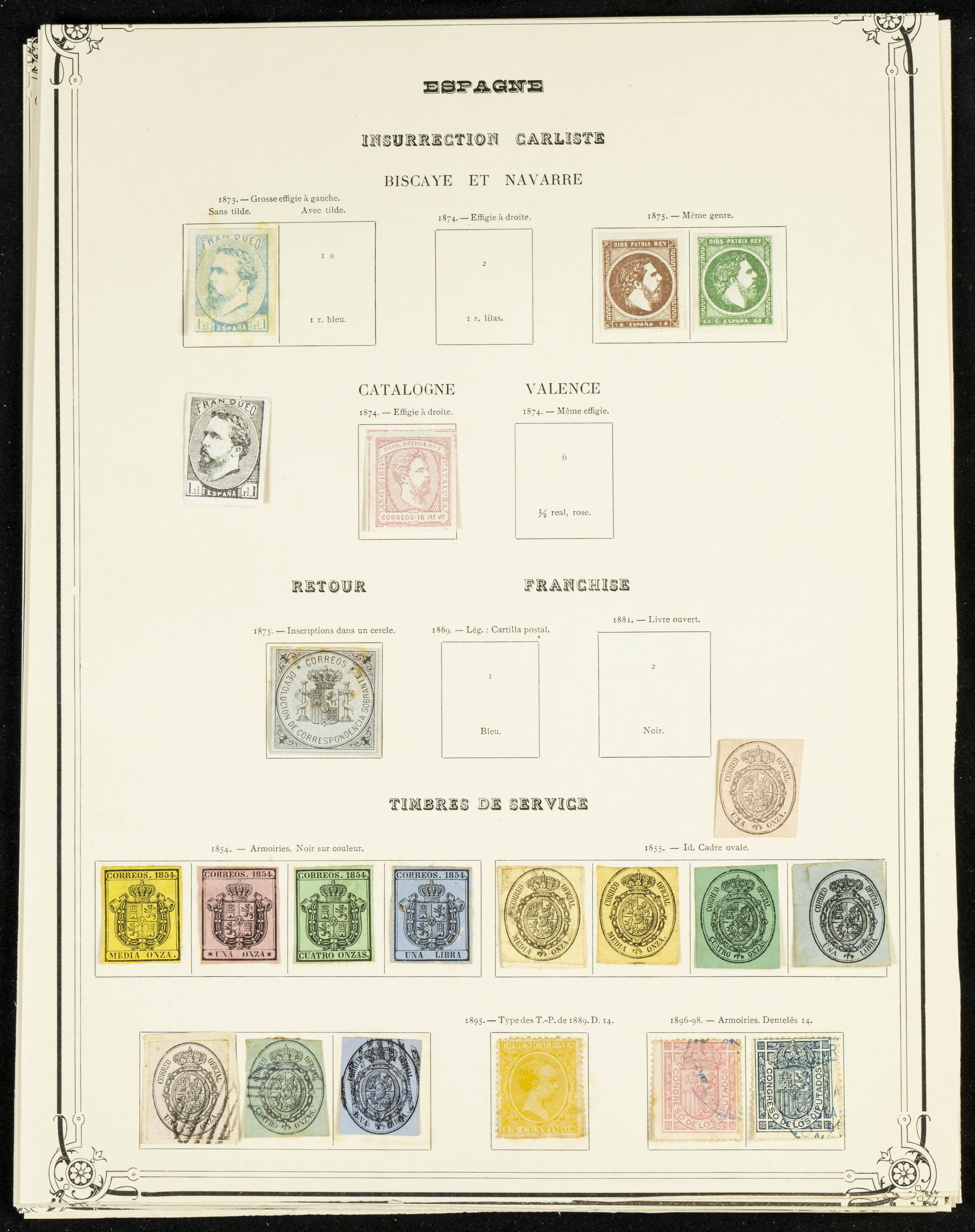 ★/(1850ca). Interesante resto de colección entre 1850 y 1930, en nuevo y usado, de la parte clásica destacan el 19 cuartos de 1865 sin dentar, 1866 y 1867, además de algún sello nuevo, incluye la serie matasellada de Quijote entre otras. A EXAMINAR. Edifil 2026: +10.000 Euros