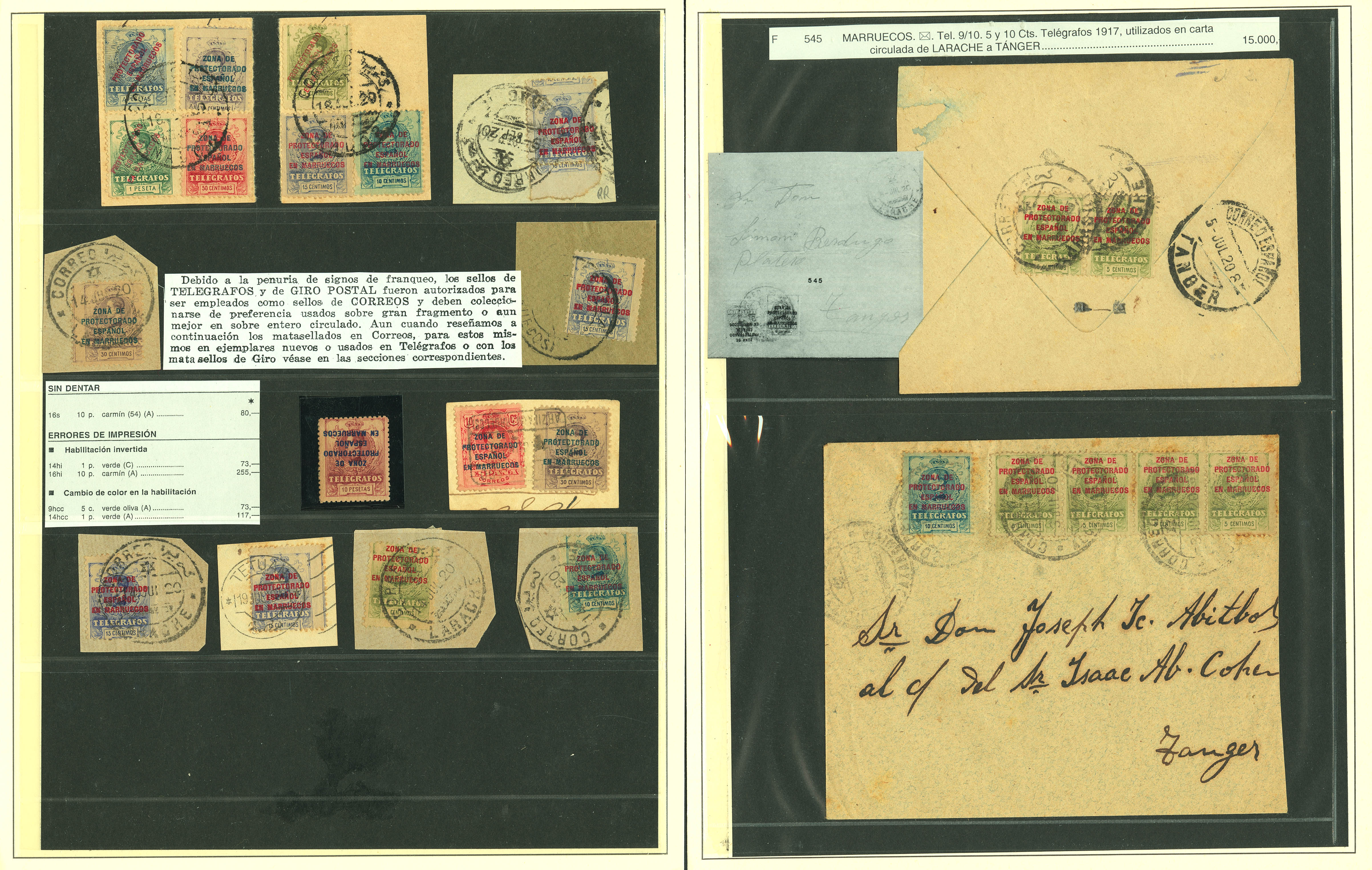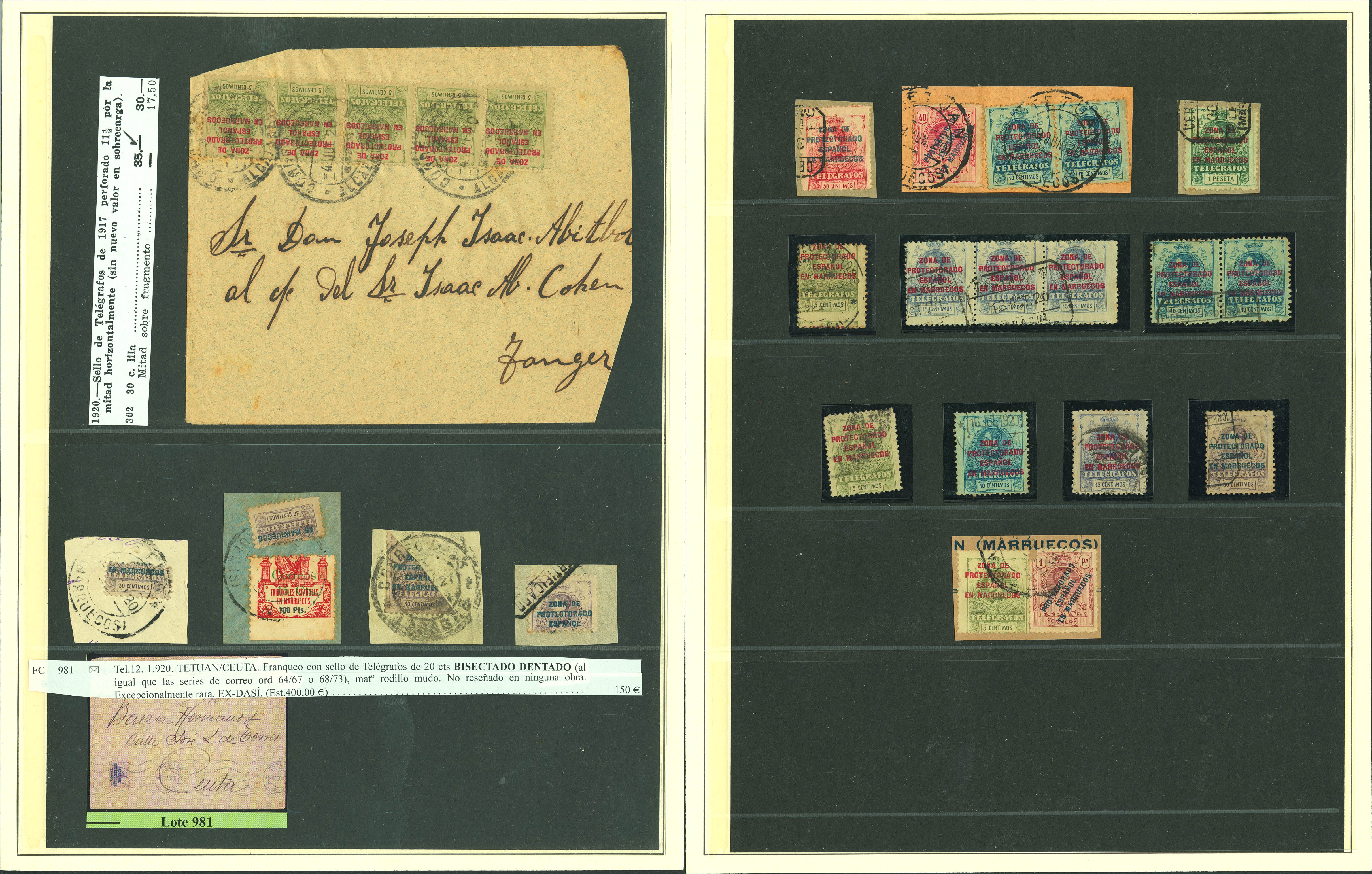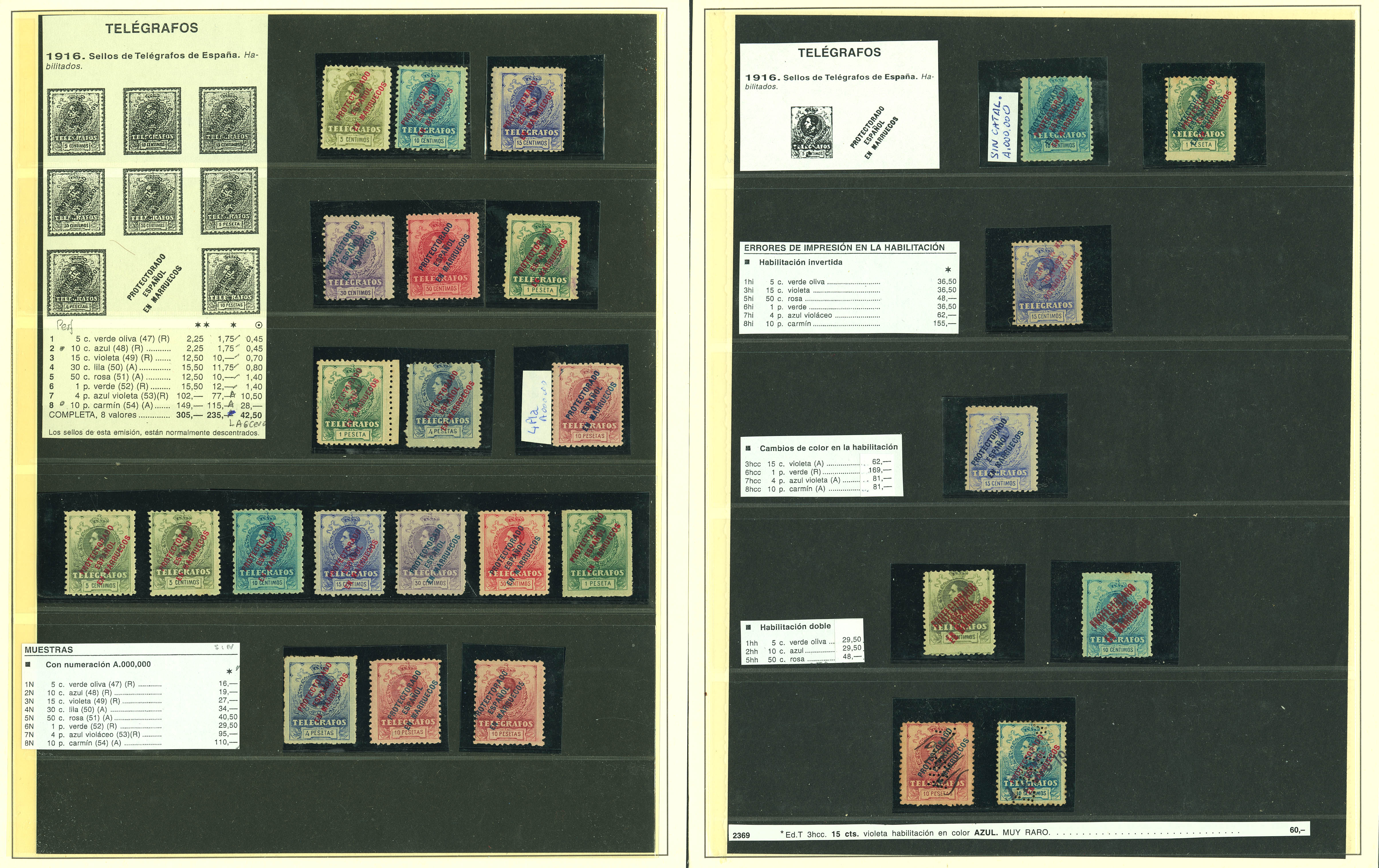 ★/(1916ca). Interesantísimo conjunto de las emisiones de Telégrafos de 1916 y 1917 con la efigie de Alfonso XIII en nuevo y usado, incluyendo series completas, variedades de sobrecarga, sin dentar, numeraciones ceros, etc, así como diez cartas circuladas, alguna certificada y numerosos fragmentos con matasellos poco usuales. ALTISIMO VALOR DE CATALOGO. IMPRESCINDIBLE EXAMINAR.
