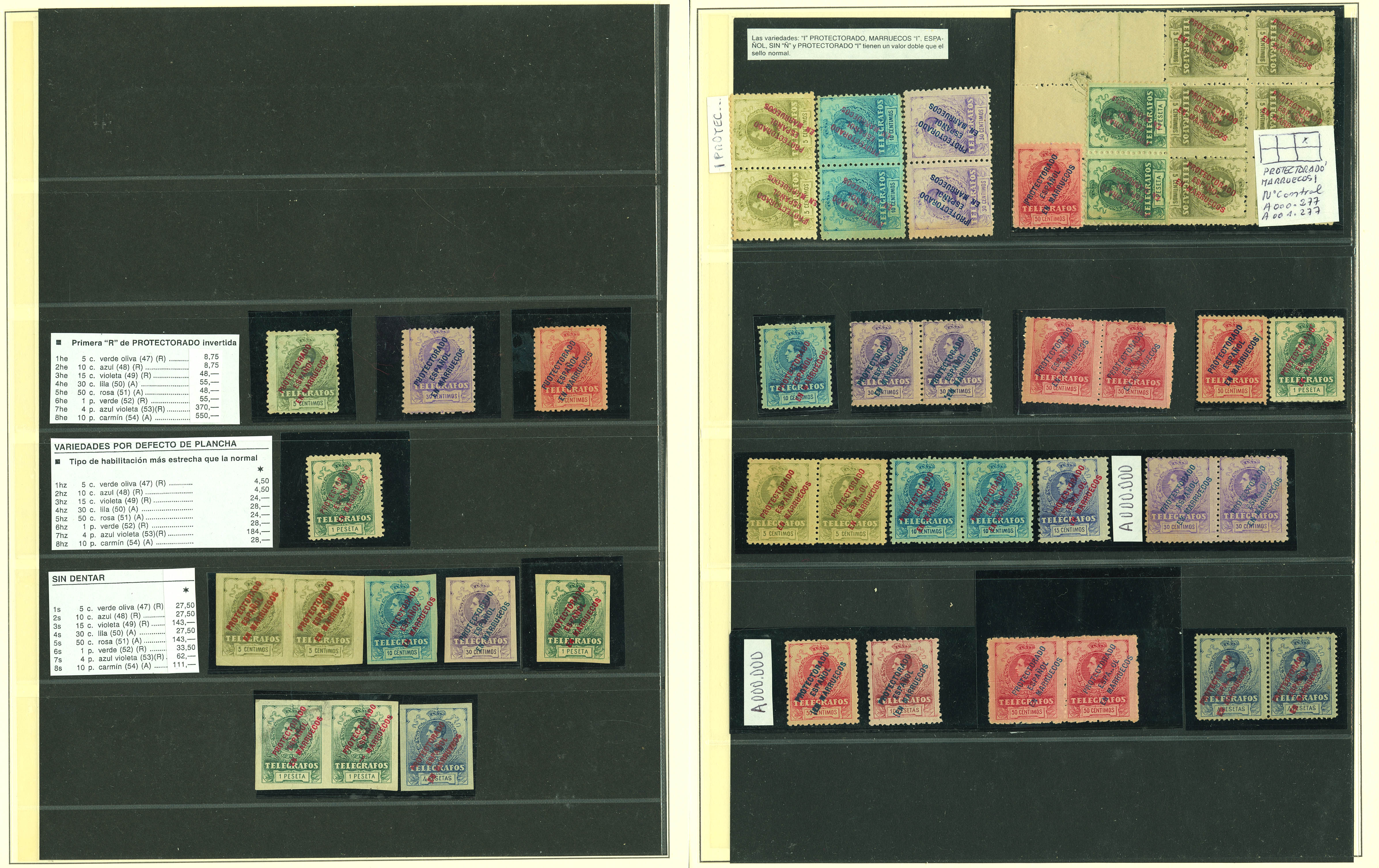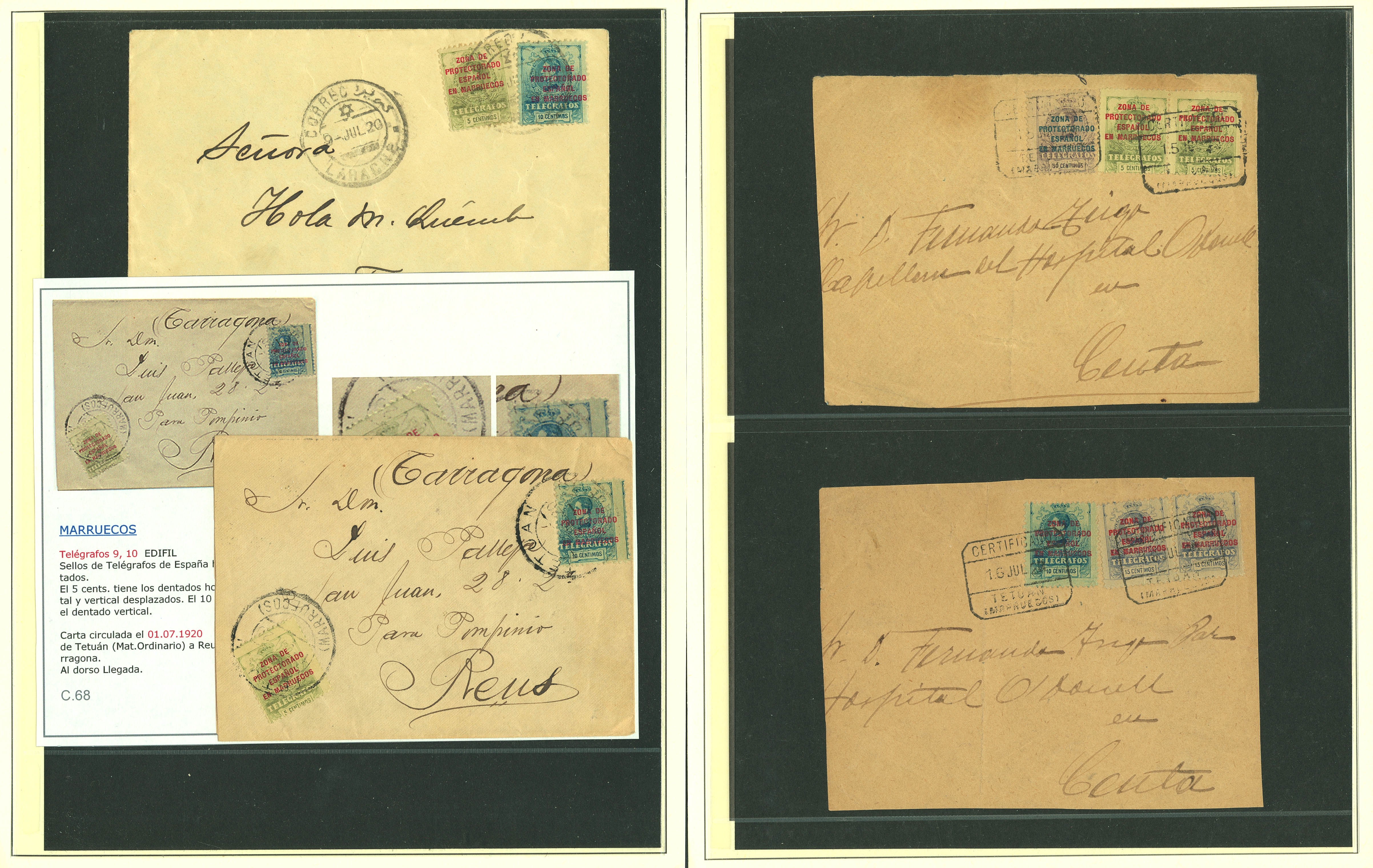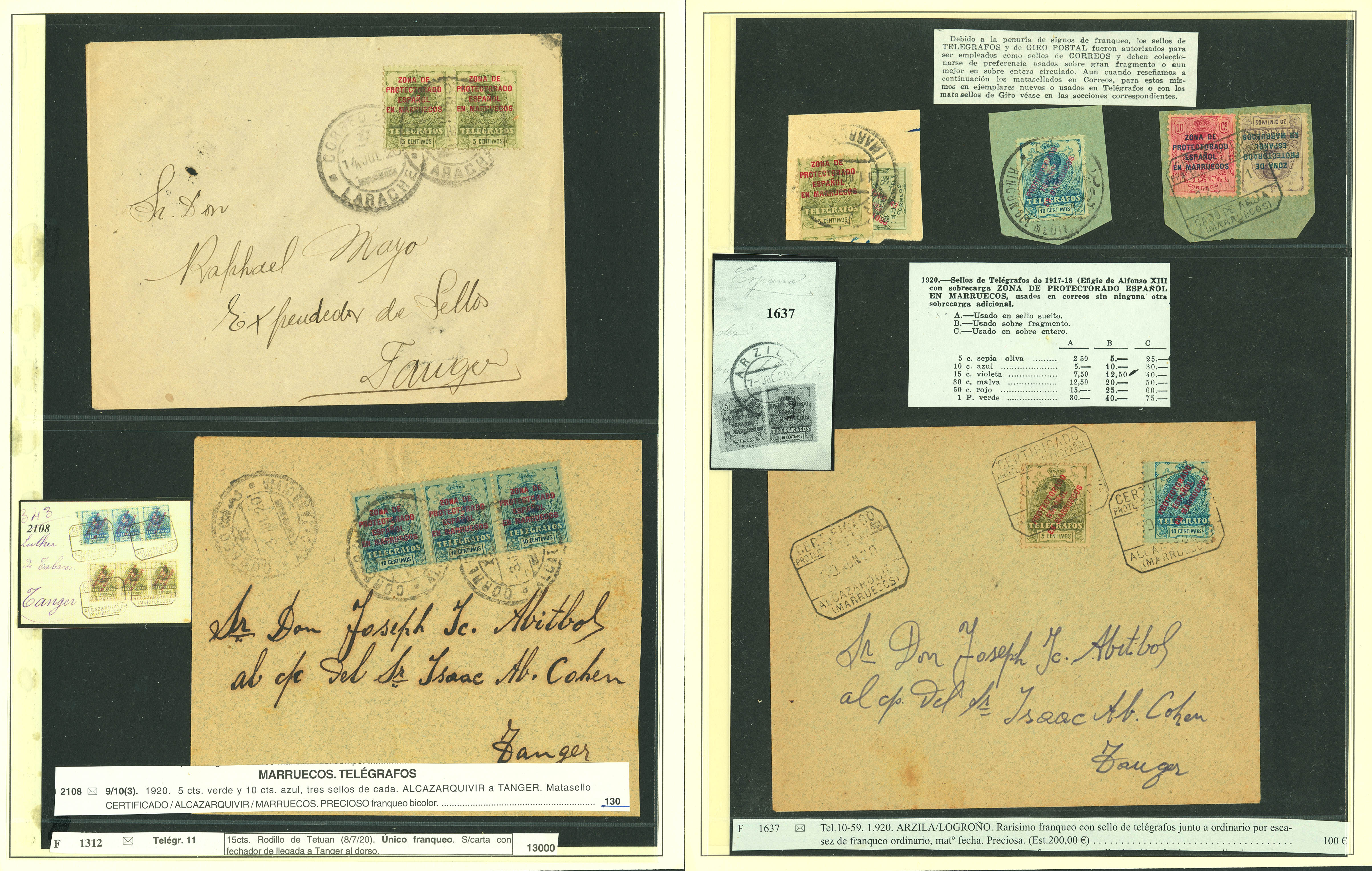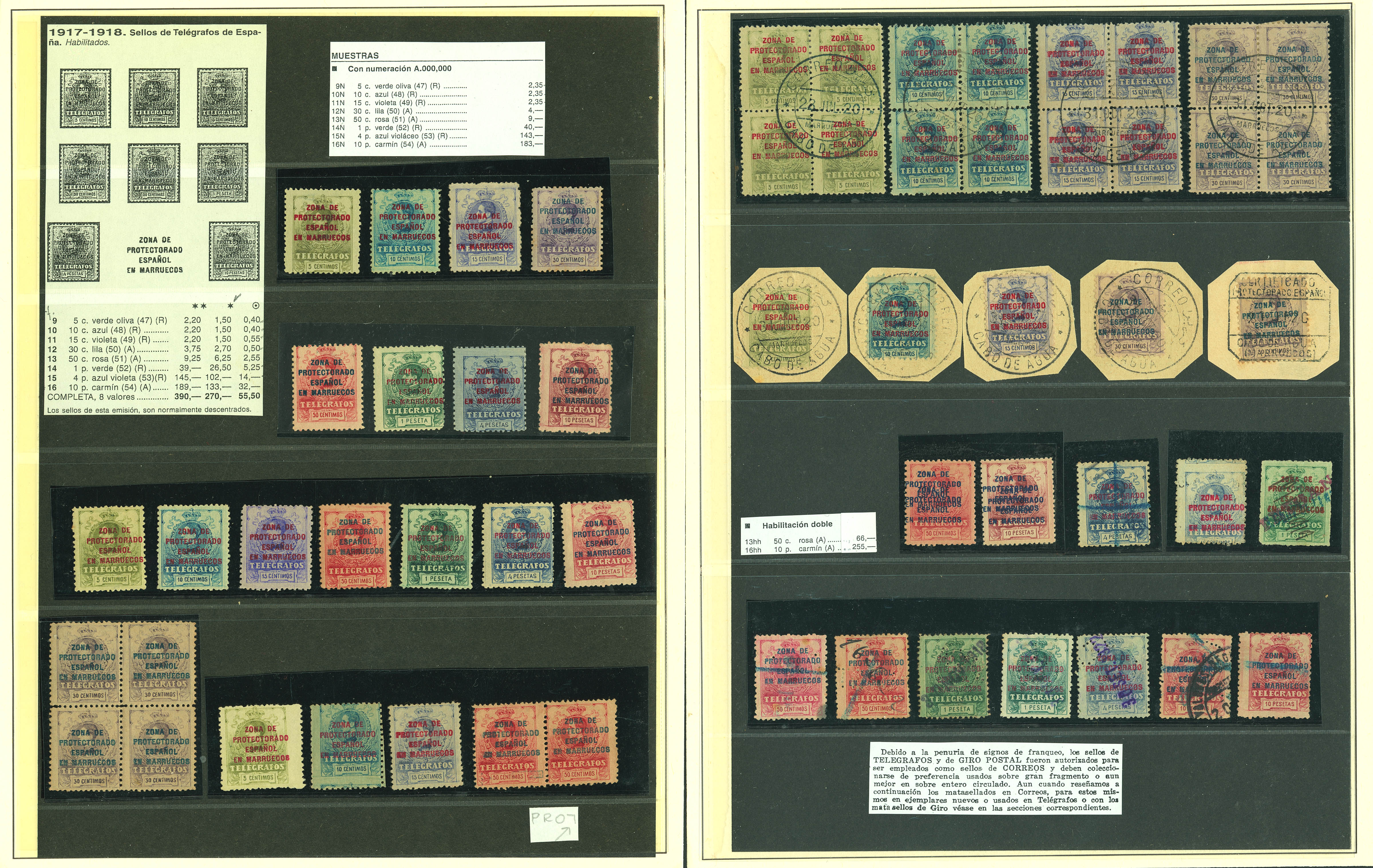 ★/(1916ca). Interesantísimo conjunto de las emisiones de Telégrafos de 1916 y 1917 con la efigie de Alfonso XIII en nuevo y usado, incluyendo series completas, variedades de sobrecarga, sin dentar, numeraciones ceros, etc, así como diez cartas circuladas, alguna certificada y numerosos fragmentos con matasellos poco usuales. ALTISIMO VALOR DE CATALOGO. IMPRESCINDIBLE EXAMINAR.