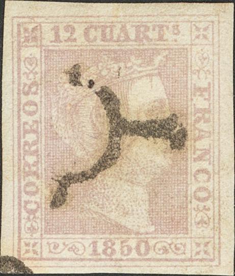 2. 1850. 12 cuartos lila. Amplios márgenes. MAGNIFICO. Cert. EXFIMA y COMEX.