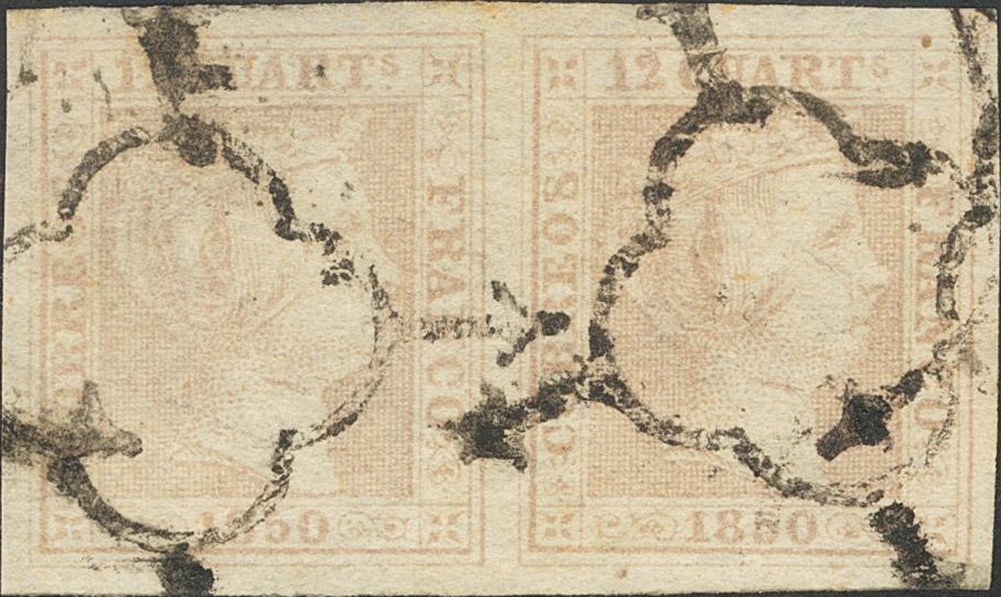 2(2). 1850. 12 cuartos lila (ínfimo puntito claro en un sello, no indicado en el certificado). Grandes márgenes. MAGNIFICO. Cert. COMEX. Edifil 2020: 850 Euros