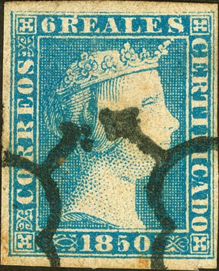 4. 1850. 6 reales azul (leve reparación). MAGNIFICO.