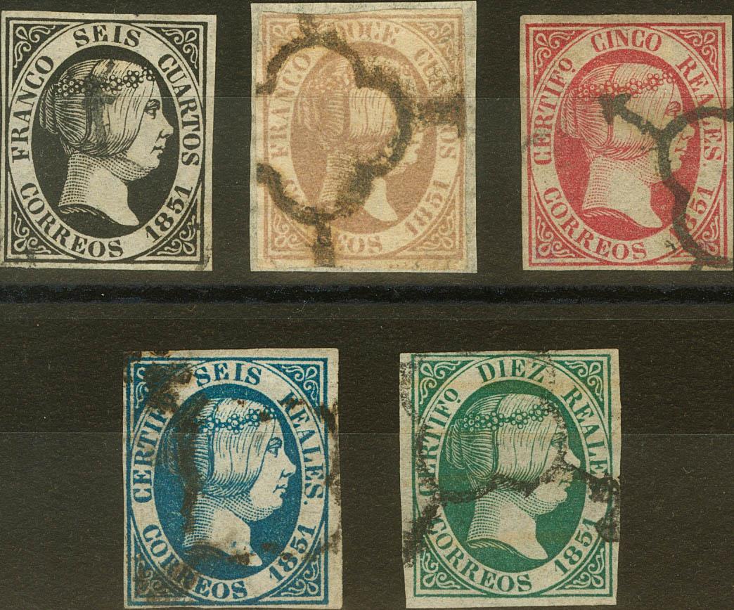 6/11. 1851. Serie completa, a falta del 2 reales naranja. MAGNIFICA.