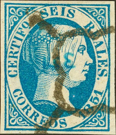 10F. 1851. 6 reales azul. FALSO SPERATI, al dorso marca de la B.P.A. MAGNIFICO.