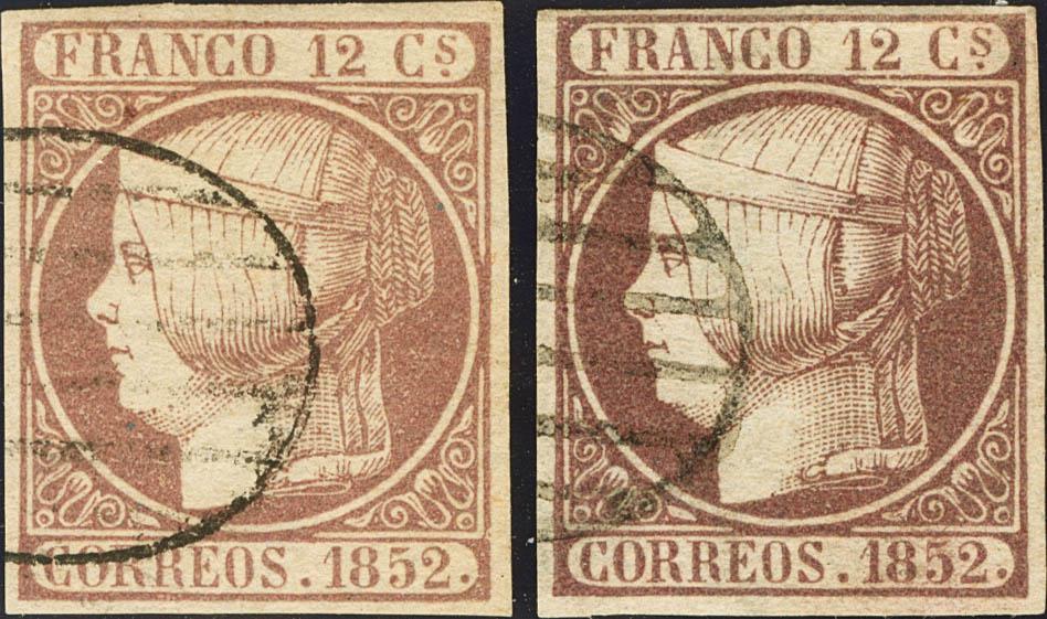 13(3). 1852. 12 cuartos lila y 12 cuartos lila oscuro. MAGNIFICOS Y ESPECTACULARES.