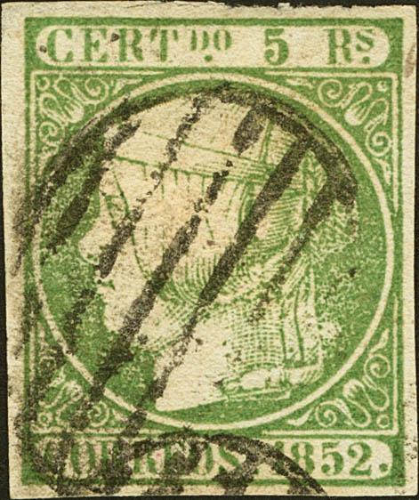 15. 1852. 5 reales verde. MAGNIFICO. Cert. CEM.