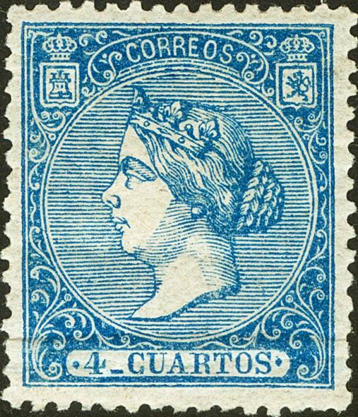★ 81. 1866. 4 cuartos azul (doblez natural de goma horizontal). Color intenso y muy bien centrado. MAGNIFICO.