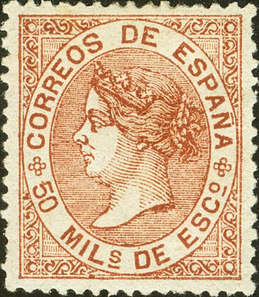 ★ 96. 1867. 50 mils castaño. Color muy intenso y bien centrado. MAGNIFICO.