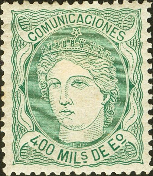 ★ 110. 1870. 400 mils verde. Excepcional color y centraje. PIEZA DE LUJO. Cert. CEM.