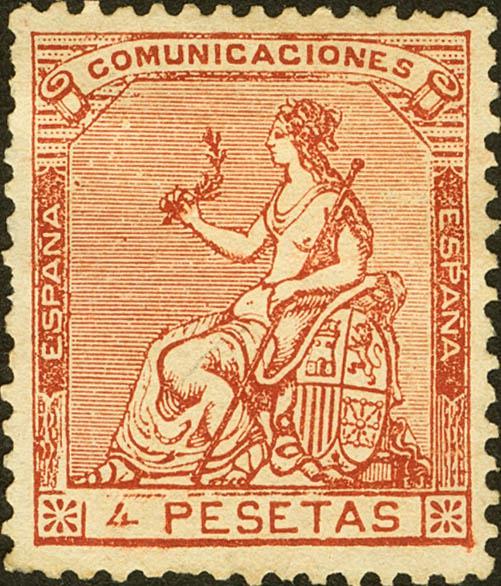 (★) 139. 1873. 4 pts castaño. Muy bien centrado y color intenso. MAGNIFICO. Cert. CEM.