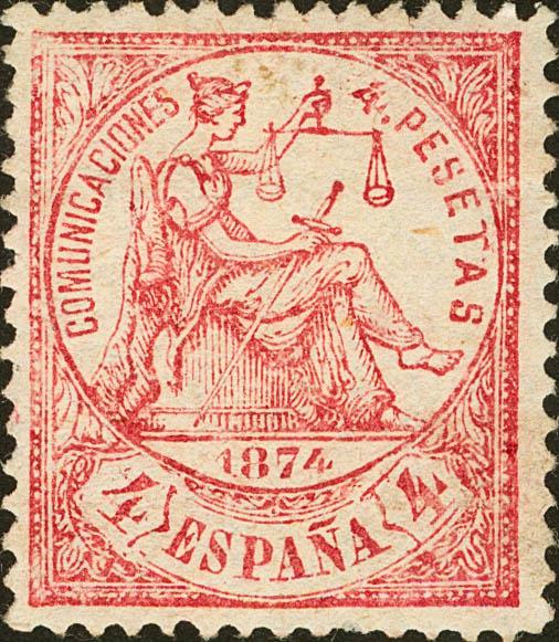 ★ 151. 1874. 4 pts carmín FALSO POSTAL TIPO II. MAGNIFICO.