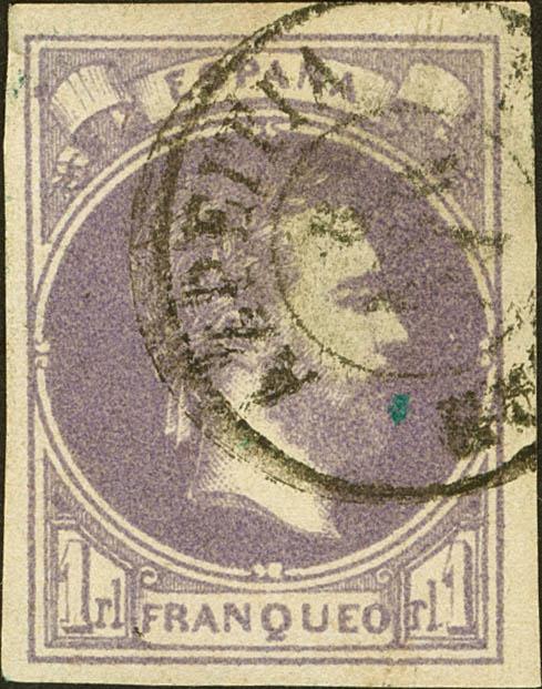 158. 1874. 1 real violeta oscuro. Matasello AZPEITIA / GUIPUZCOA. MAGNIFICO.