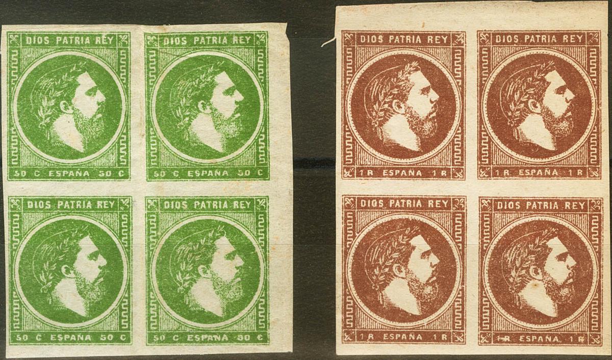 ★★/★ 160/61(4). 1875. Serie completa, bloques de cuatro. MAGNIFICA.