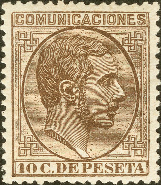 192. 1878. 10 cts castaño. Excelente centraje y color. PIEZA DE LUJO.