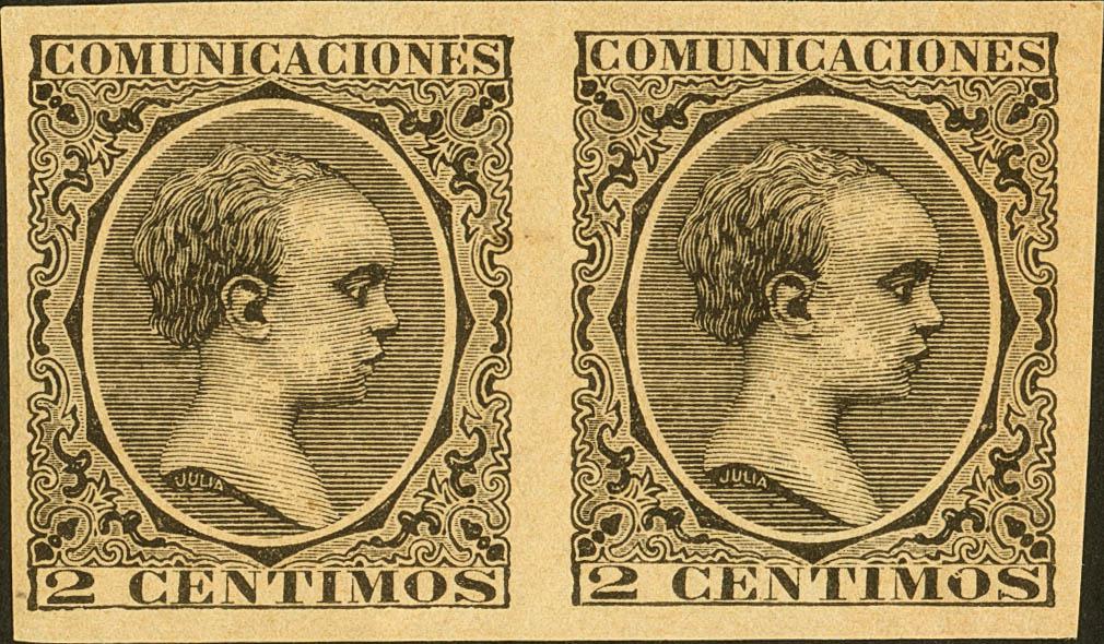 ★ 214s(2). 1889. 2 cts negro, pareja. SIN DENTAR. MAGNIFICO. Edifil 2022: 244 Euros