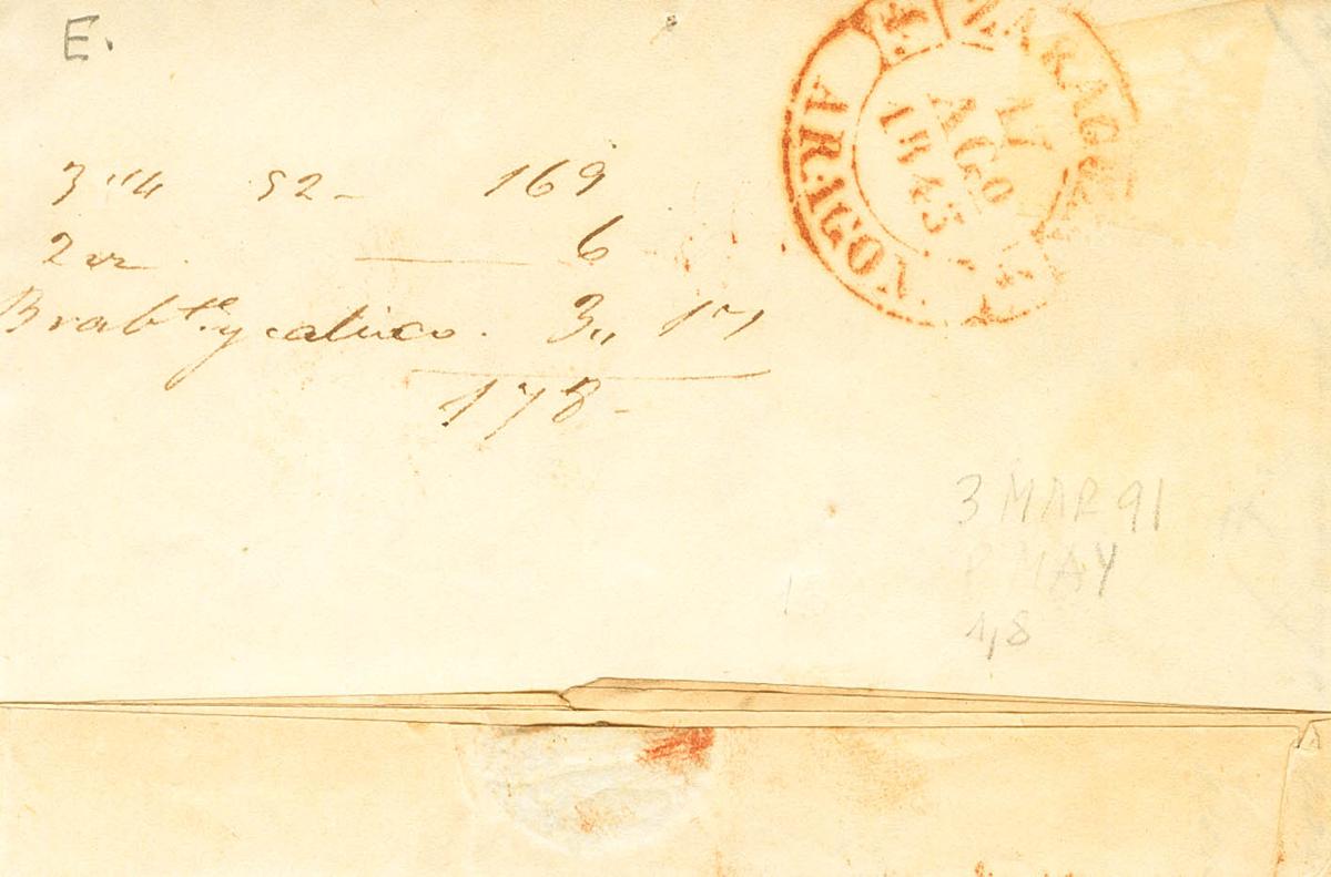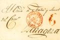 1845. ALBARRACIN (TERUEL) a ZARAGOZA. Baeza ALBARRACIN / ARAGON, en rojo. MAGNIFICA ESTAMPACION.