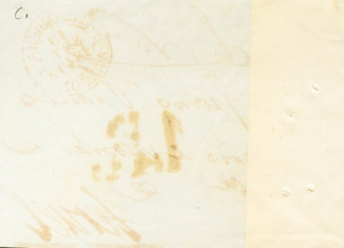 1849. Frontal de CALAMOCHA (TERUEL) a TERUEL. Baeza CALAMOCHA / ARAGON, en rojo. MAGNIFICA.