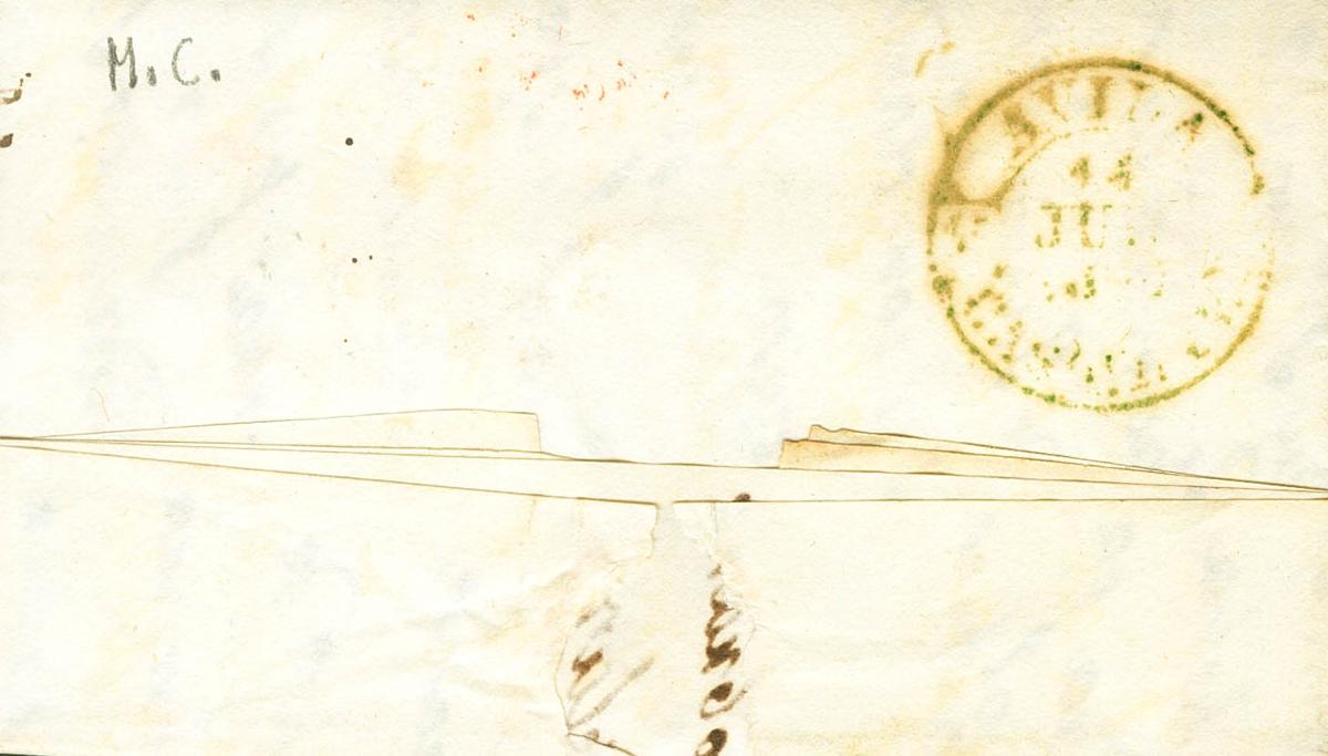 1849. MOLINA DE ARAGON (GUADALAJARA) a AVILA. Baeza MOLINA DE A. / SORIA, en rojo. MAGNIFICA ESTAMPACION.
