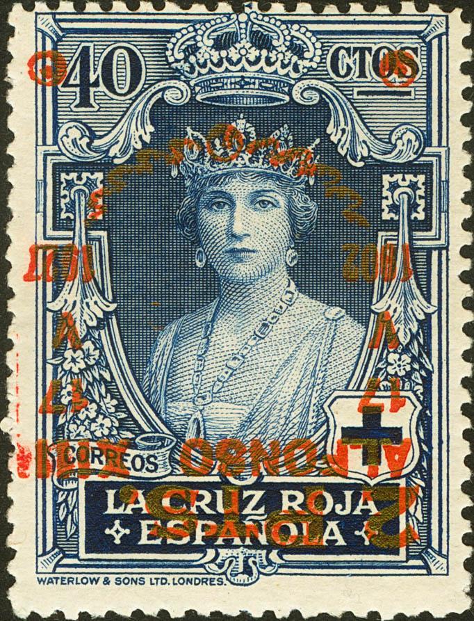 ★★ 383hi. 1927. 2 pts sobre 40 cts azul. SOBRECARGA INVERTIDA. MAGNIFICO. Edifil 2020: ++41 Euros