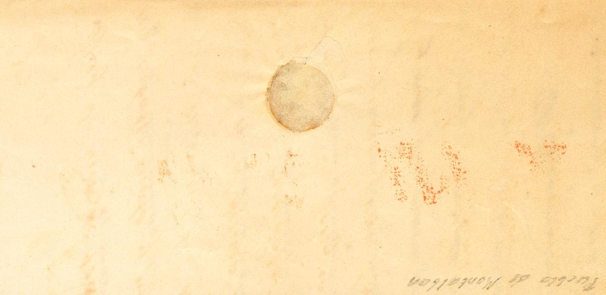 1850. PUEBLA DE MONTALBAN (TOLEDO) a MADRID. Baeza PUEBLA D.MBAN / CAST.LA N, en rojo. MAGNIFICA ESTAMPACION Y MUY RARA.