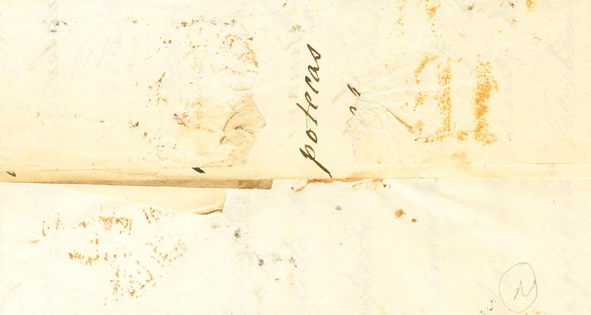 1852. CEBREROS (AVILA) a MADRID. Baeza S.M.D.VALDEIG. / CAST.LA N, en rojo. MAGNIFICA Y MUY RARA.