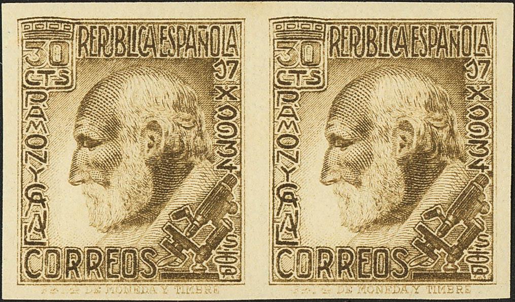 ★★ 680s(2). 1934. 30 cts castaño, pareja. SIN DENTAR. MAGNIFICA . Edifil 2022: +200 Euros