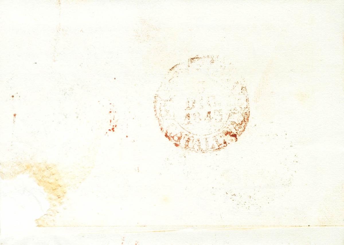 1843. BALAGUER (LERIDA) a BARCELONA. Baeza BALAGUER / CATALUÑA, en rojo. MAGNIFICA ESTAMPACION.