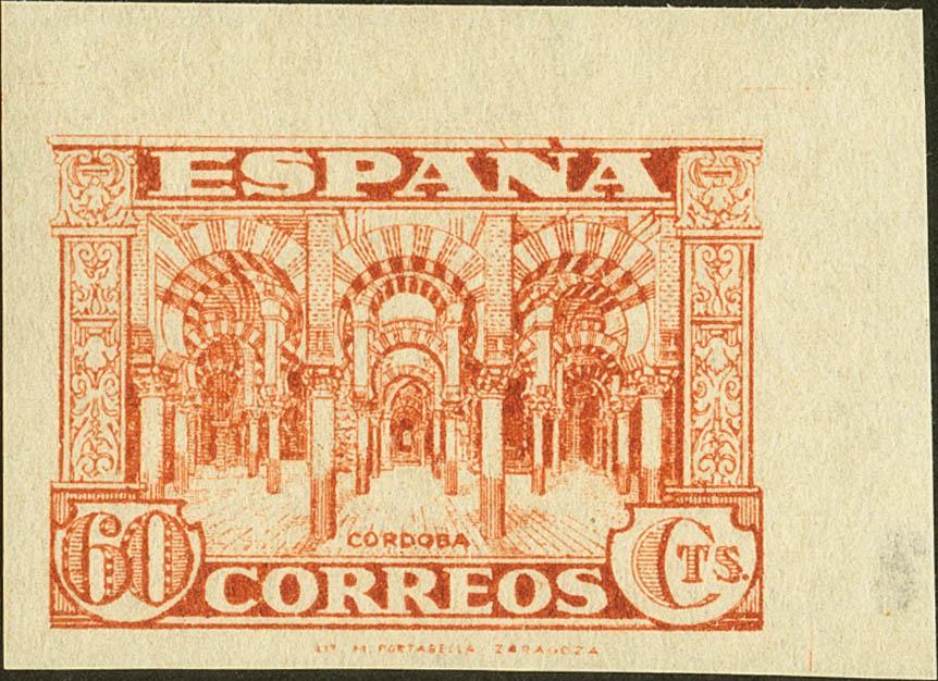 ★★ 810ccs. 1937. 60 cts castaño amarillo, esquina de pliego. CAMBIO DE COLOR y SIN DENTAR. MAGNIFICO. Edifil 2022: ++41 Euros