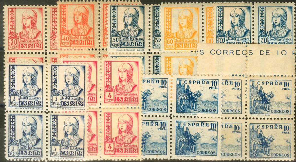 ★★ 814/31(4). 1937. Serie completa, veintiún valores, bloques de cuatro. Excelentes centrajes. MAGNIFICA. Cert. CEM. Edifil 2022: ++1.800 Euros