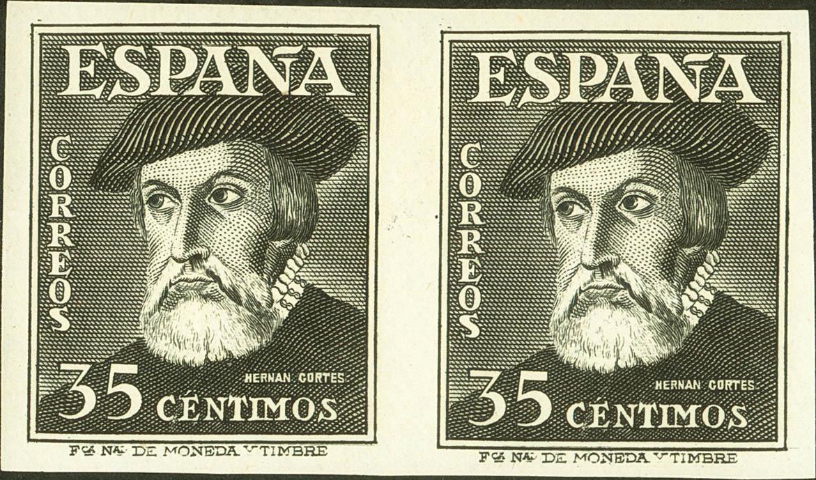 ★★ 1035s(2). 1947. 35 cts negro, pareja. SIN DENTAR. MAGNIFICA Y RARA. Edifil 2022: +450 Euros