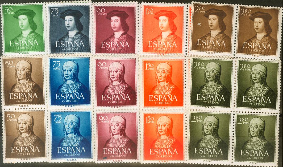 ★★ 1092/96(4), 1106/10(4). 1951. Dos series completas, en bloques de cuatro (manchitas del tiempo). A EXAMINAR. Edifil 2022: 488 Euros
