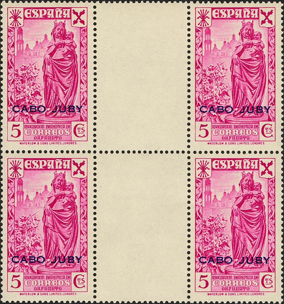 ★★ 12/17(4). 1943. Serie completa, bloque de cuatro con interpanel. MAGNIFICA. Edifil 2022: +296 Euros