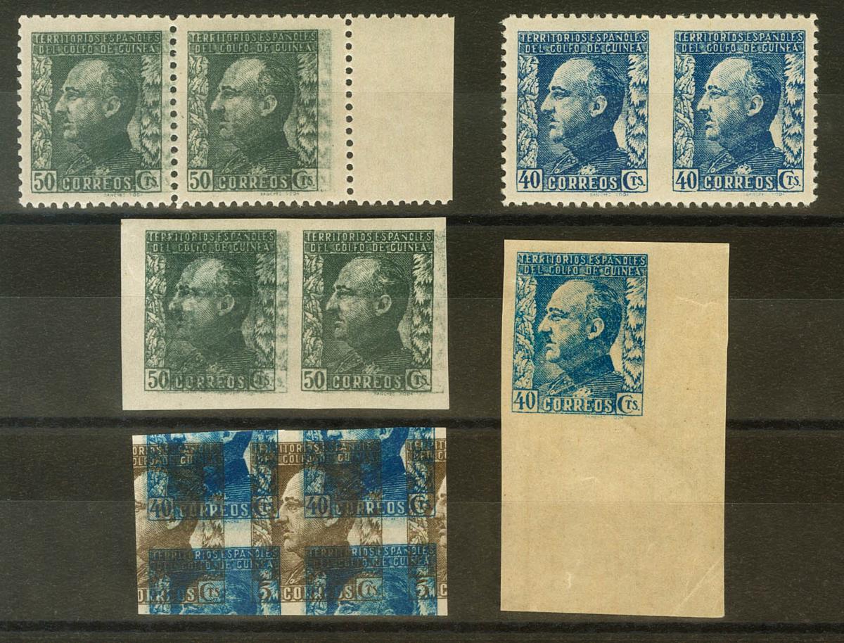 ★★/★1940. Interesante conjunto de variedades de los valores de 40 cts que incluyen PAREJA SIN DENTAR ENTRE LOS SELLOS, IMPRESION EN EL LADO DE LA GOMA y DOBLE IMPRESION (una del 5 cts) y 50 cts (dentado y sin dentar con DOBLE IMPRESION). MAGNIFICO Y MUY RARO CONJUNTO DE VARIEDADES, LA MAYORIA NO RESEÑADAS.