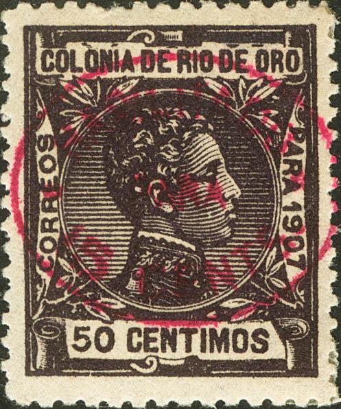 ★1908. 15 cts sobre 50 cts violeta. SOBRECARGA SOBRE OTRO VALOR. MAGNIFICA Y MUY RARA, NO RESEÑADO.