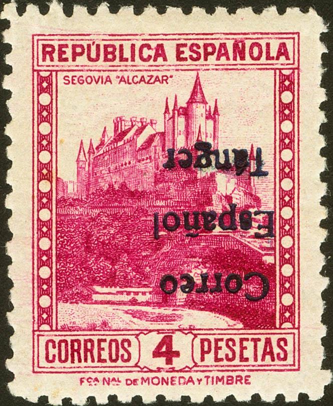 ★ 107hi. 1938. 4 pts carmín. SOBRECARGA INVERTIDA. MAGNIFICO. Edifil 2018: 77 Euros
