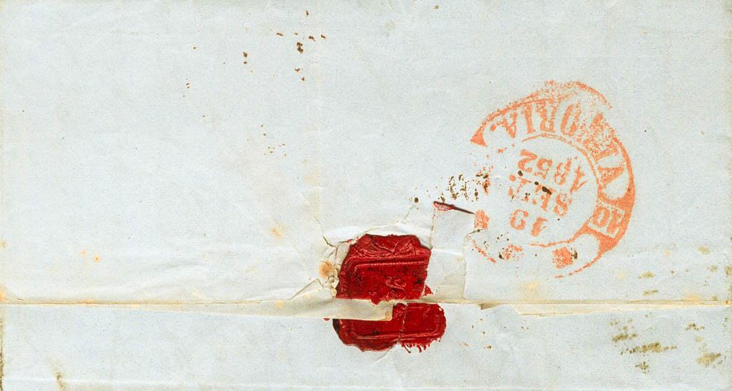 12. 1852. 6 cuartos rosa. ORDUÑA a VITORIA. En el frente baeza ORDUÑA / VIZCAYA, en rojo oxidado. MAGNIFICA.