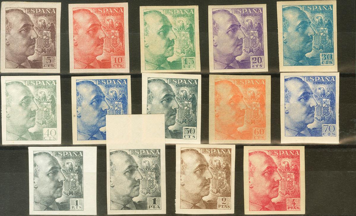 ★★/★ 919/33s. 1940. Serie completa, quince valores (5 cts y 1 pts con fijasellos). SIN DENTAR. MAGNIFICA Y RARA. Edifil 2022: ++1.800 Euros