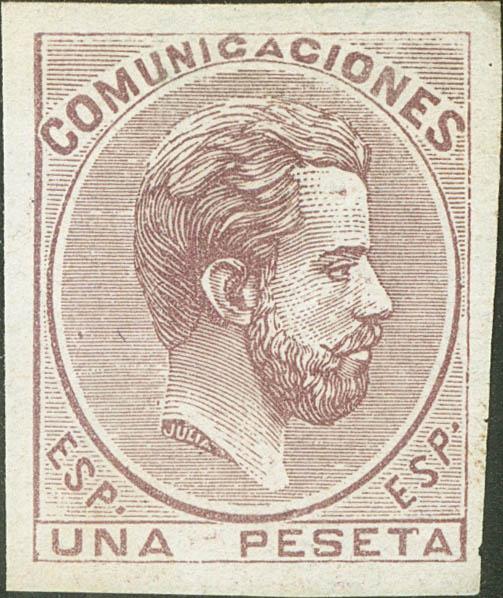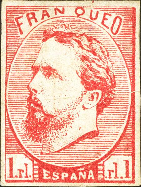 (★) 156P. 1873. 1 real carmÃn rojo. ENSAYO DE COLOR. MAGNIFICO Y RARO. Cert. CEM.