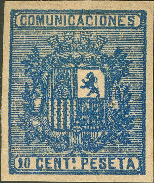 ★ 153P. 1874. 10 cts azul. ENSAYO DE COLOR. MAGNIFICO. (Gálvez 921)